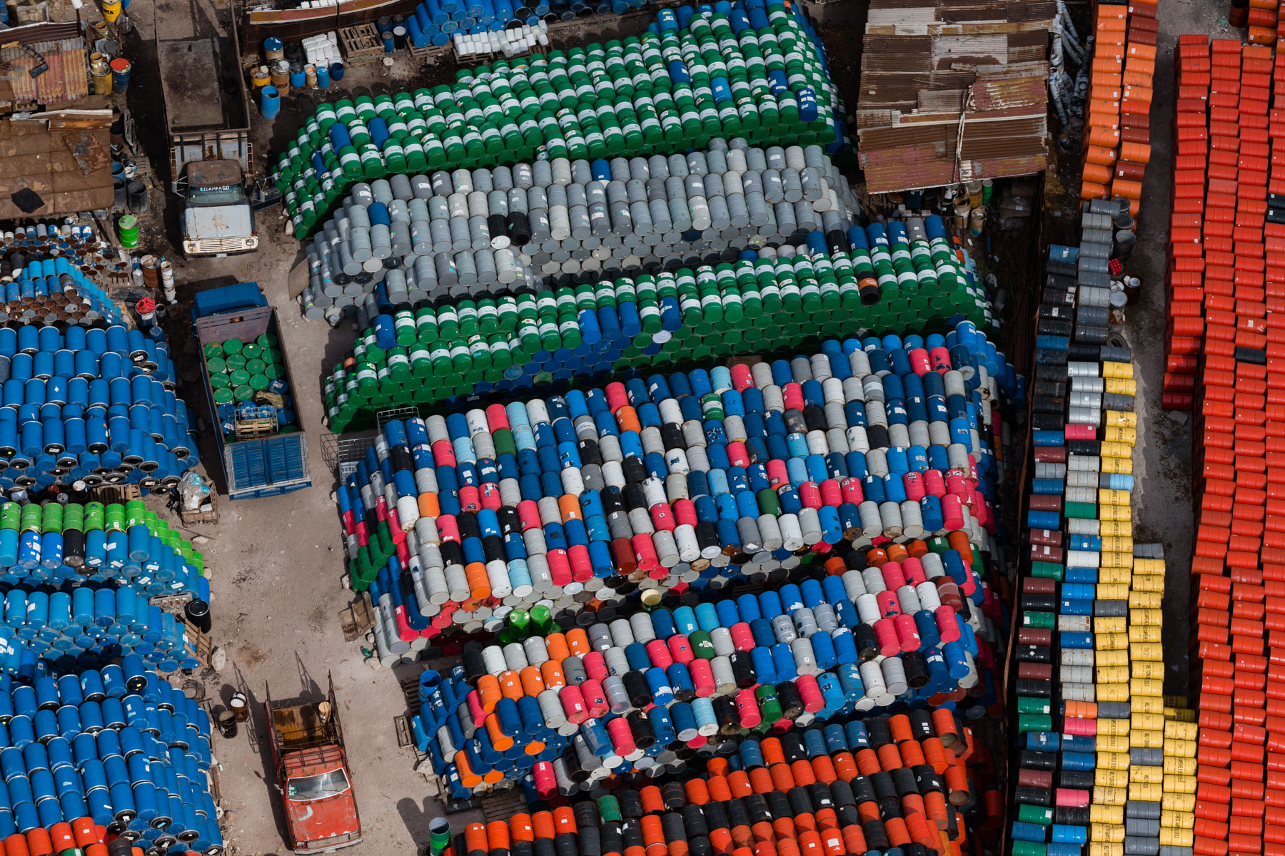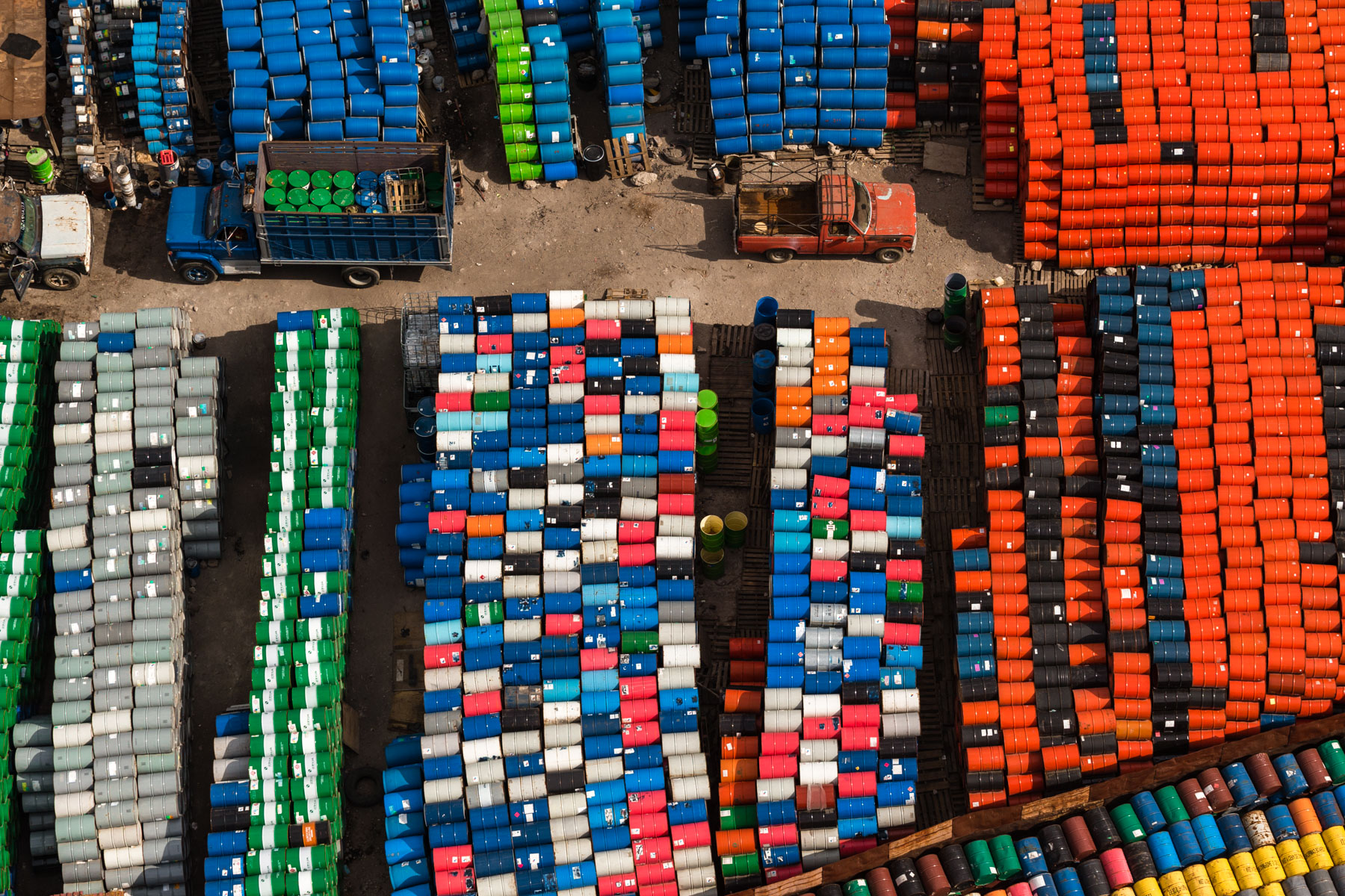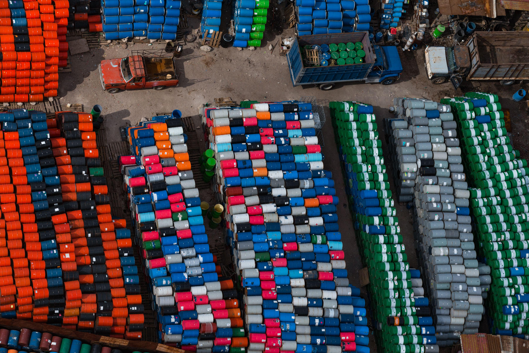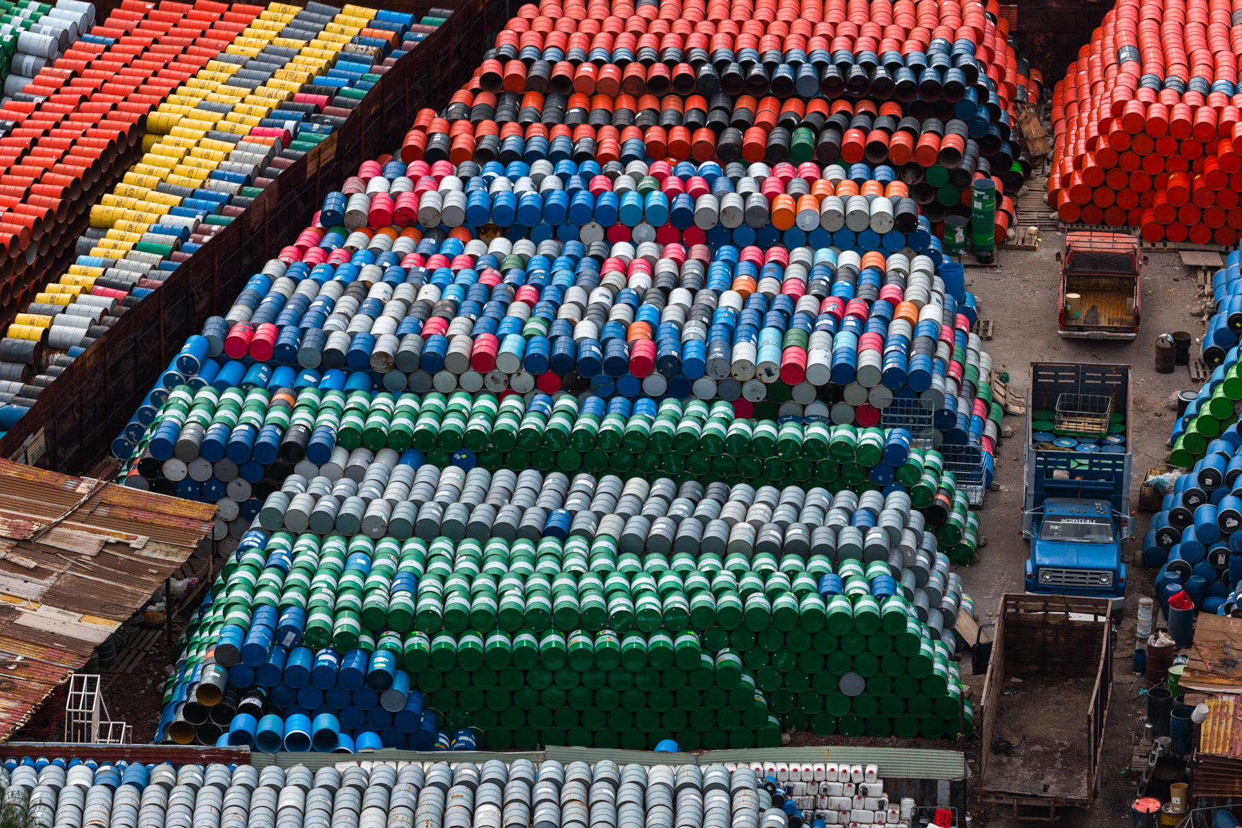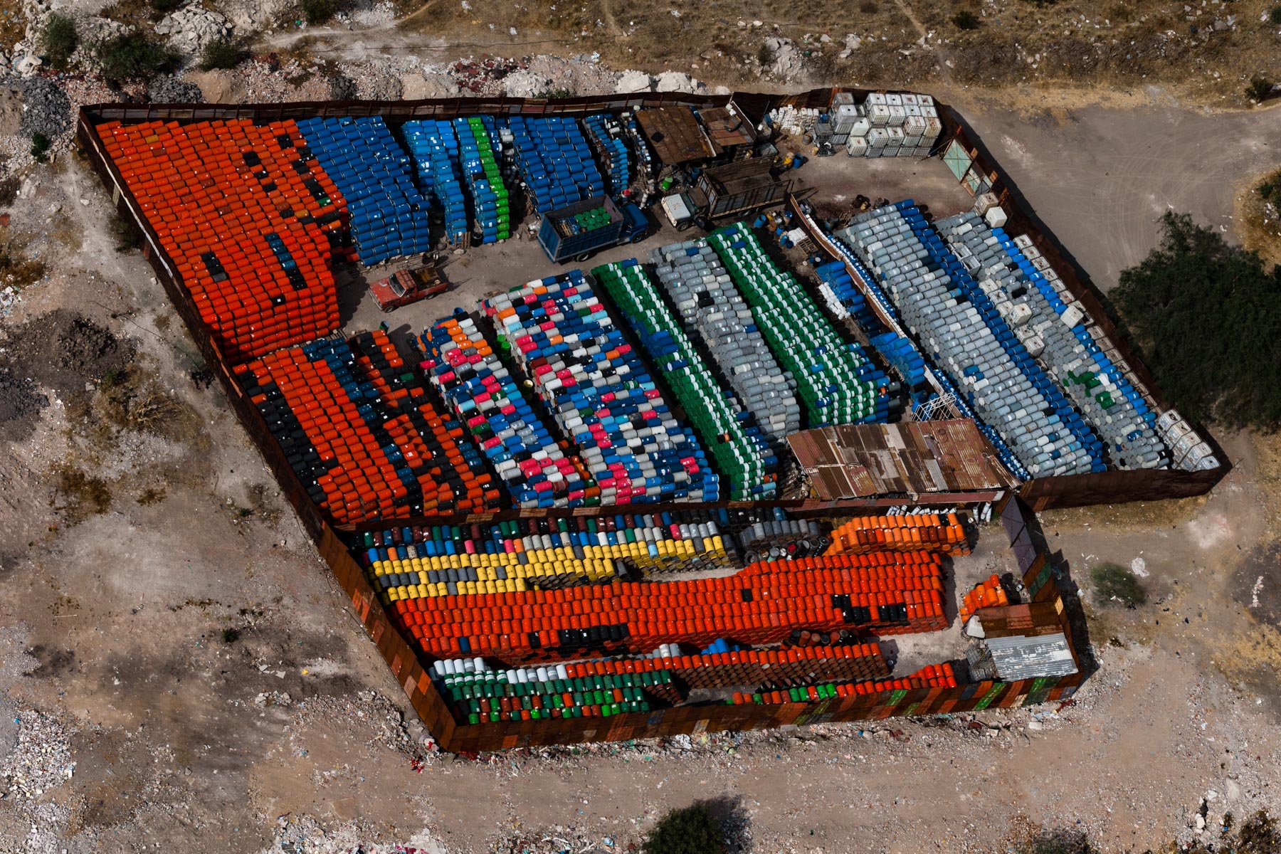 Stockage de bidons à Teoloyucan (nord de Mexico City), État de Mexico, Mexique ( 19°46'6.61"N - 99°10'49.98"O)