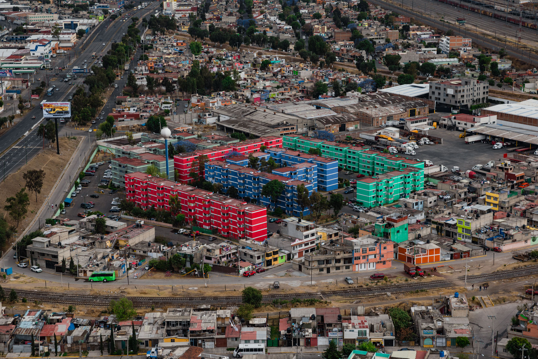 Immeubles vers Tultepec au nord de Mexico City, État de Mexico, Mexique (19°46' N - 99°11' O)
