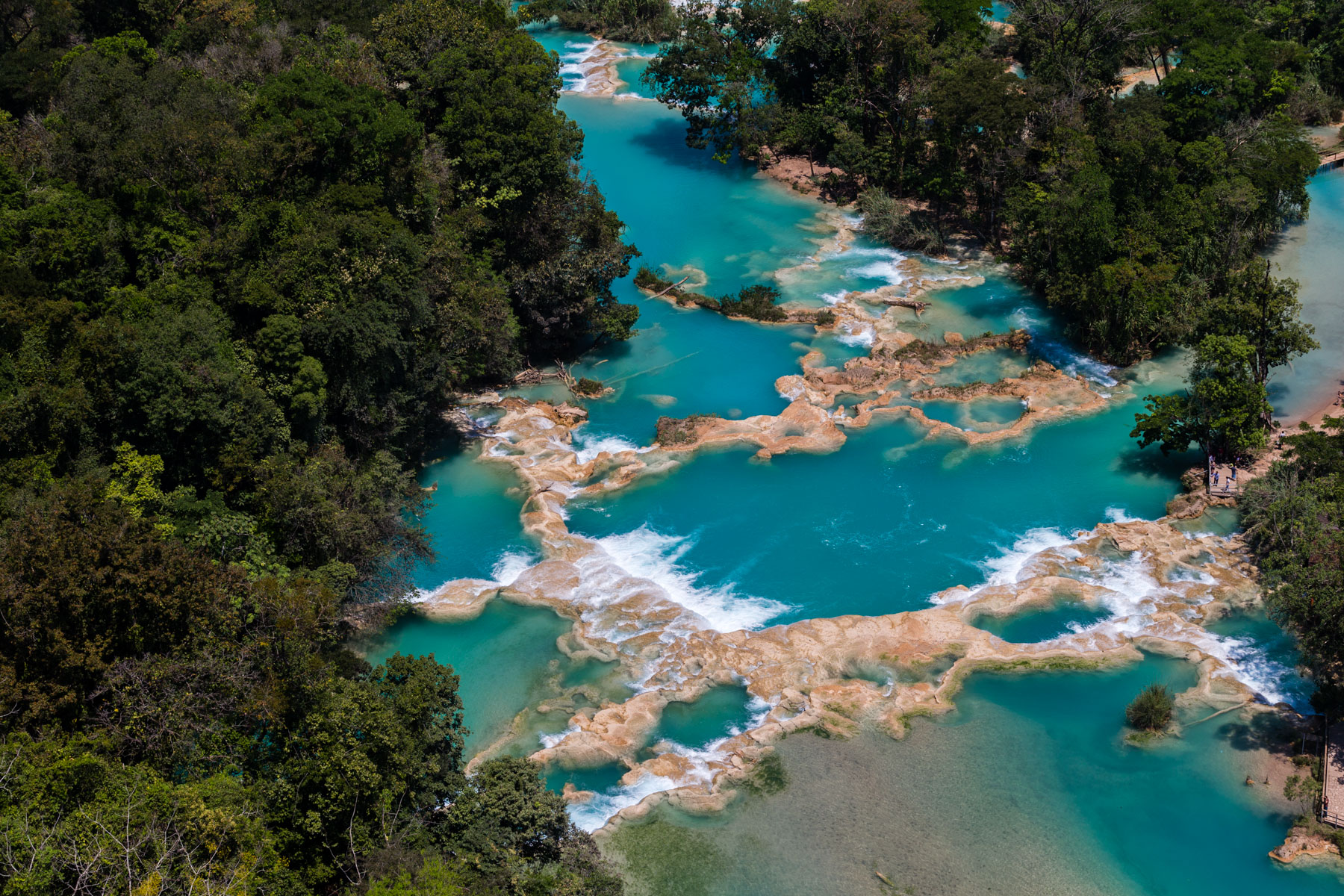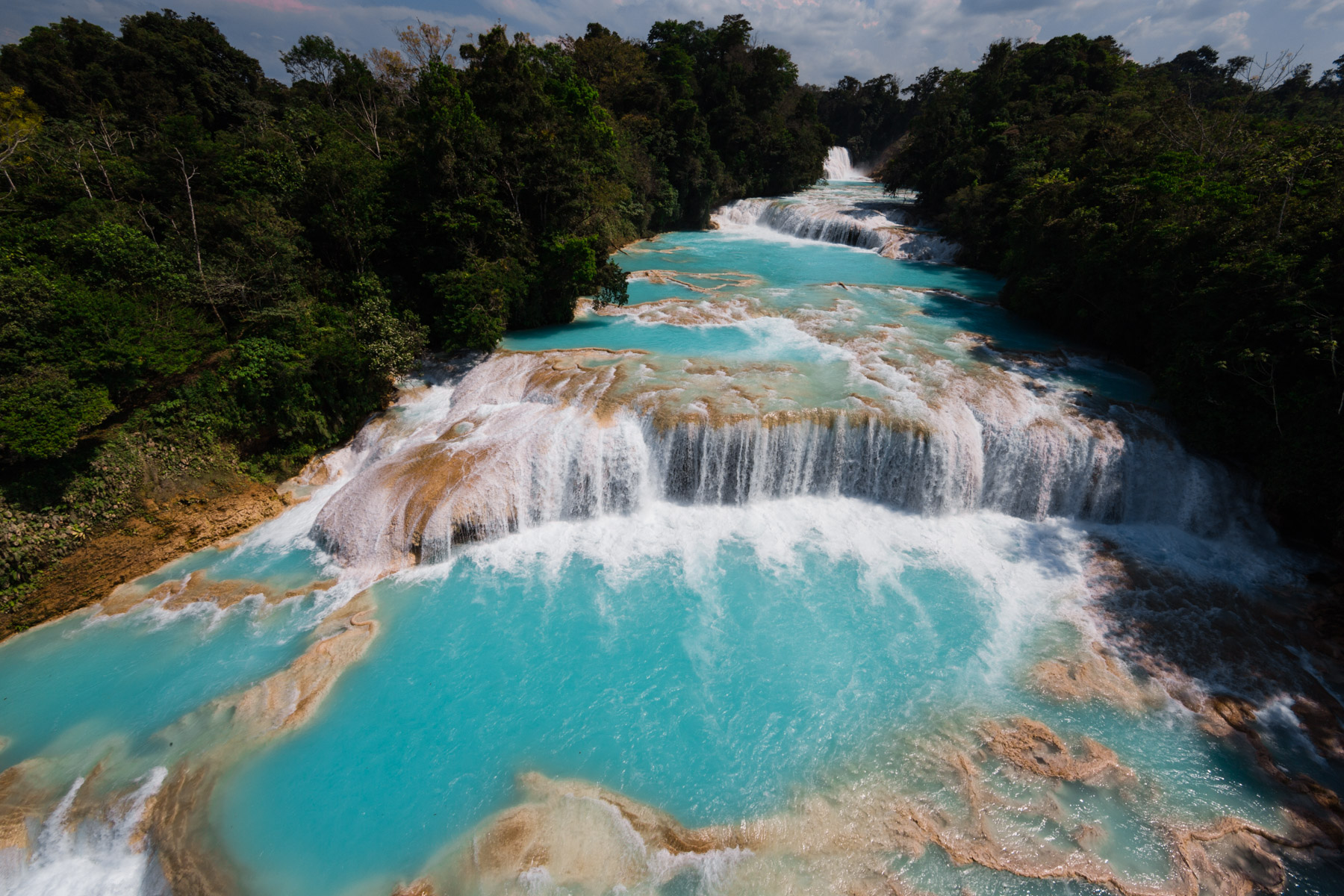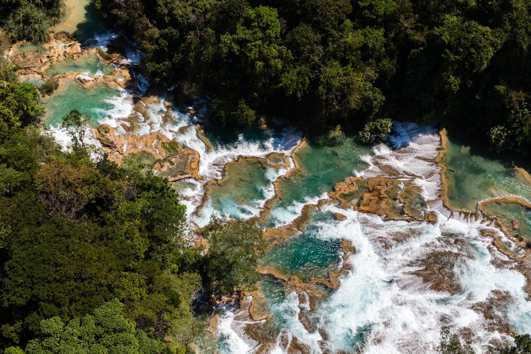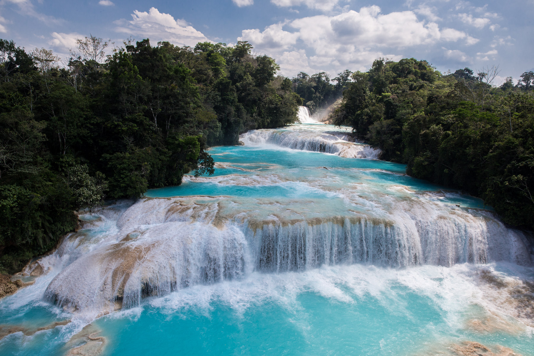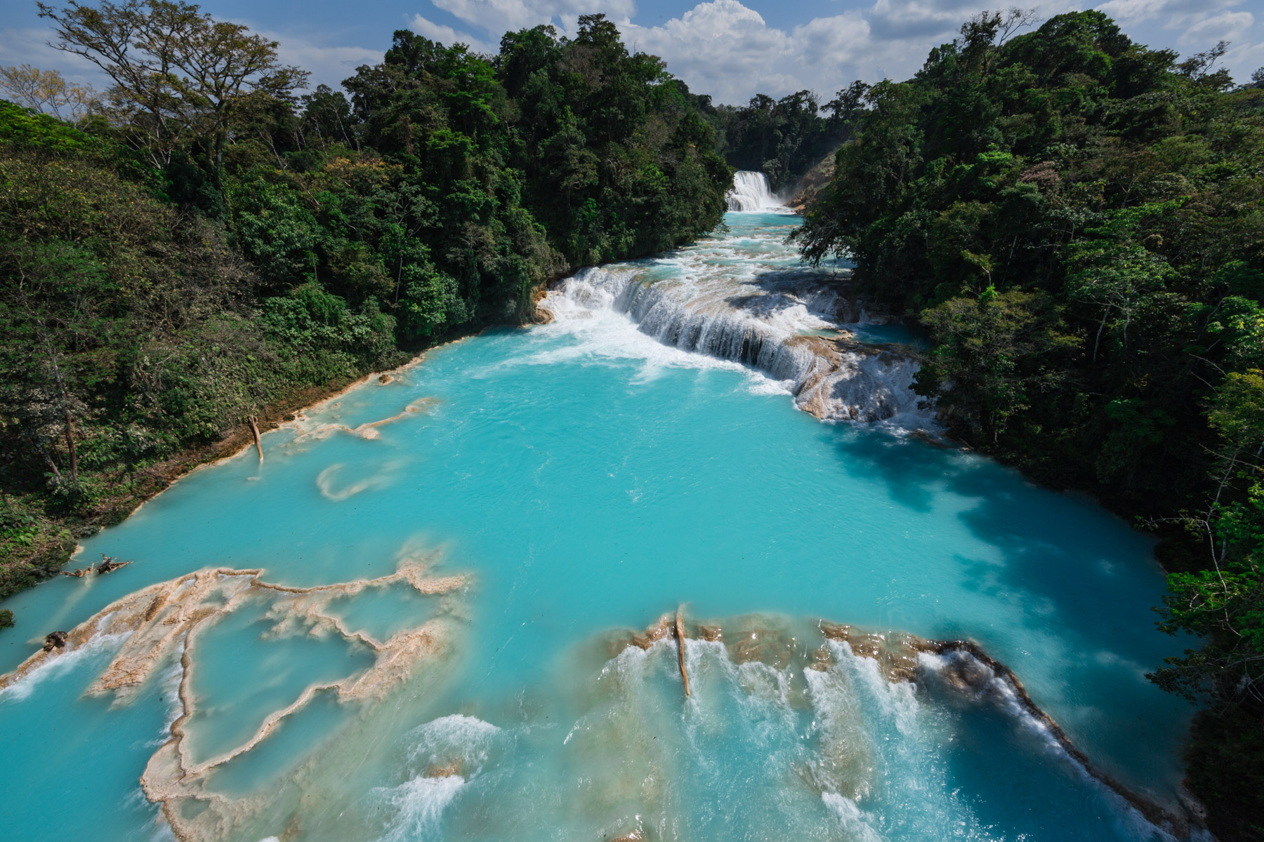 Cascades de Agua Azul sur la rivière Yax-Há, État du Chiapas, Mexique (17°16'55.64"N - 92°7'29.18"O)