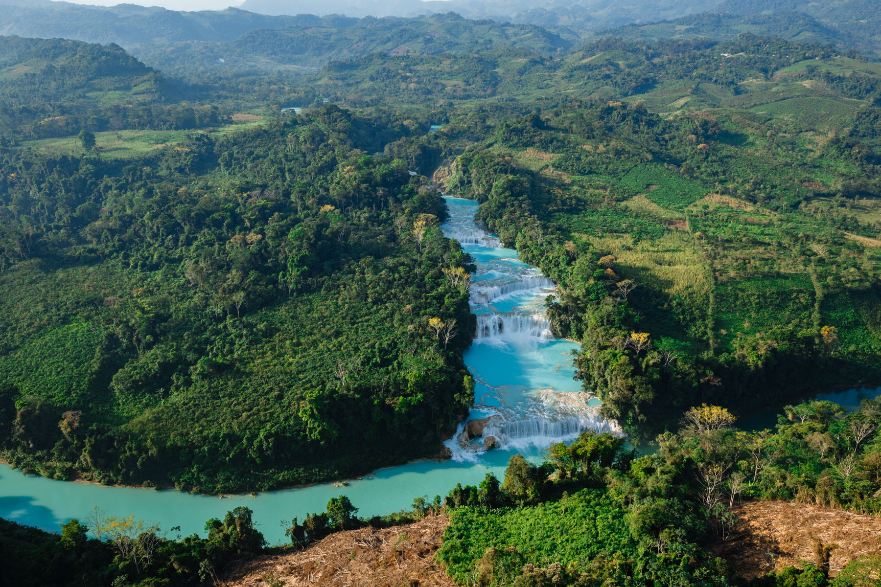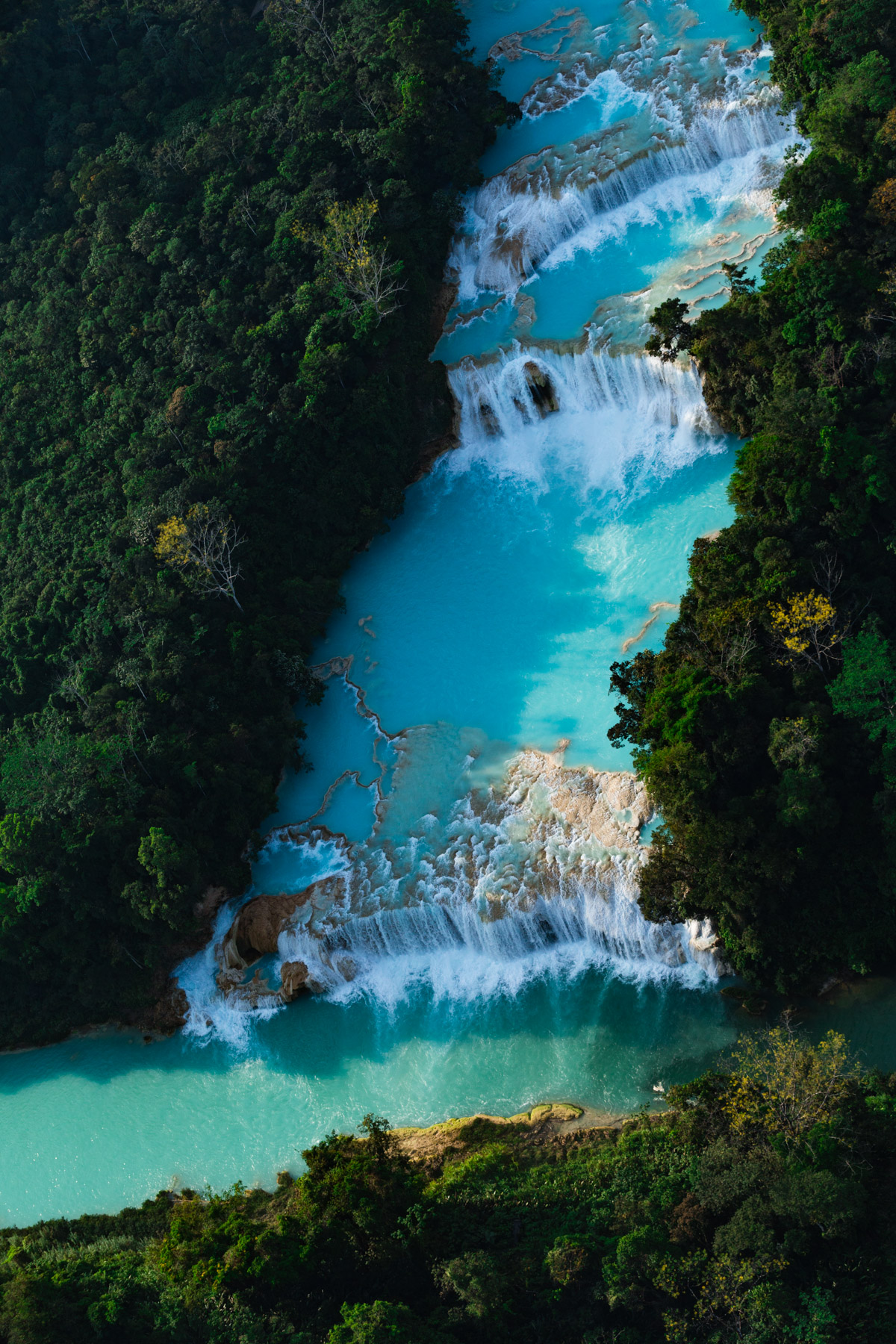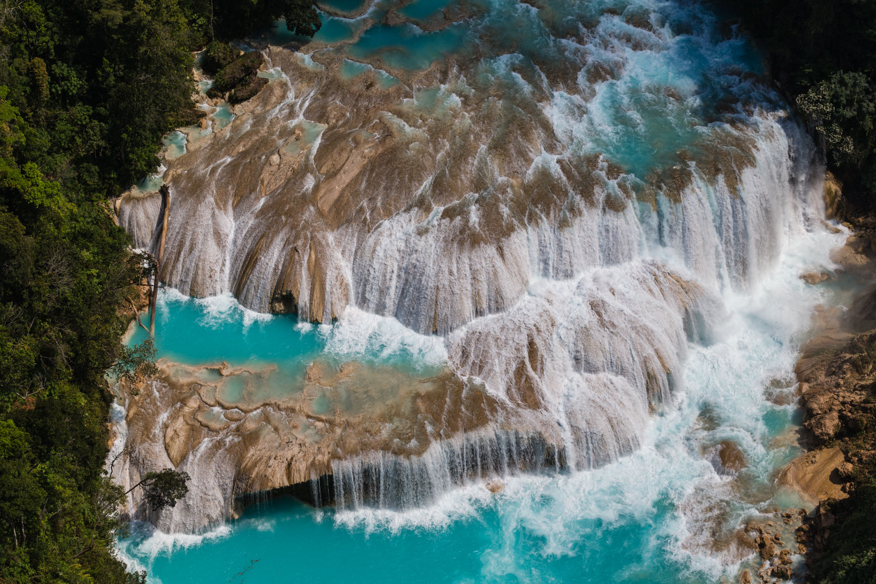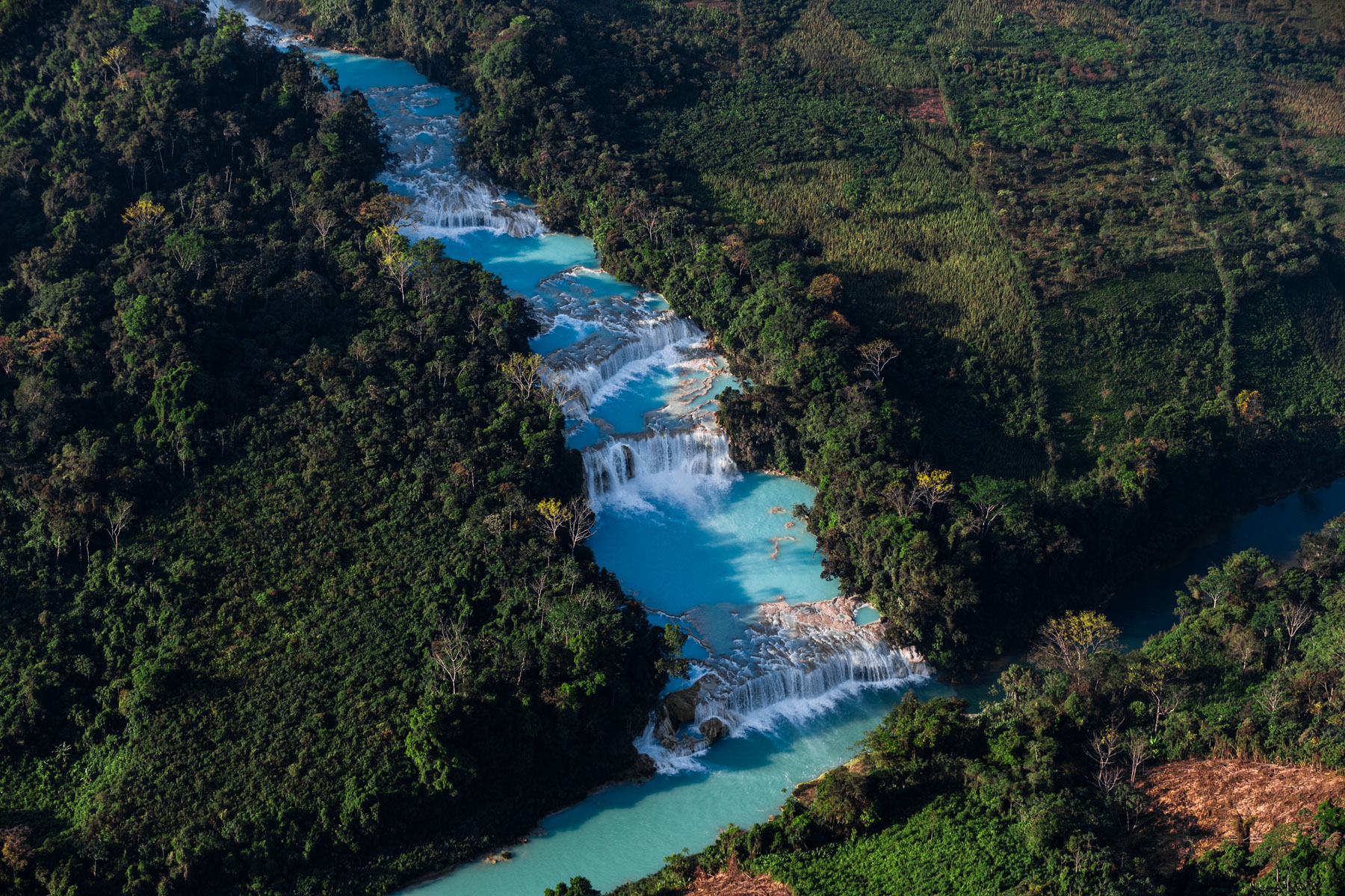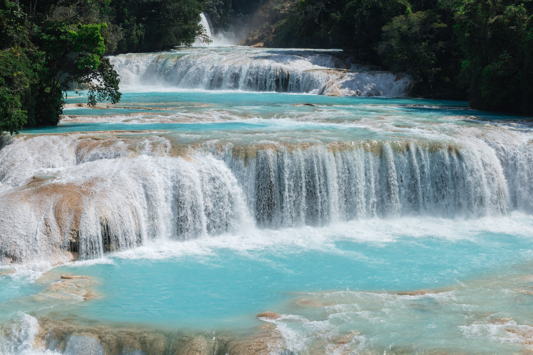 Cascades de Agua Azul sur la rivière Yax-Há, État du Chiapas, Mexique (17°16'55.64"N - 92°7'29.18"O)