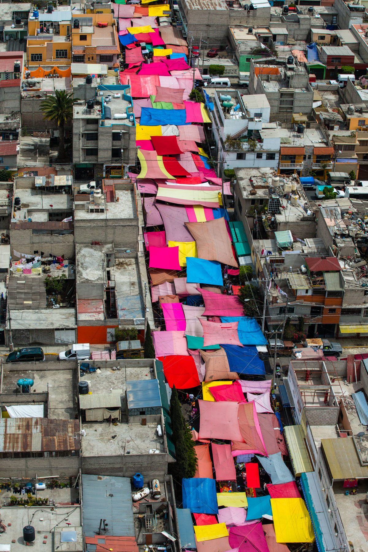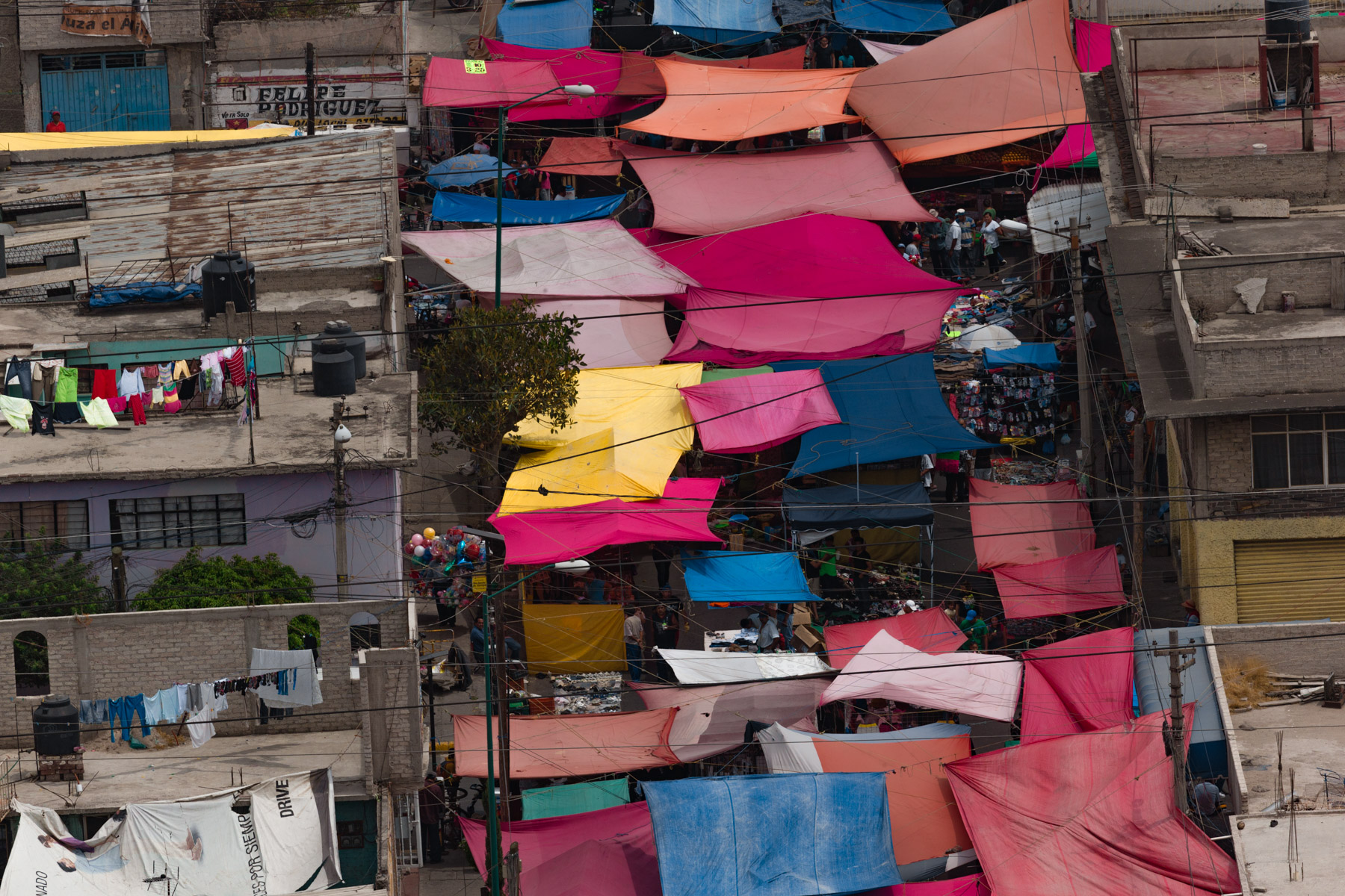 Market near the neighborhood of Xochimilco, Mexico City, Mexico (19°27' N – 99°16' W).