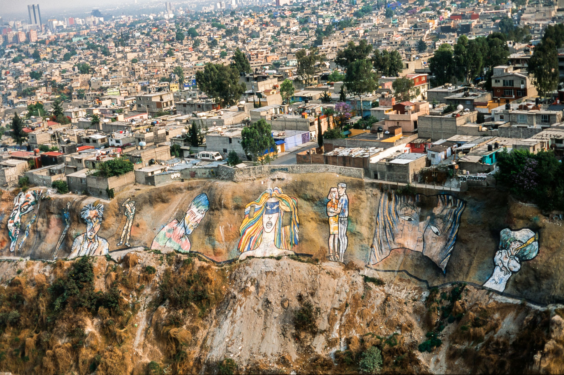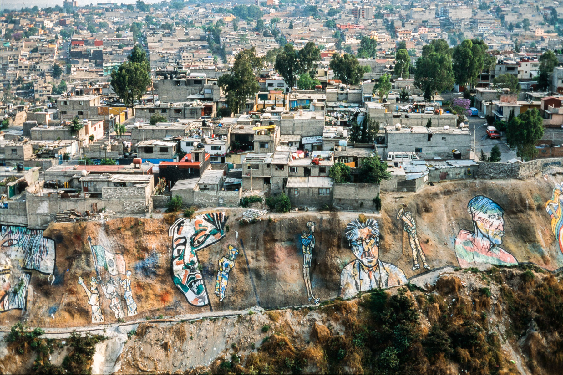 Mexico City - La ville et graffitis sur les murs d'un quartier populaire
