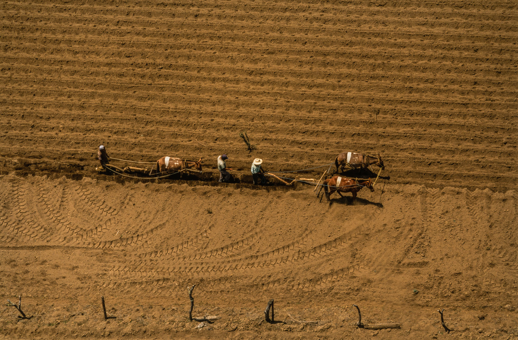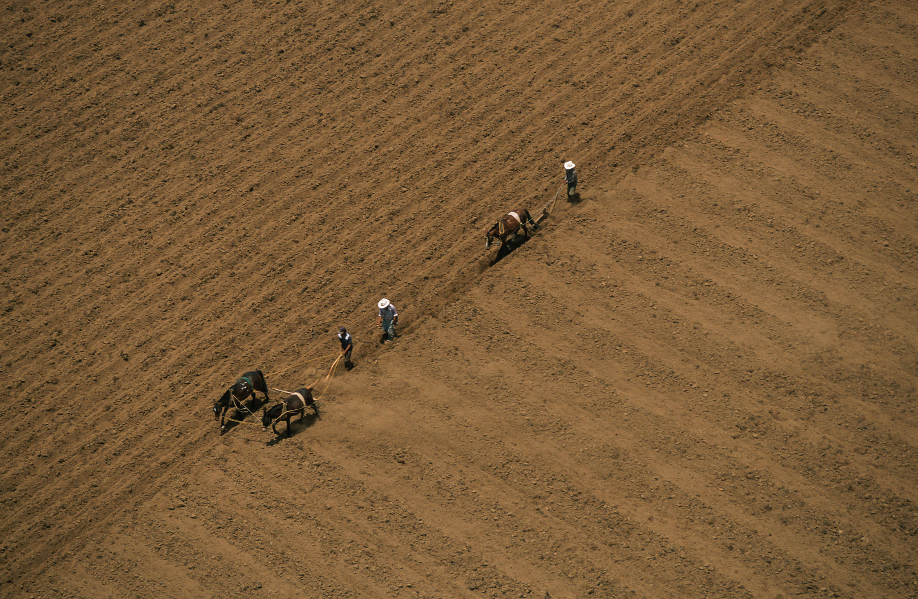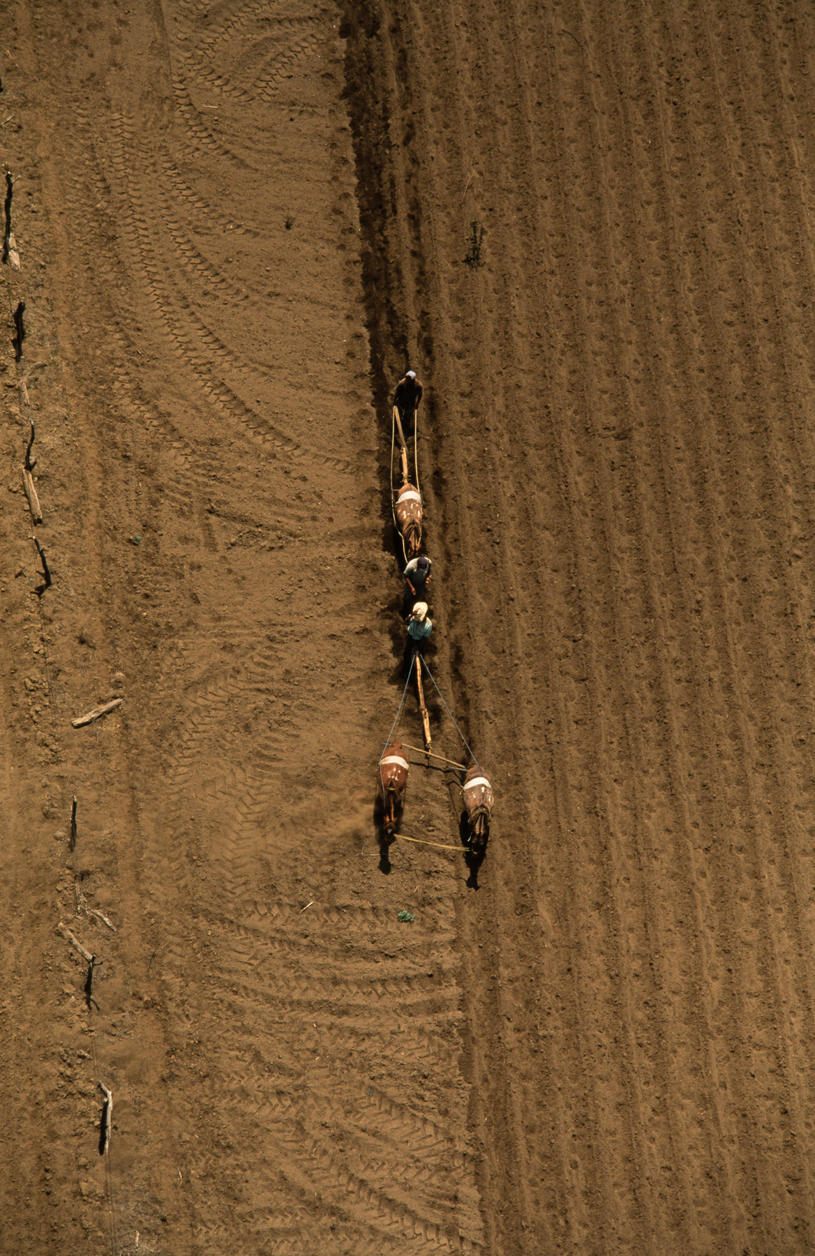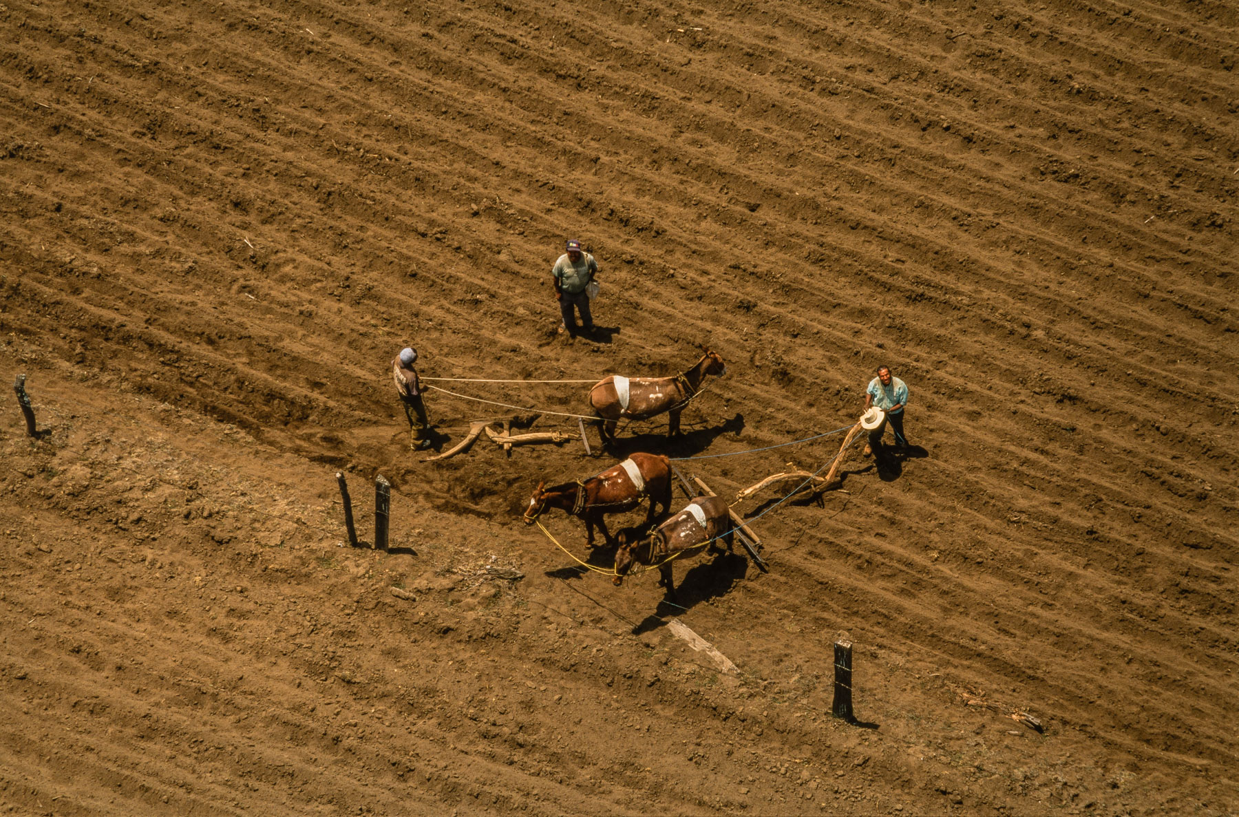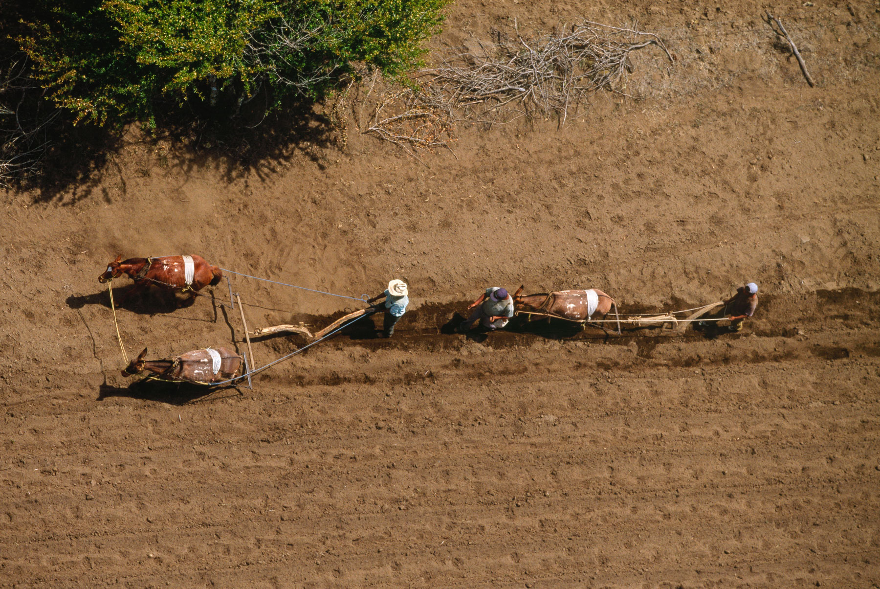 Labour par des équidés dans un champs près de Zamora - Michoacan