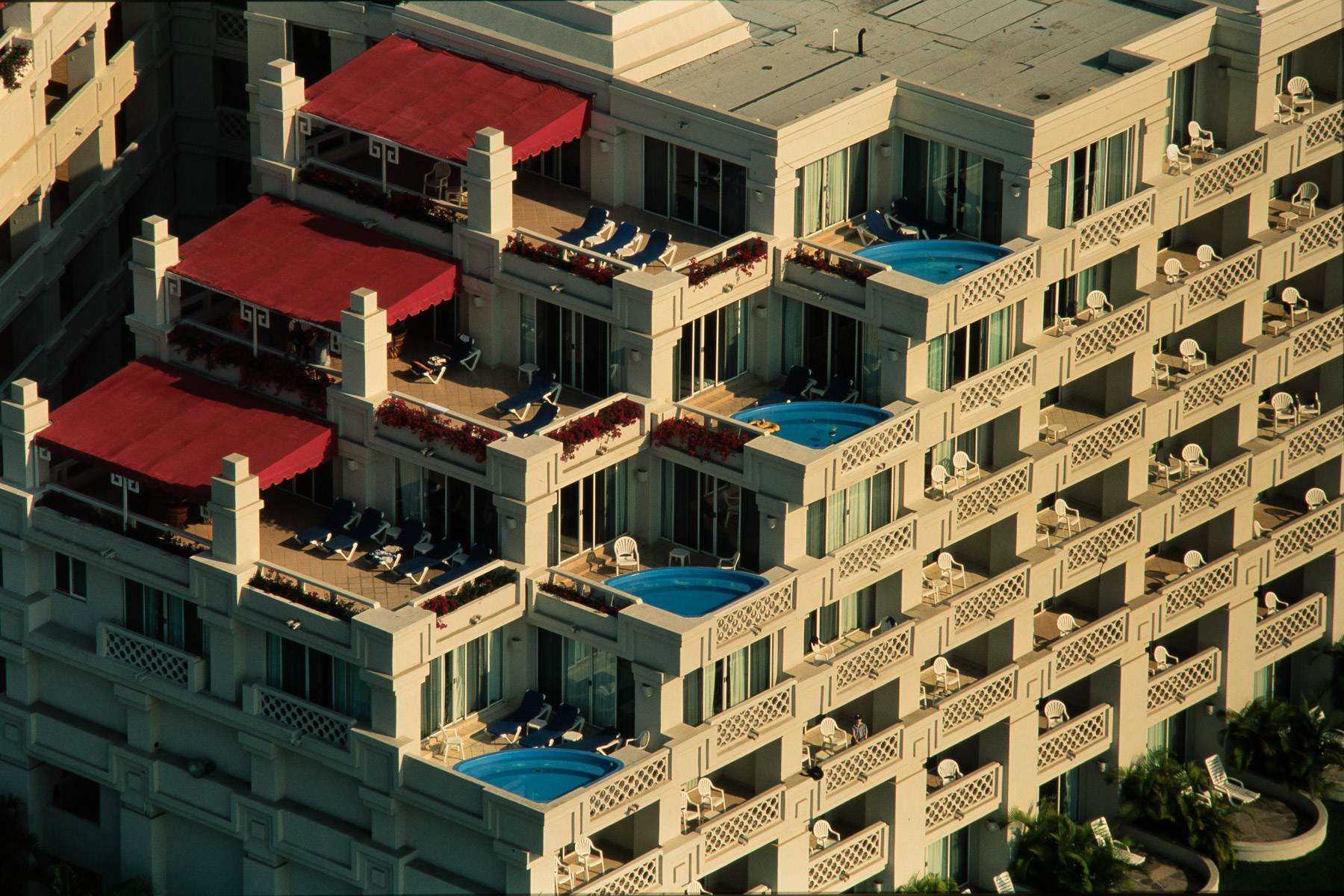 Piscine sur les balcons de l'hotel "Las Hadas" sur le littoral de Manzanillo