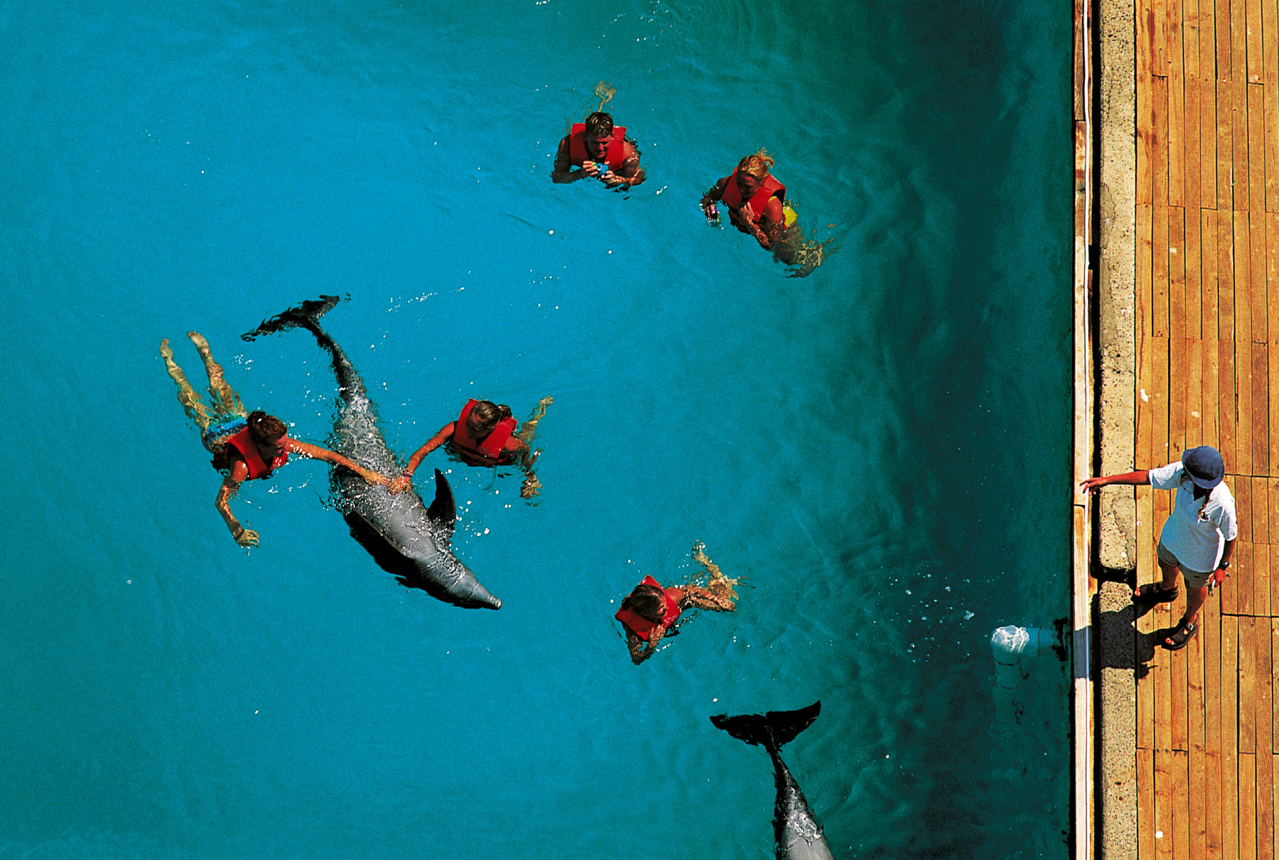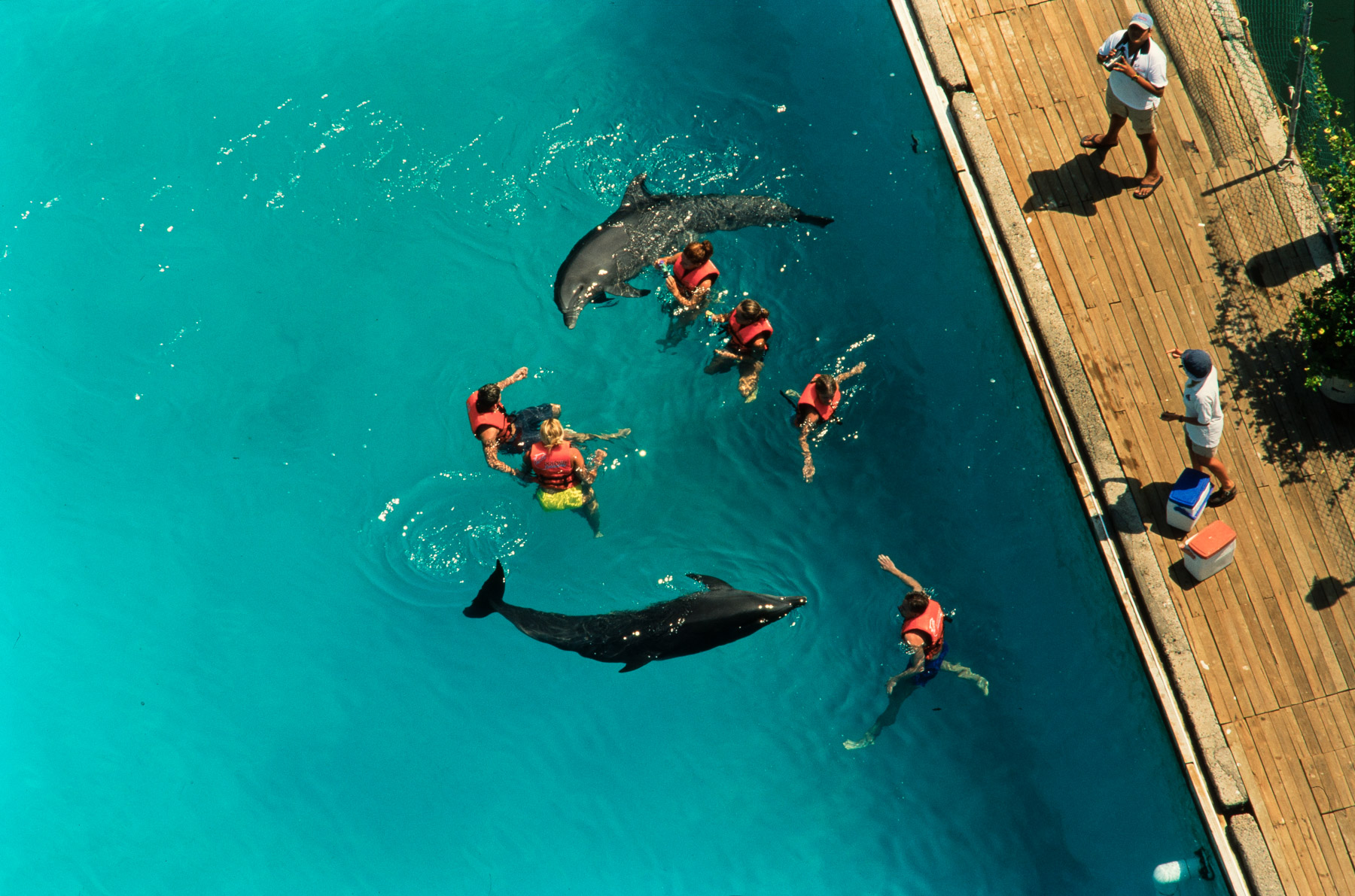 Natation ludique avec les dauphins, Puerto Vallarta, État de Jalisco, Mexique (20°42’ N – 105°16’ O).
