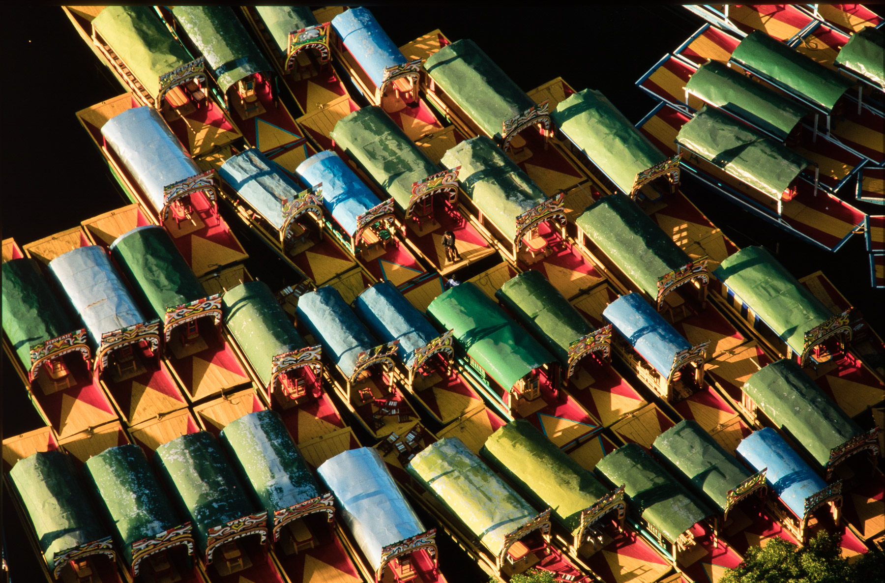 Quartier de Xochimilco (classé à l'Unesco) : barques « trajineras », Mexico City, District fédéral, Mexique ( 19°15'38.74"N - 99° 5'48.49"O)