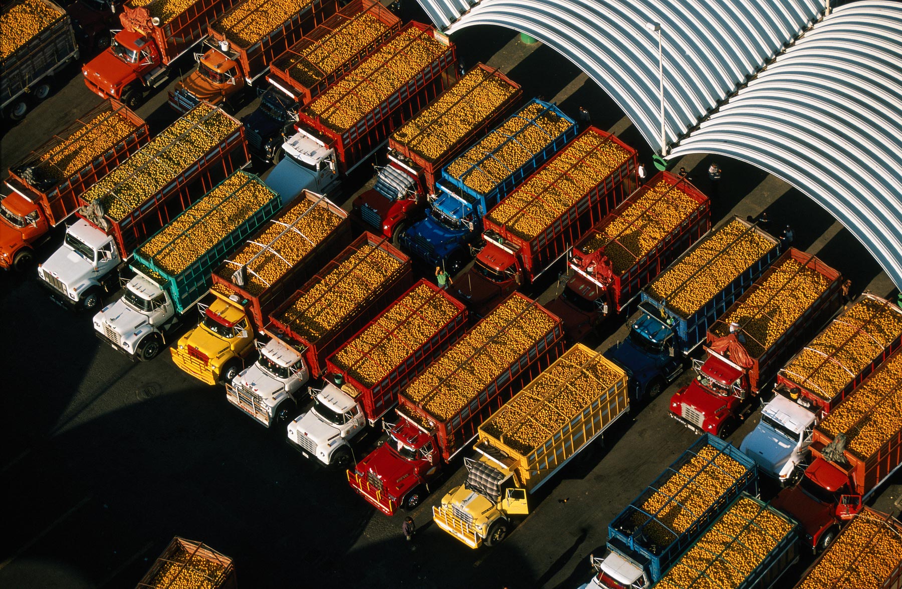 Camions de cannes à sucre de l'usine sucrière de Tres Valles, Etat de Veracruz, Mexique (18°15'54.44"N - 96° 9'44.01"O)