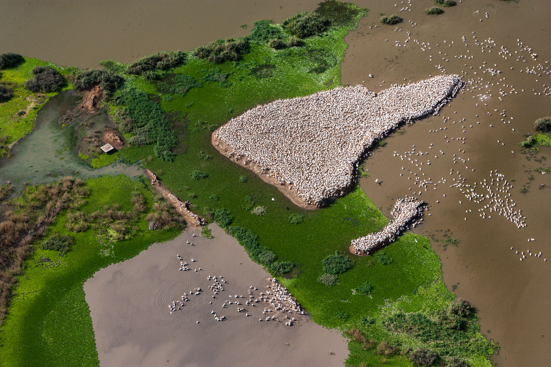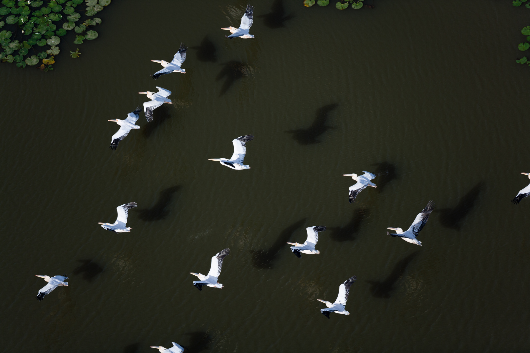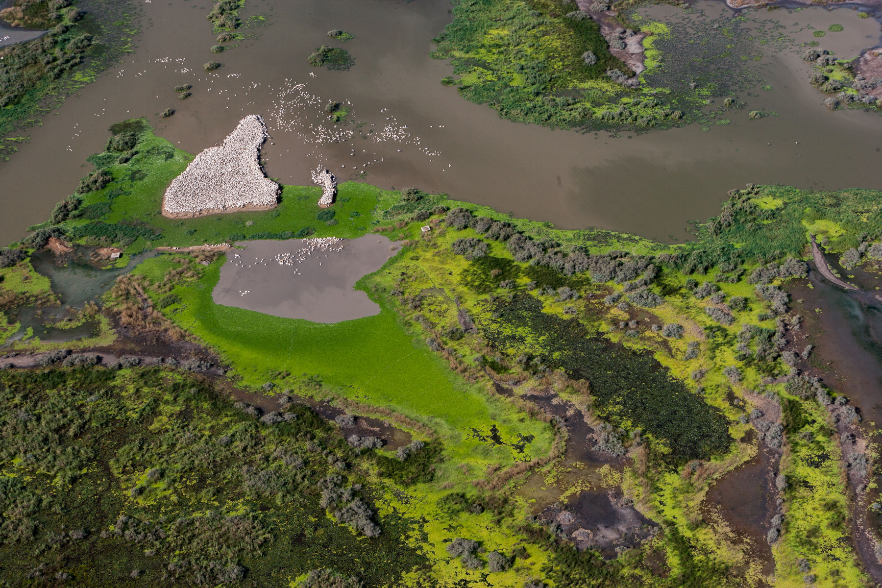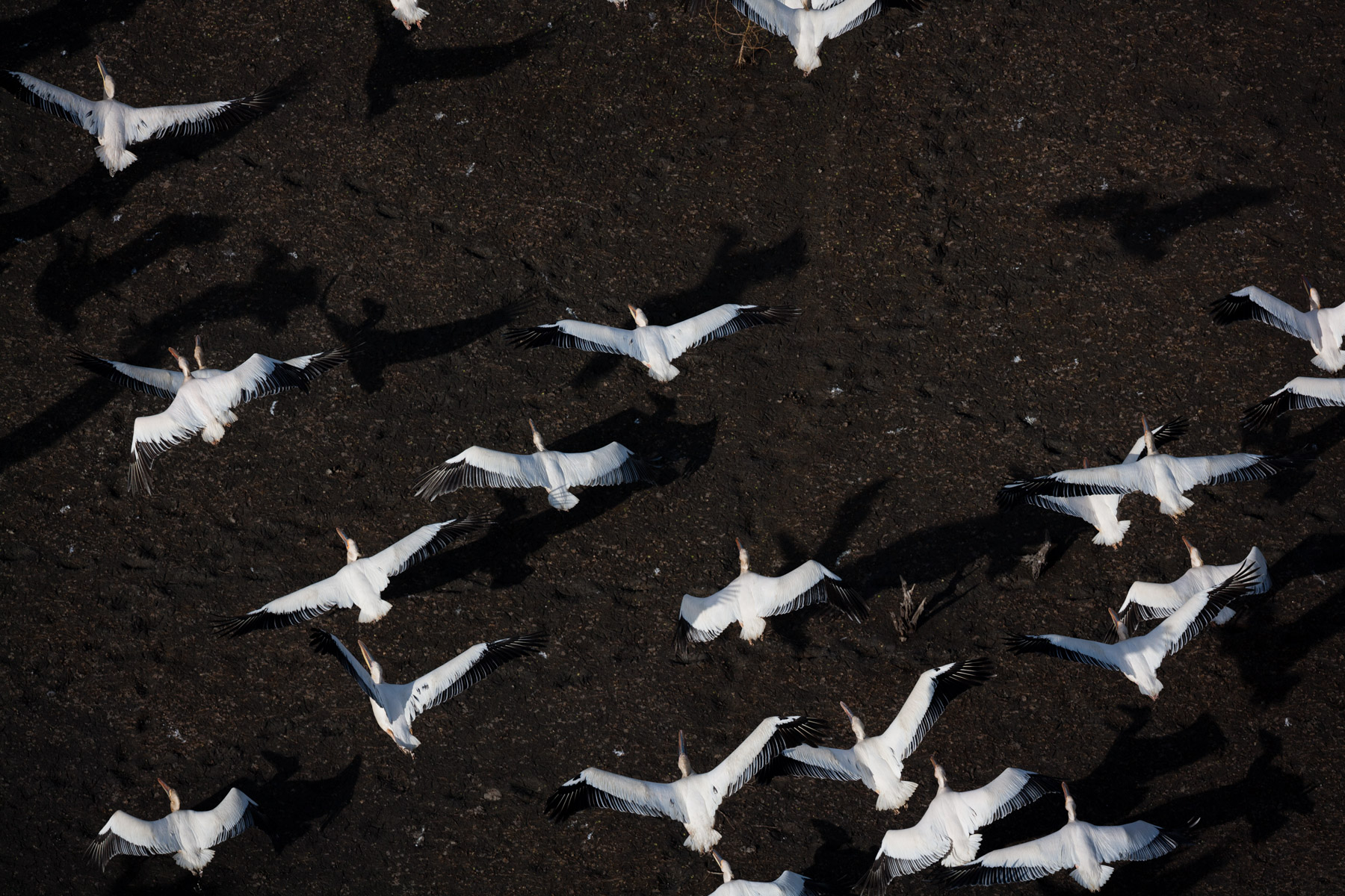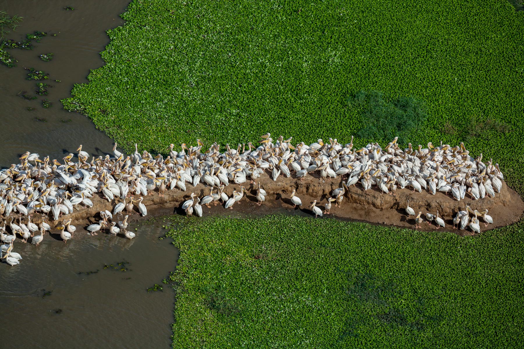 White Pelicans in the Senegal River Delta near St. Louis, Djoudj National Park Sanctuary, Senegal (16° 25' N – 16°16' W).