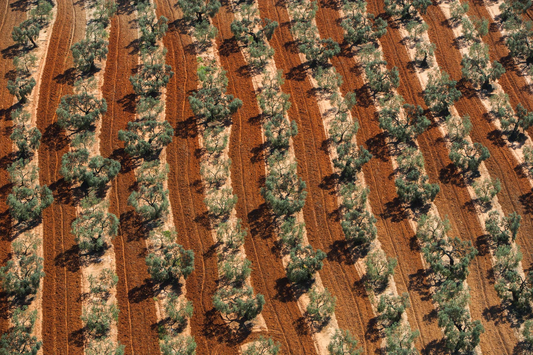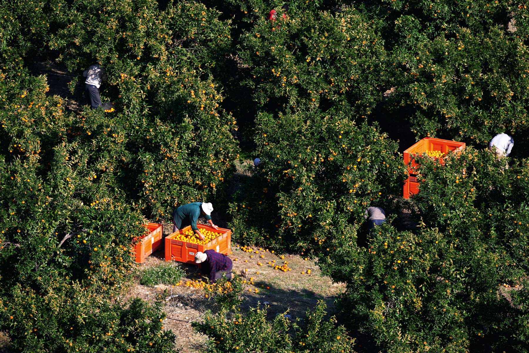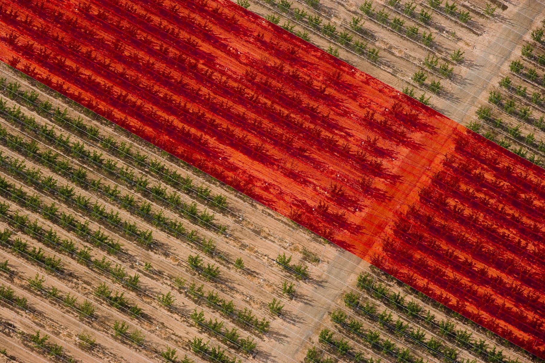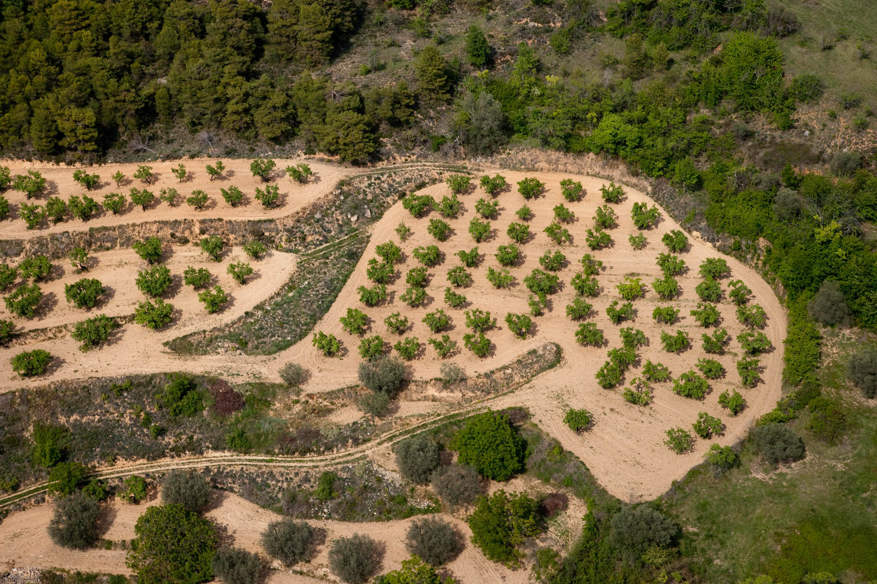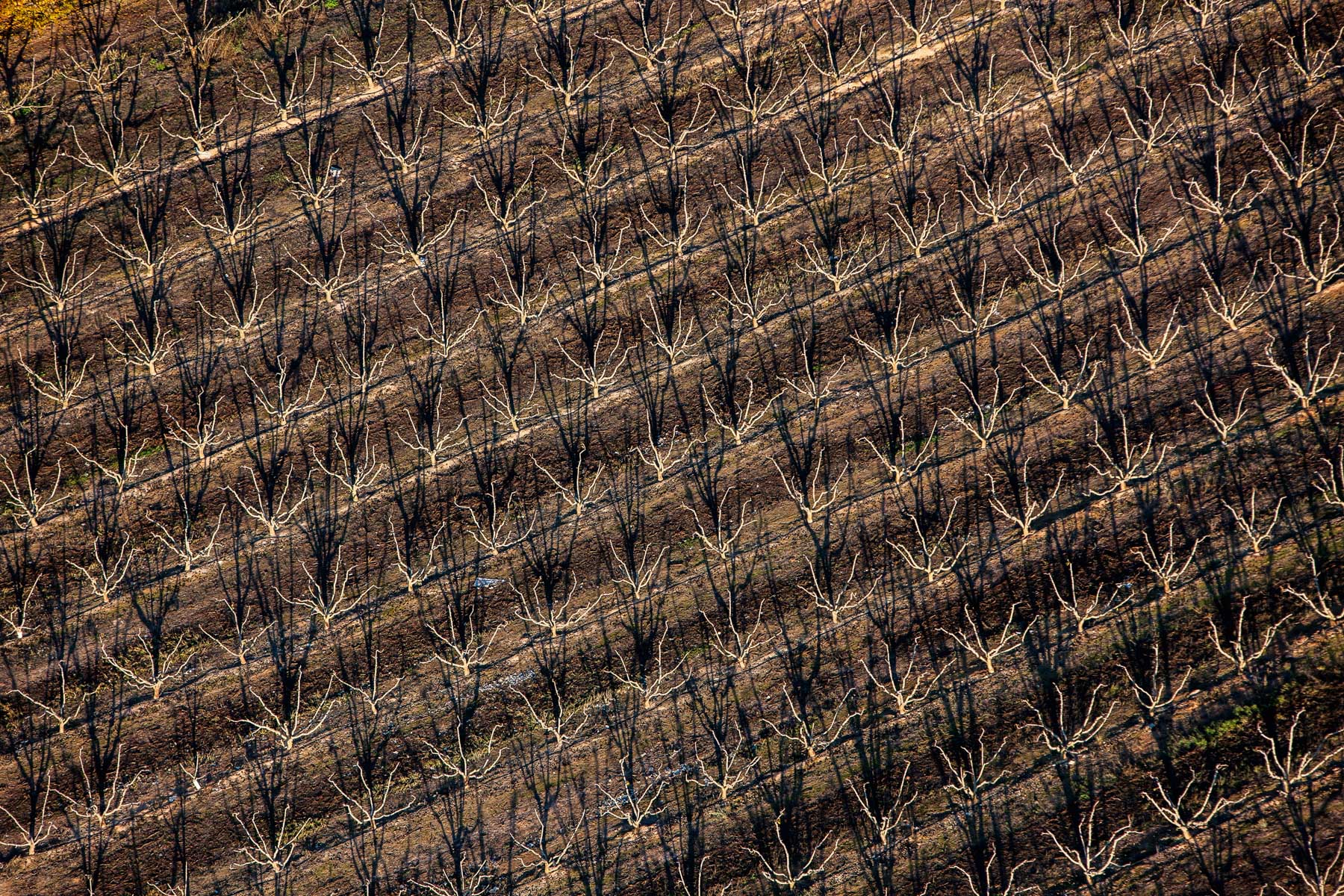 Vergers de pêchers dans les contreforts des Pyrénnées, Catalogne, Espagne