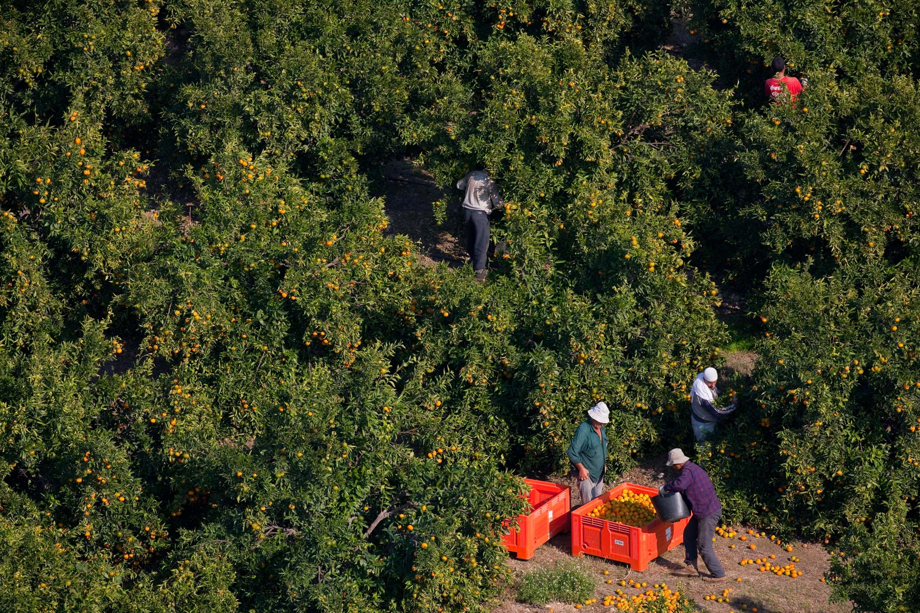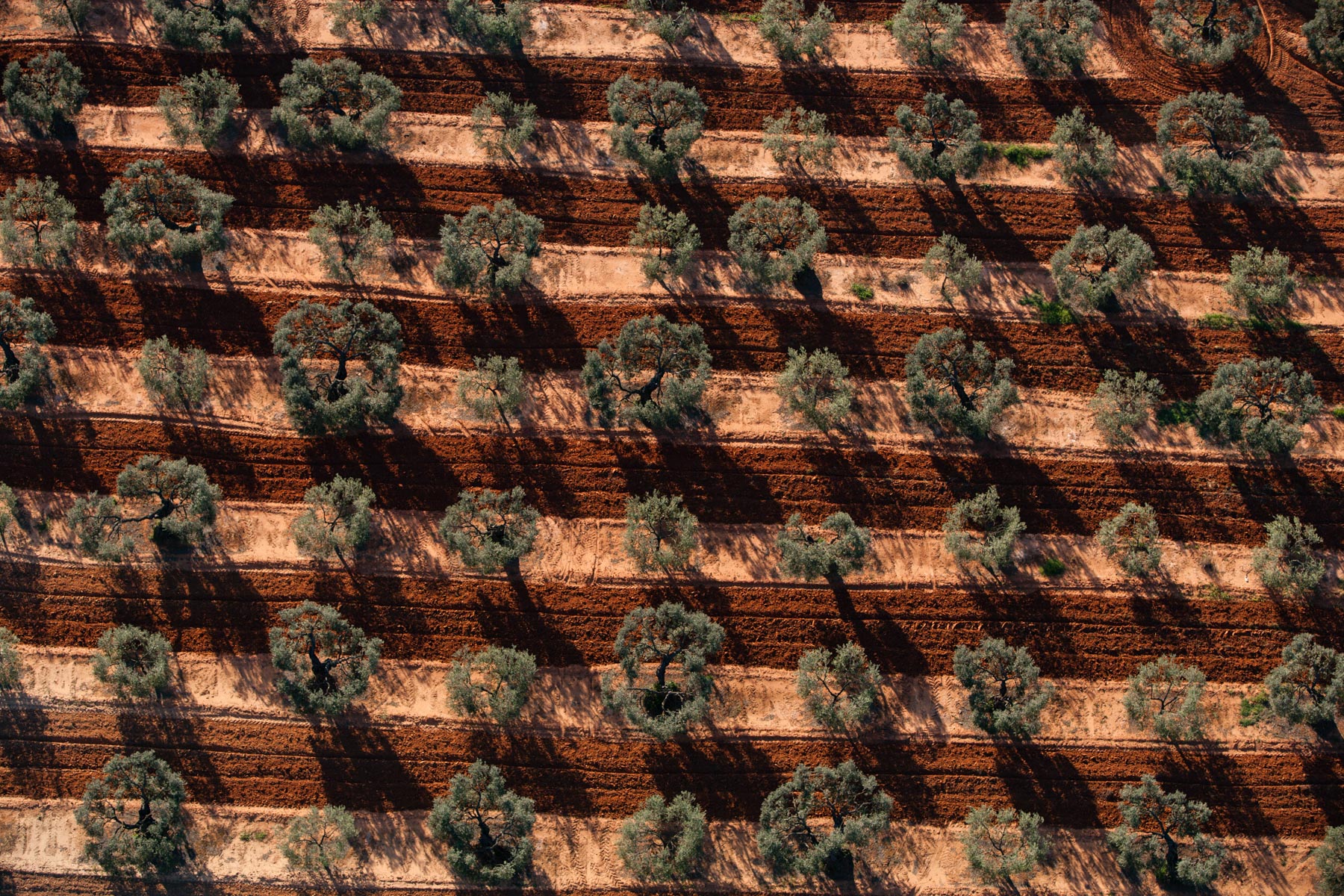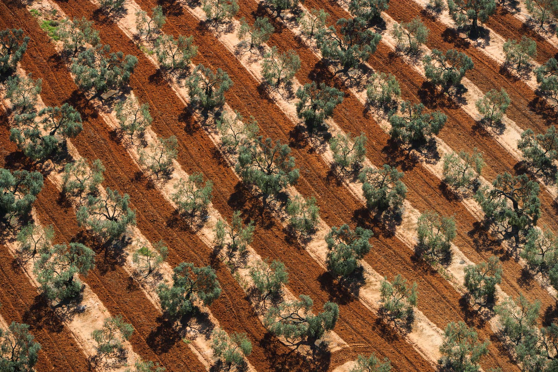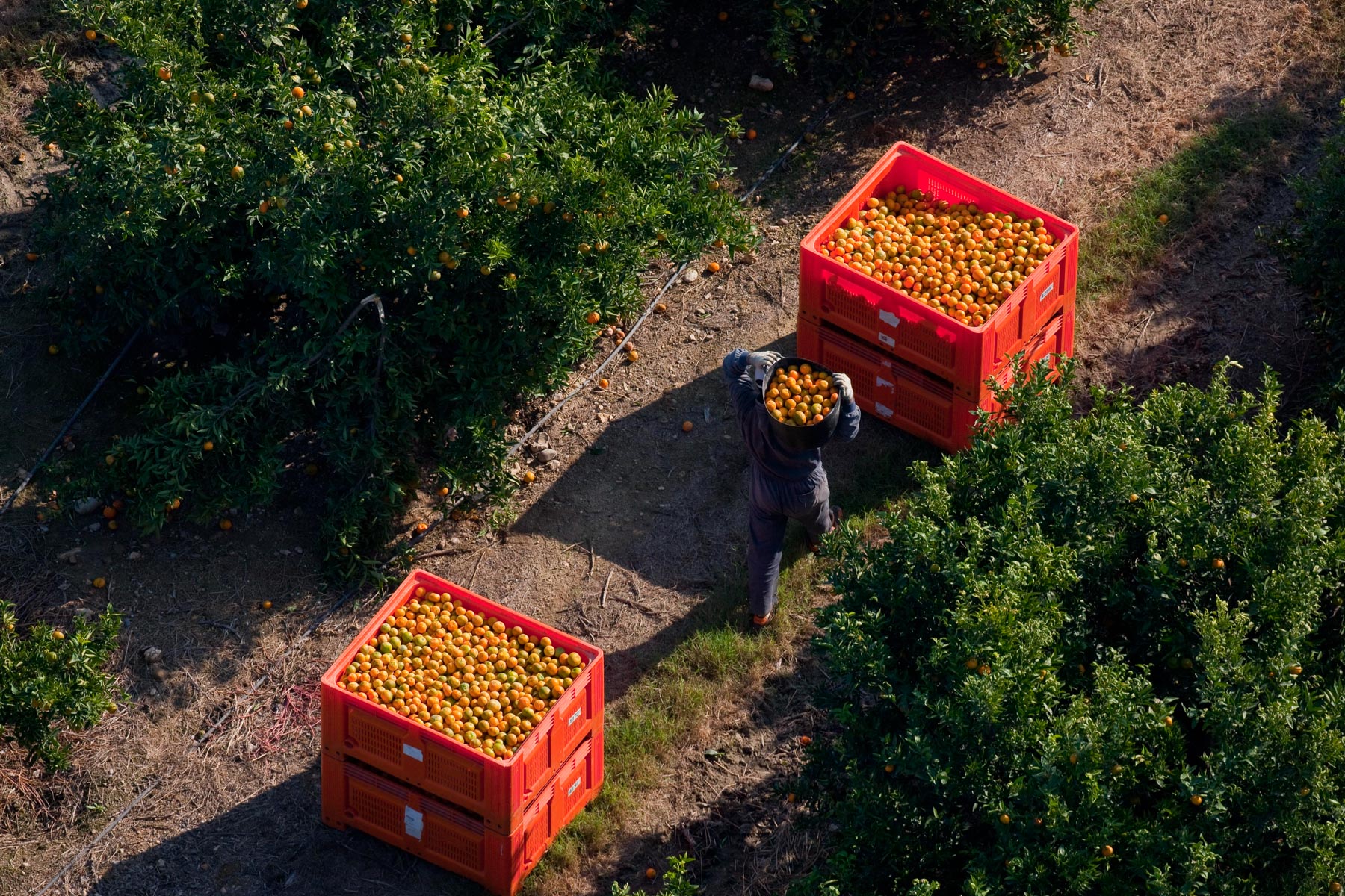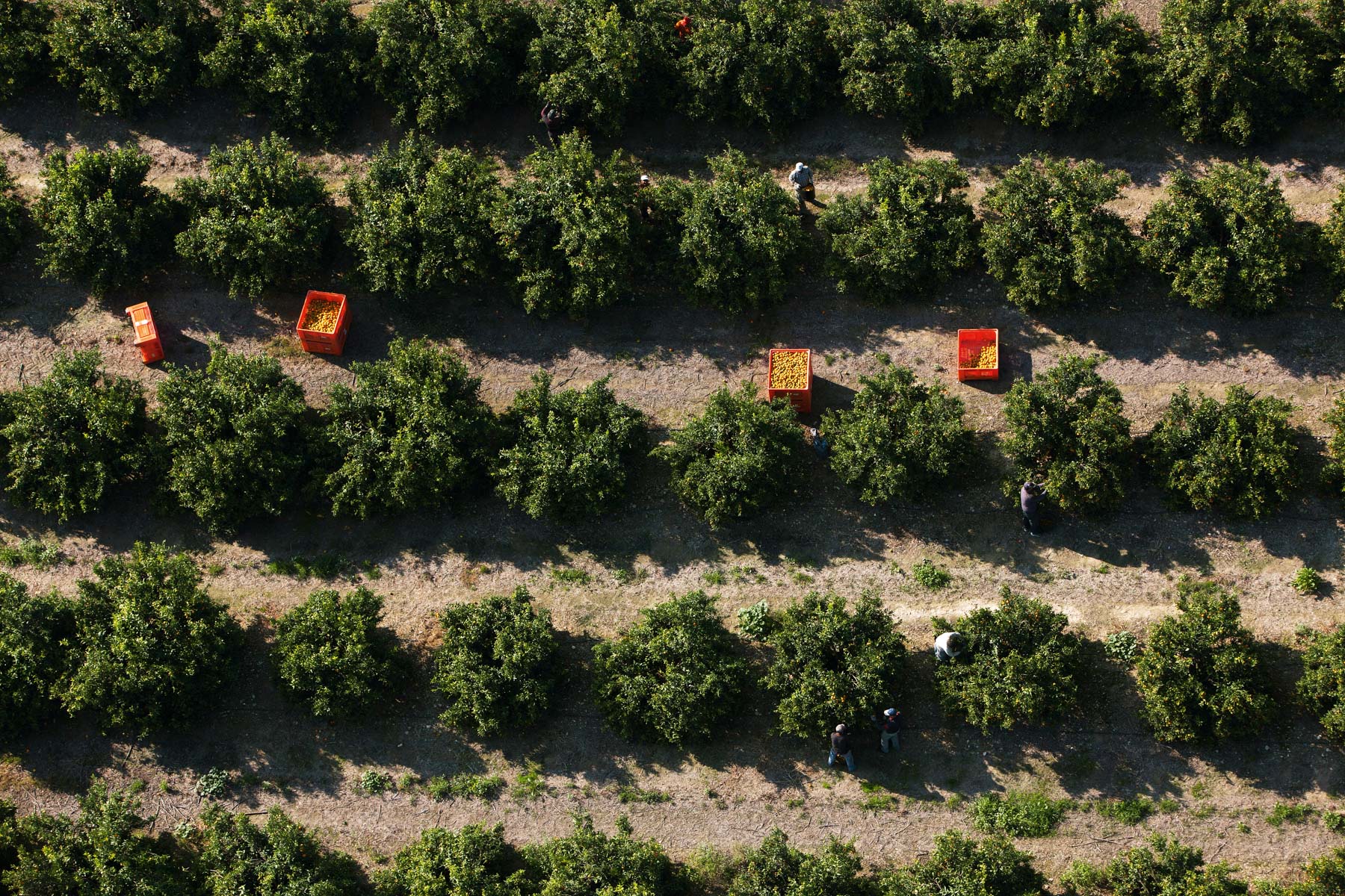 Vergers de pêchers dans les contreforts des Pyrénnées, Catalogne, Espagne