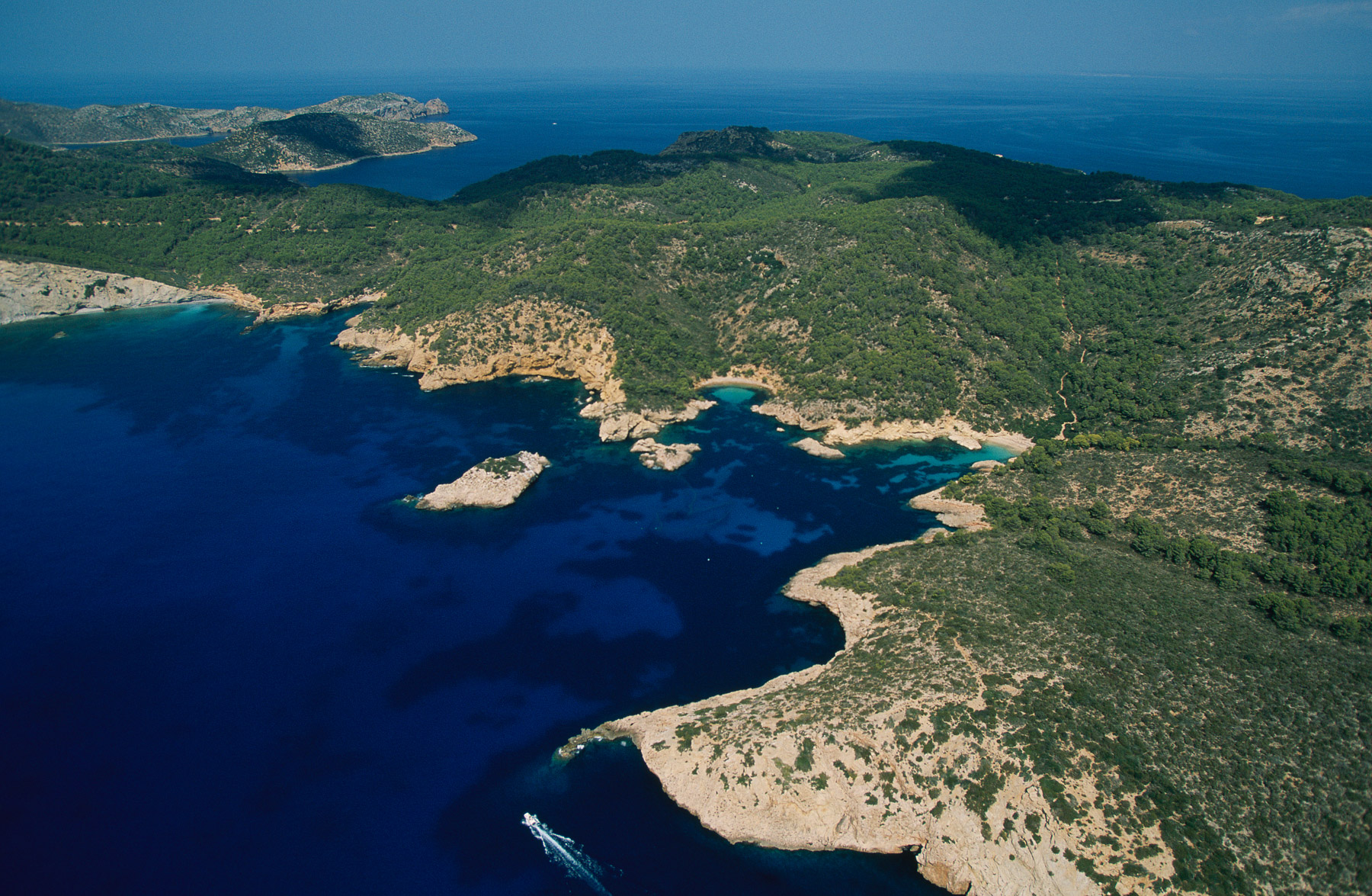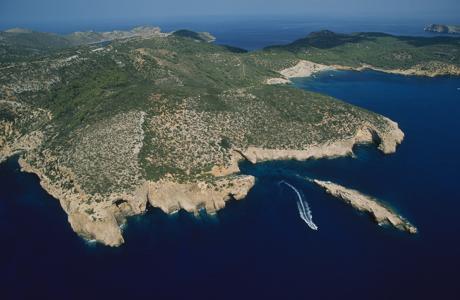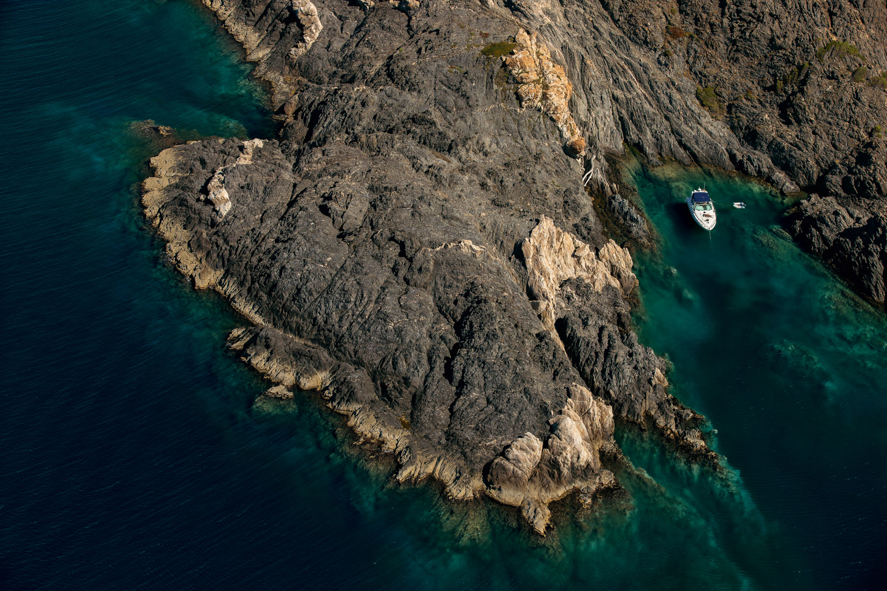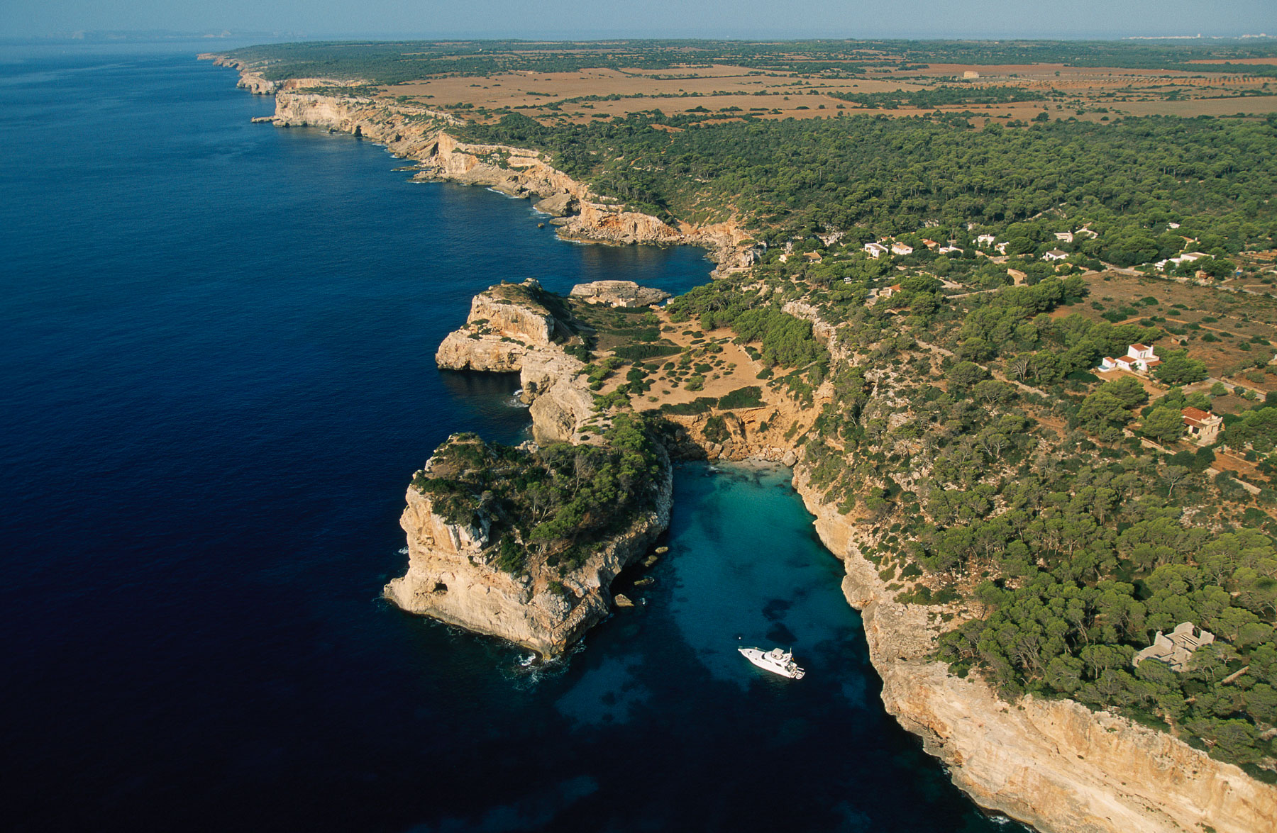 Majorque : Bateau dans les calanques près de la Pte des Salines