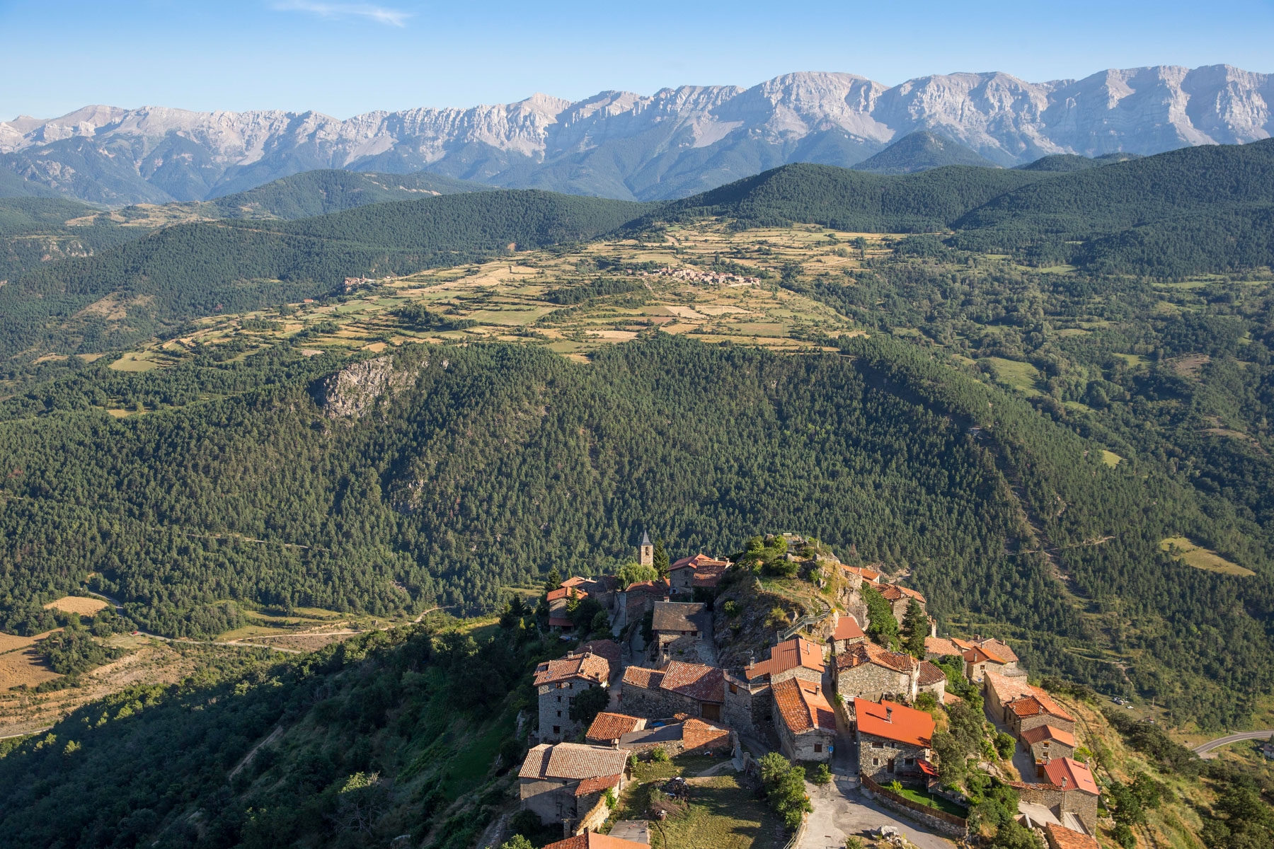 Village isolé dans le contrefort des Pyrénées, Catalogne, Espagne