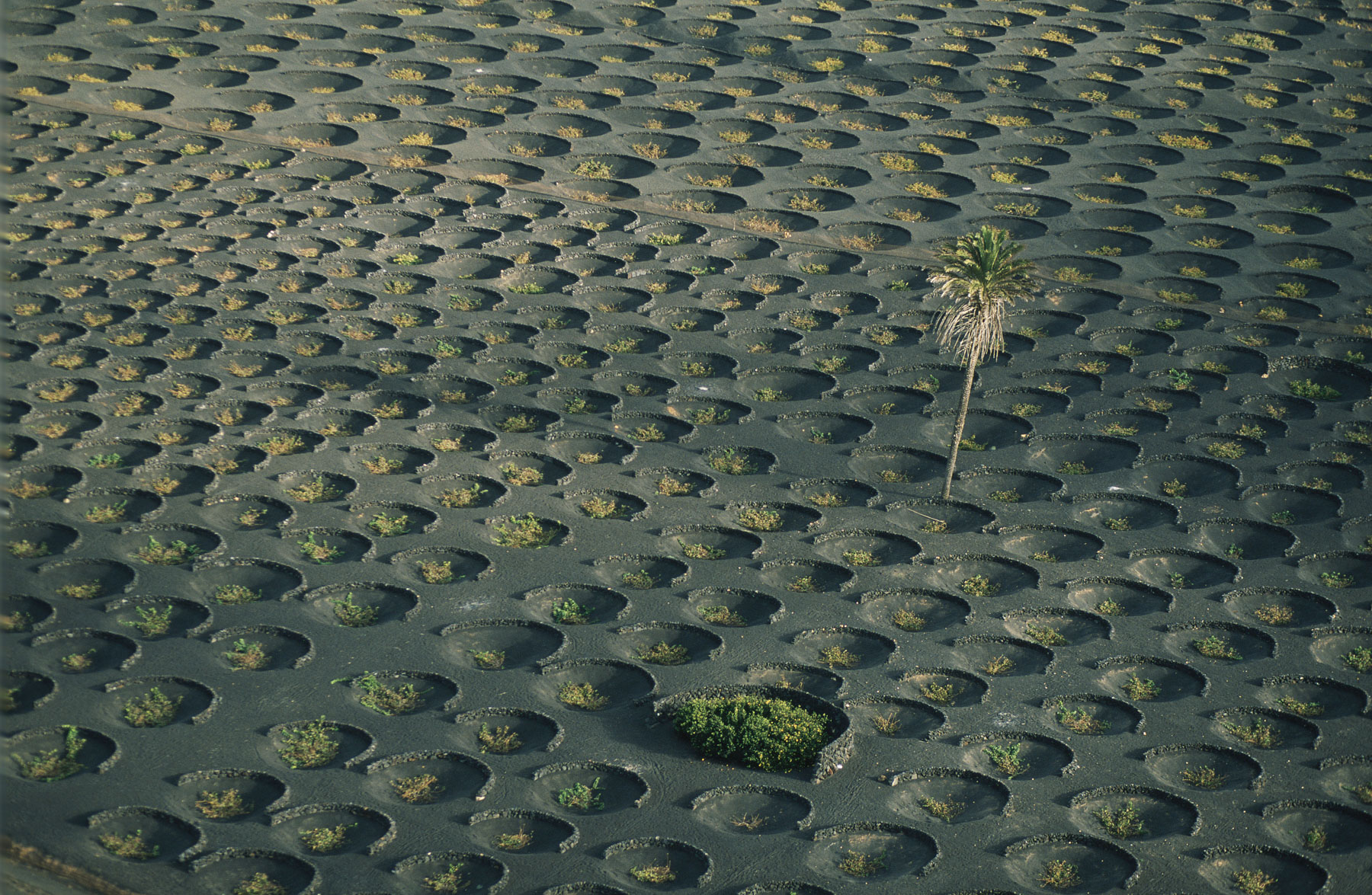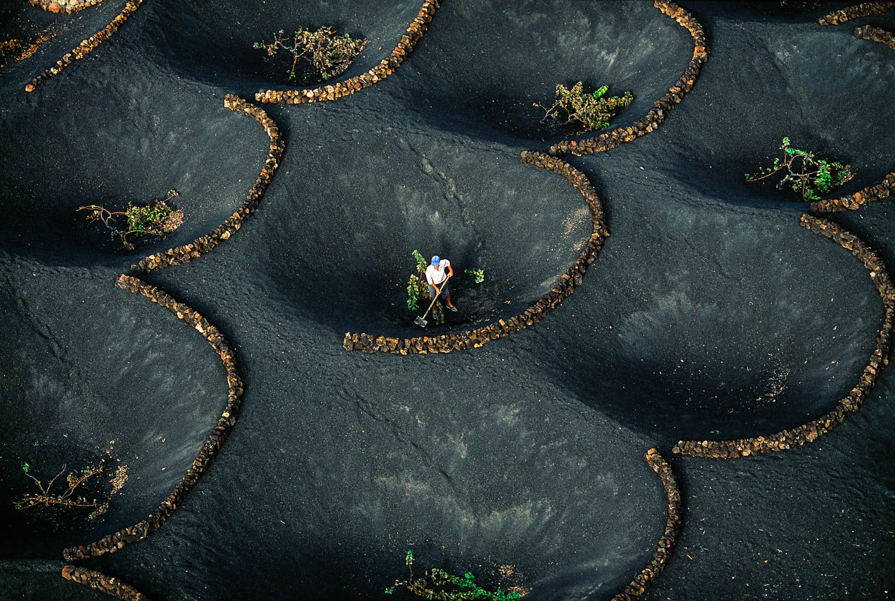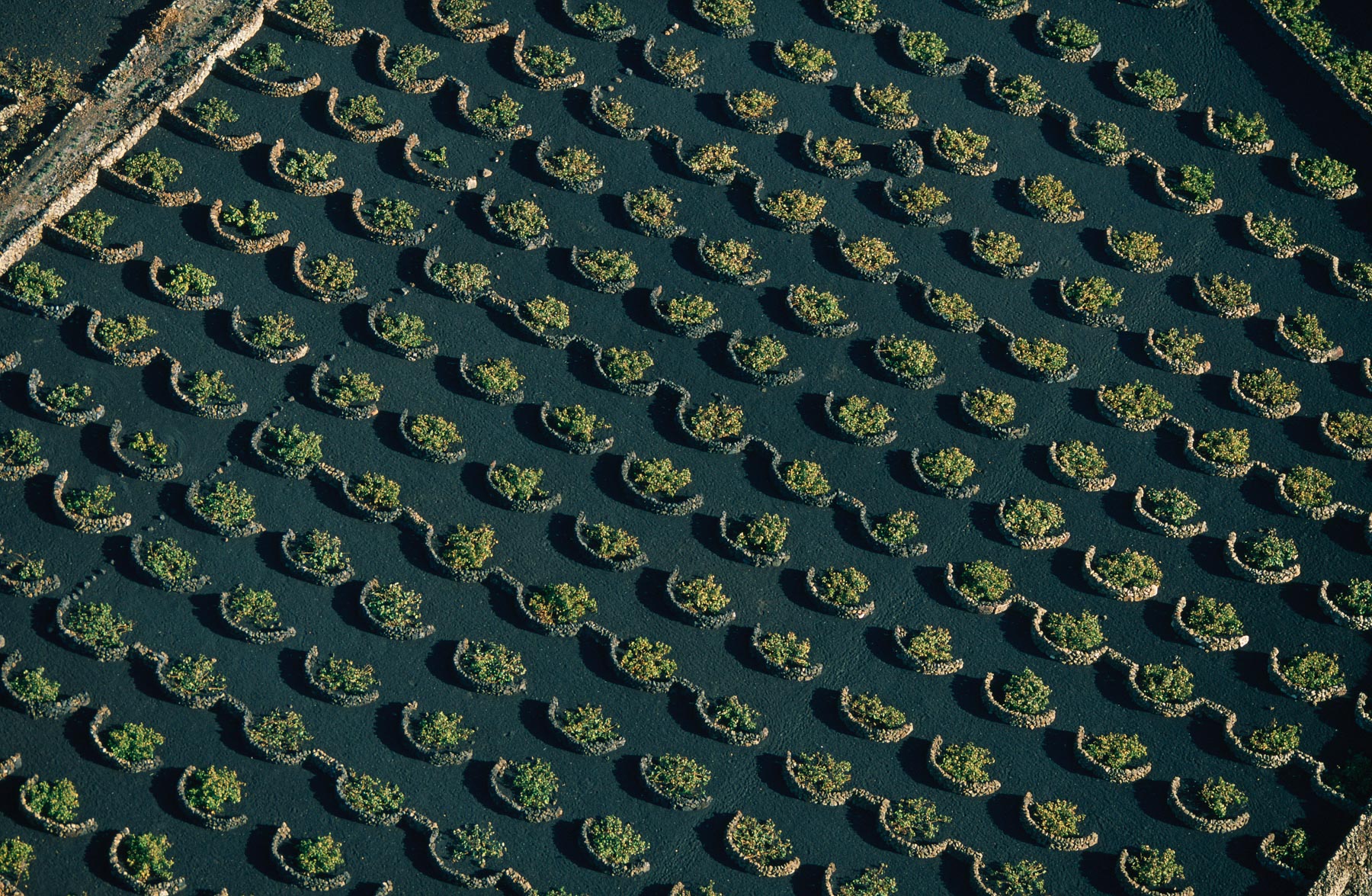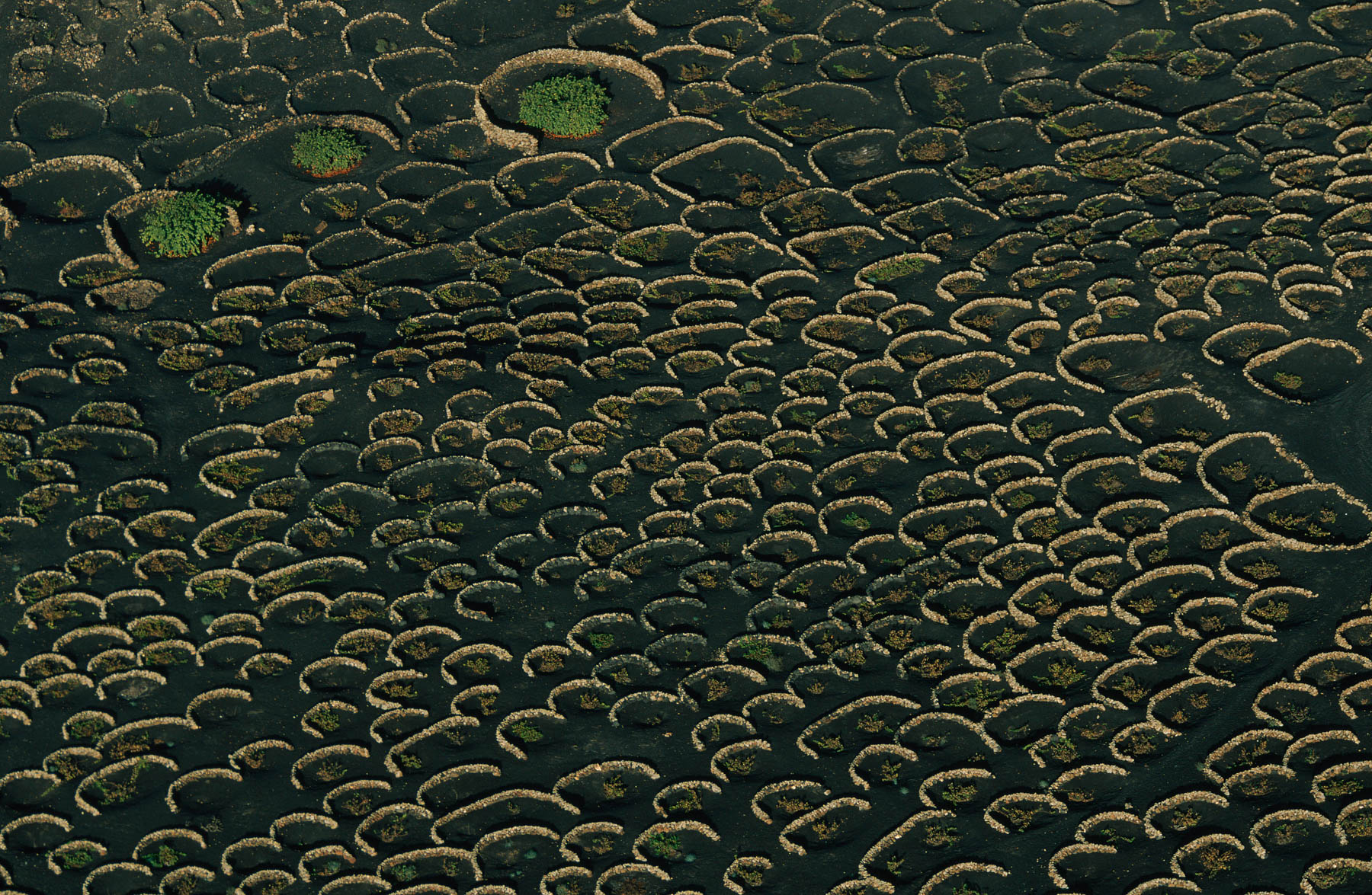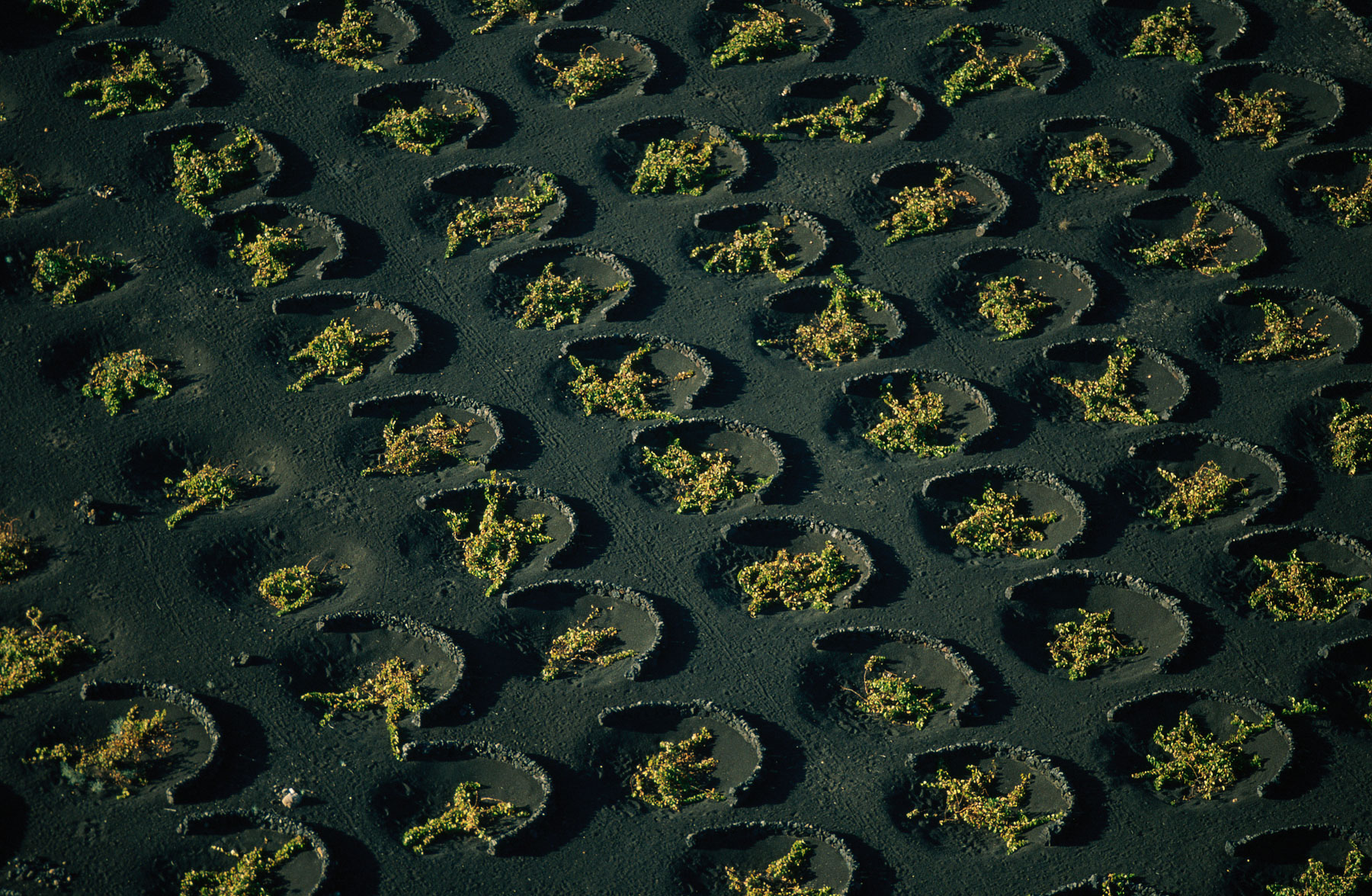 Plants de vignes protégés par un muret, région de La Geria, Lanzarote, îles Canaries - Espagne