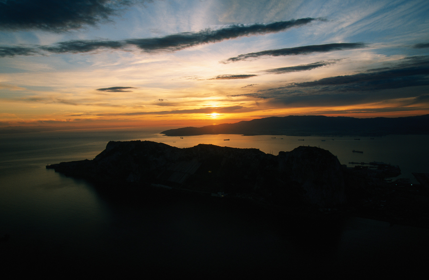 Prov. de Cadix - Rocher de Gibraltar (Terr R.Uni) au soleil couchant