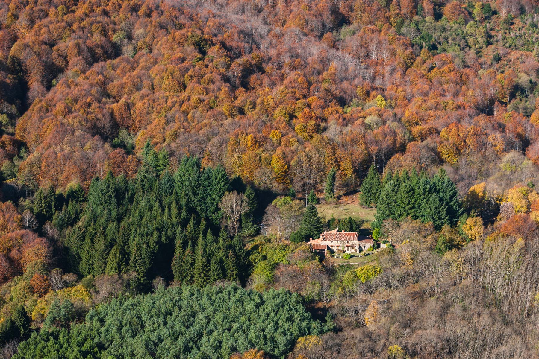 Hôtel Santa Fe dans le Parc naturel du Montseny (Réserve de la biosphère classée par l'Unesco), province de Gérone, Catalogne, Espagne (41°46'25.59"N - 2°27'53.69"E)