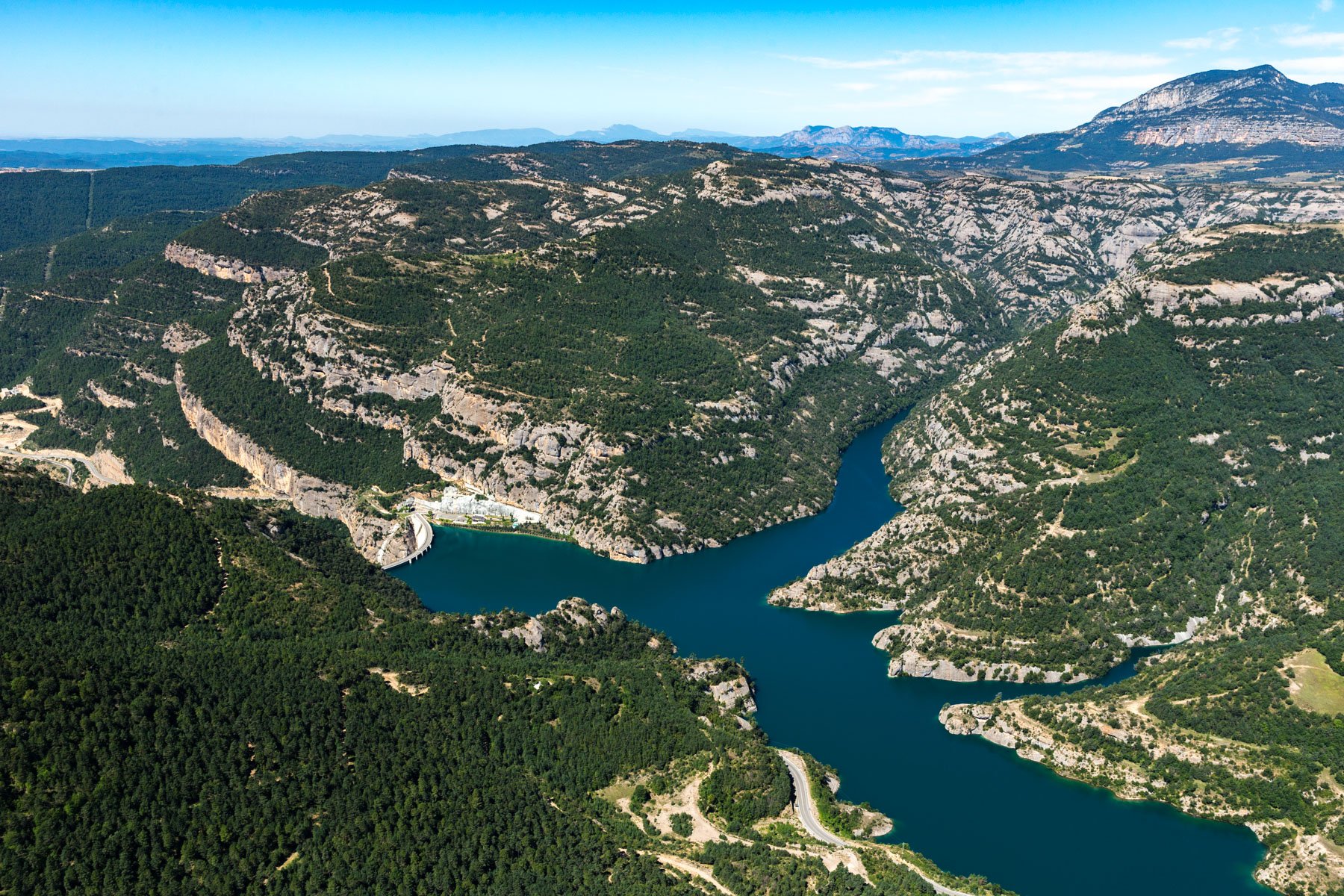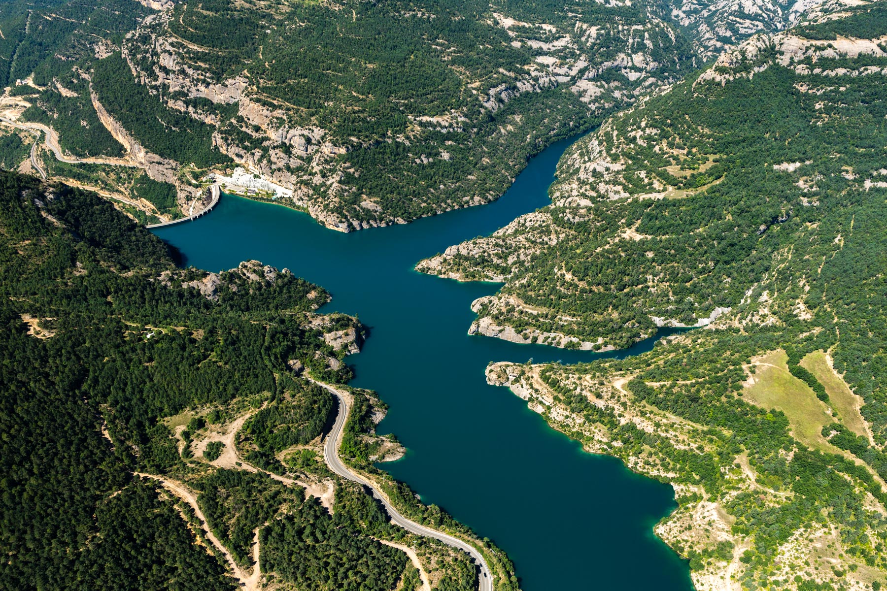 Riab reservoir and Gualter village, Catalonia, Spain (41°56'1.73" N, 1°12'1.55" E)