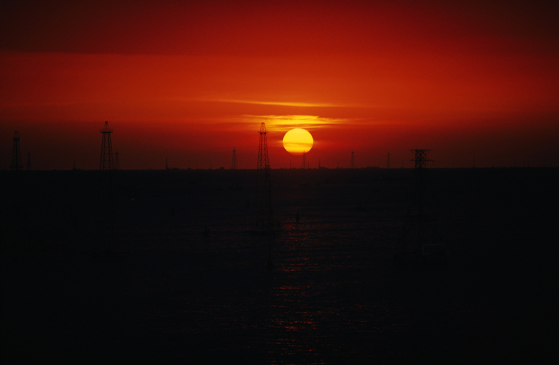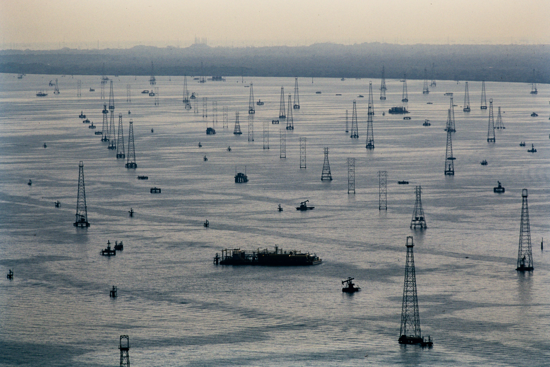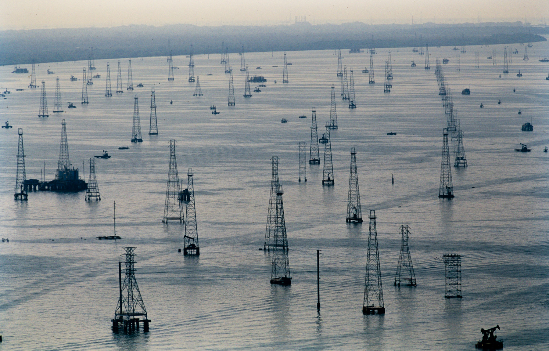 Plate-forme pétrolière sur le lac Maracaibo, Venezuela (9°50' N – 71°37' O).