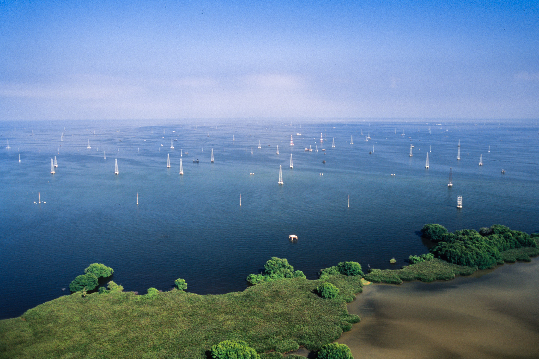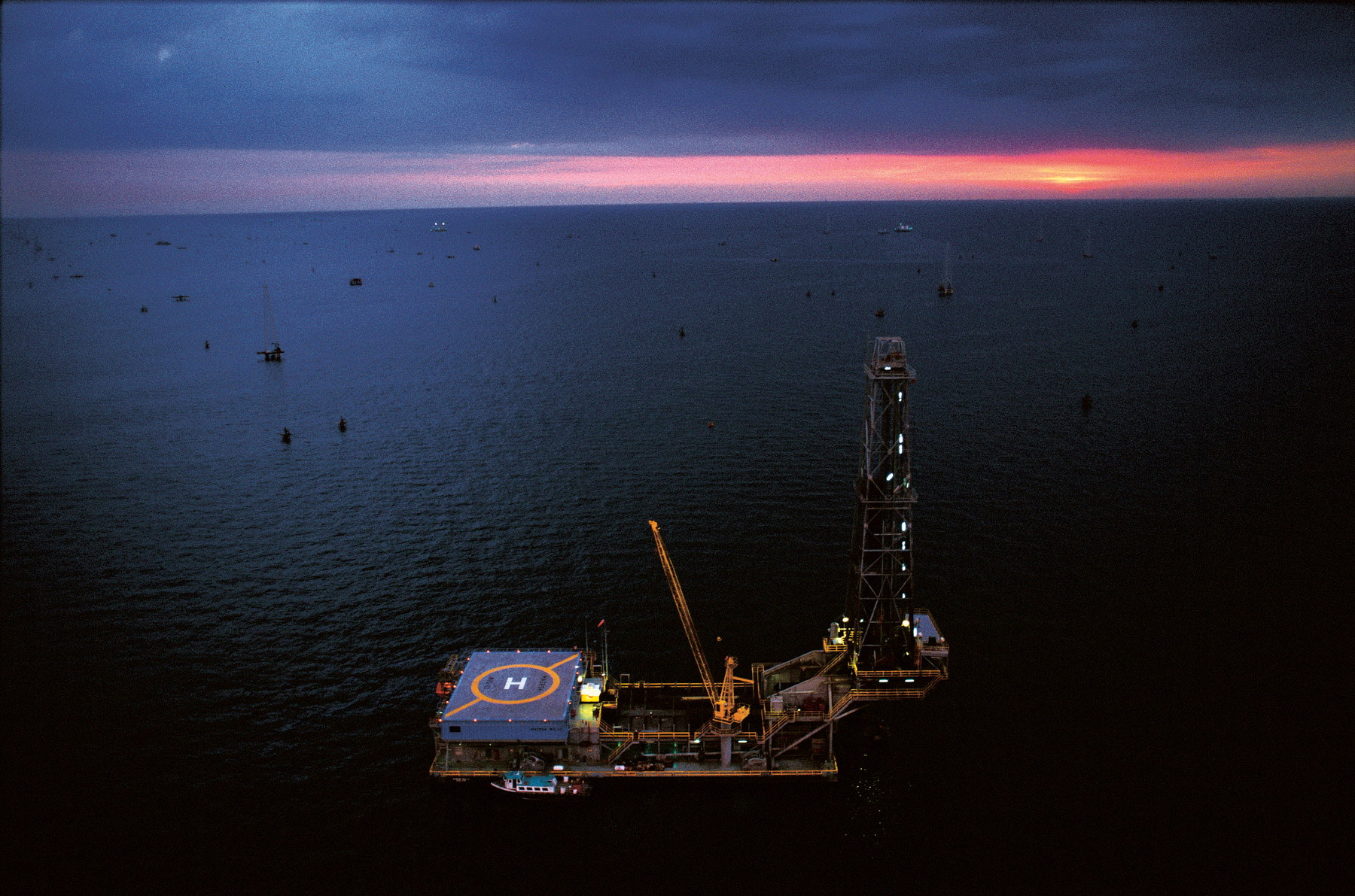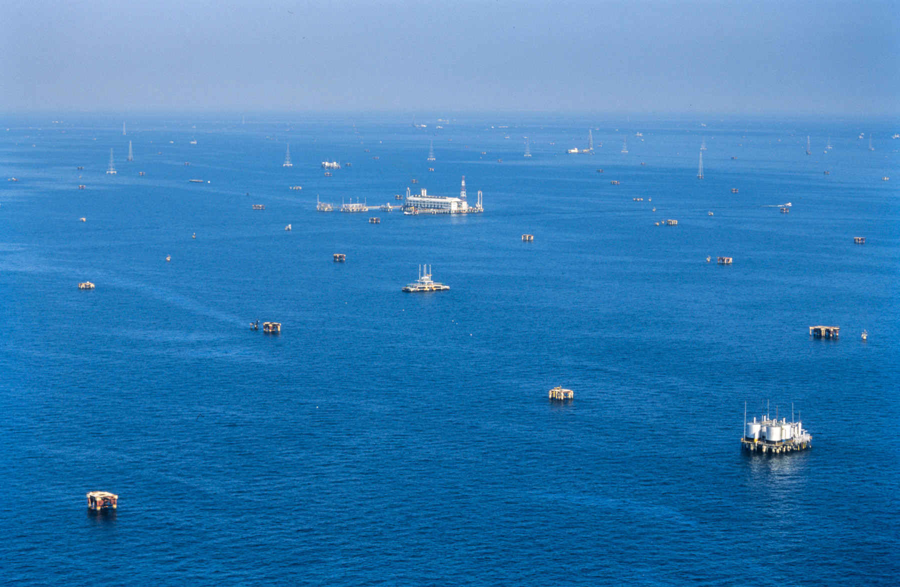 Plate-forme pétrolière sur le lac Maracaibo, Venezuela (9°50' N – 71°37' O).