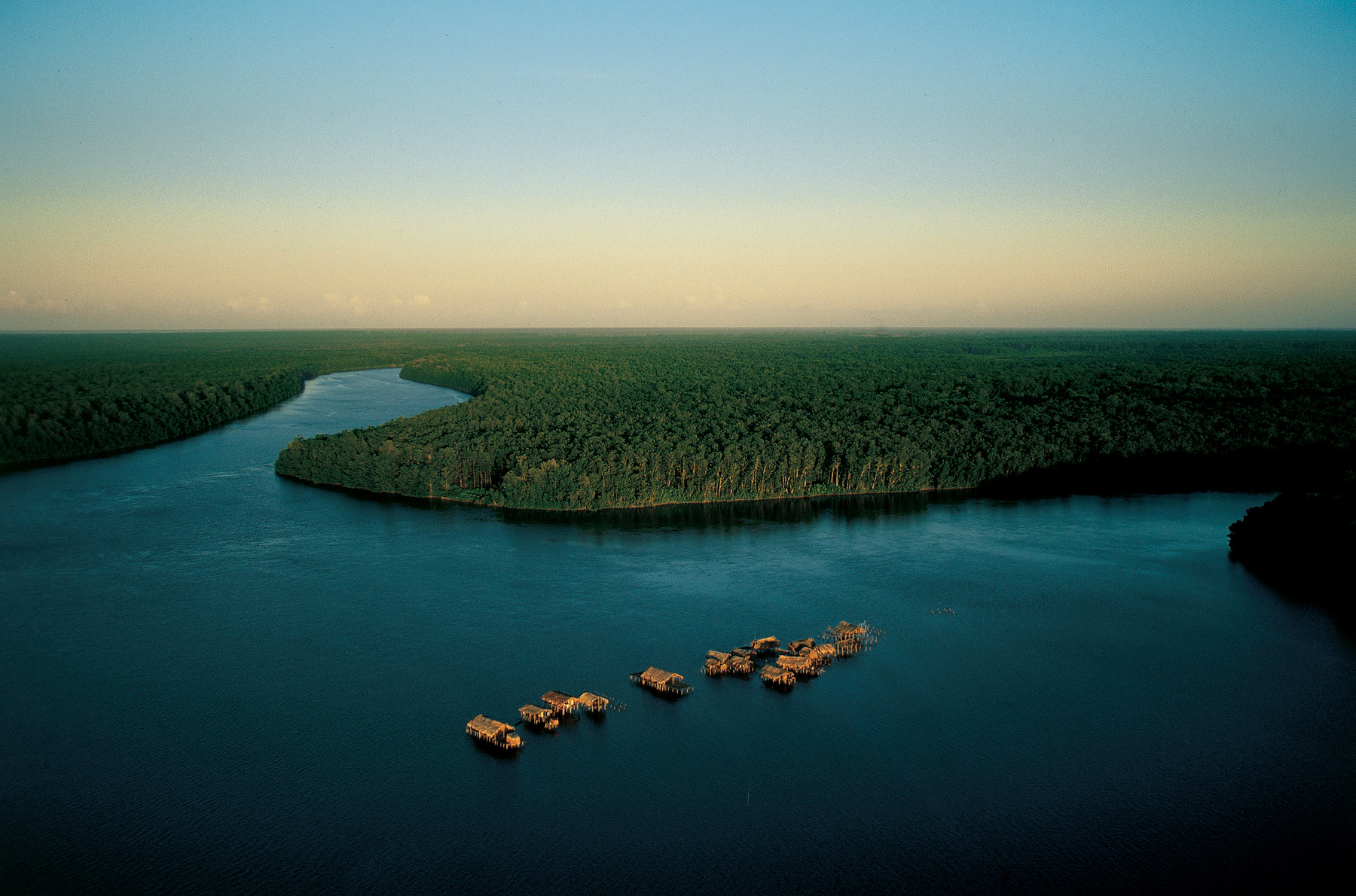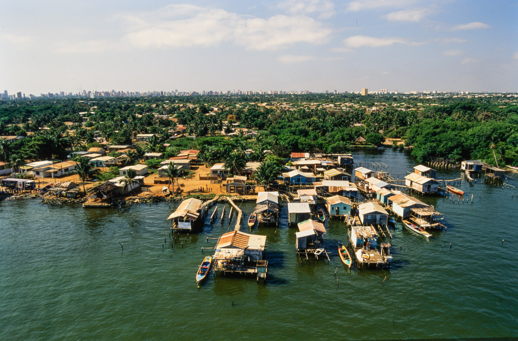 Houses on stilts at Fisherman’s Point, Orinoco Delta, Venezuela (9°50'N, 61°30'W).