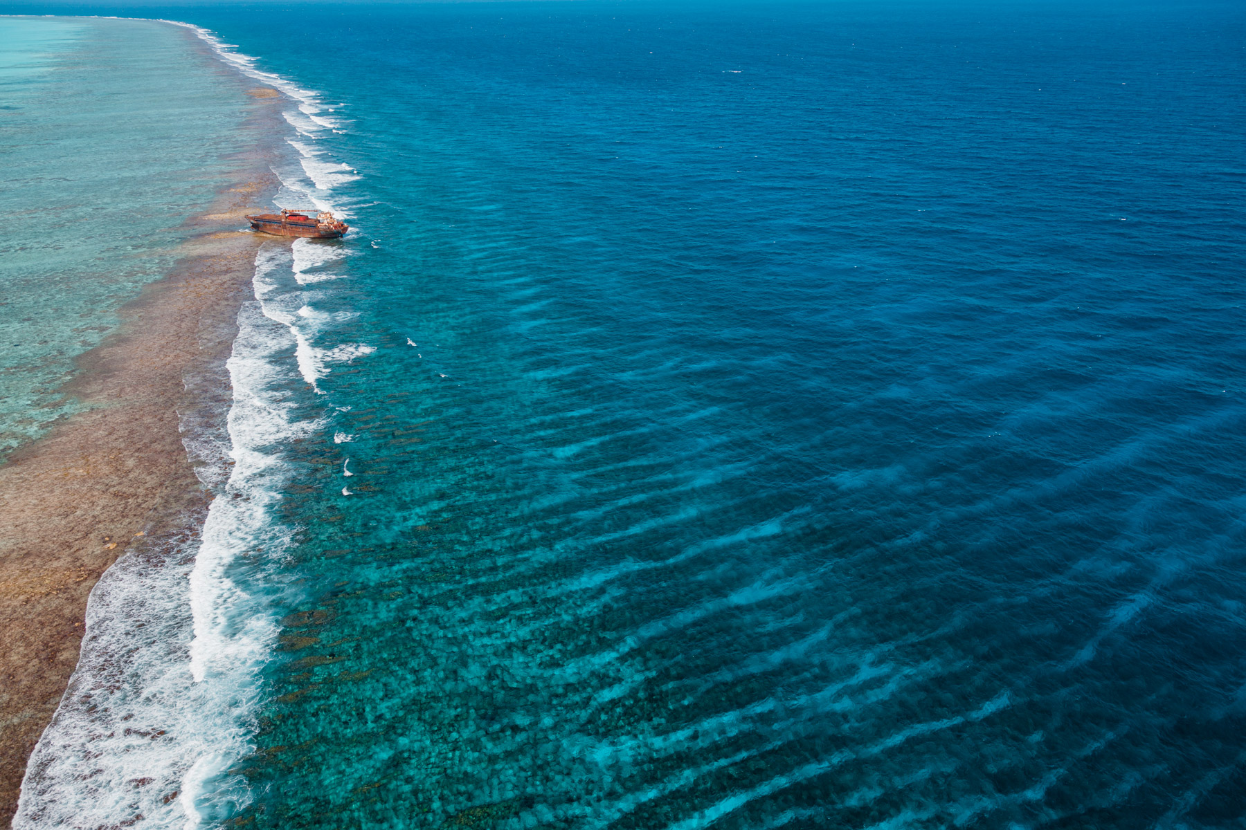 Atoll of Lighthouse Reef: wreck of a boat - Belize District - Belize (17°23'58.22"N - 87°27'41.66"O).