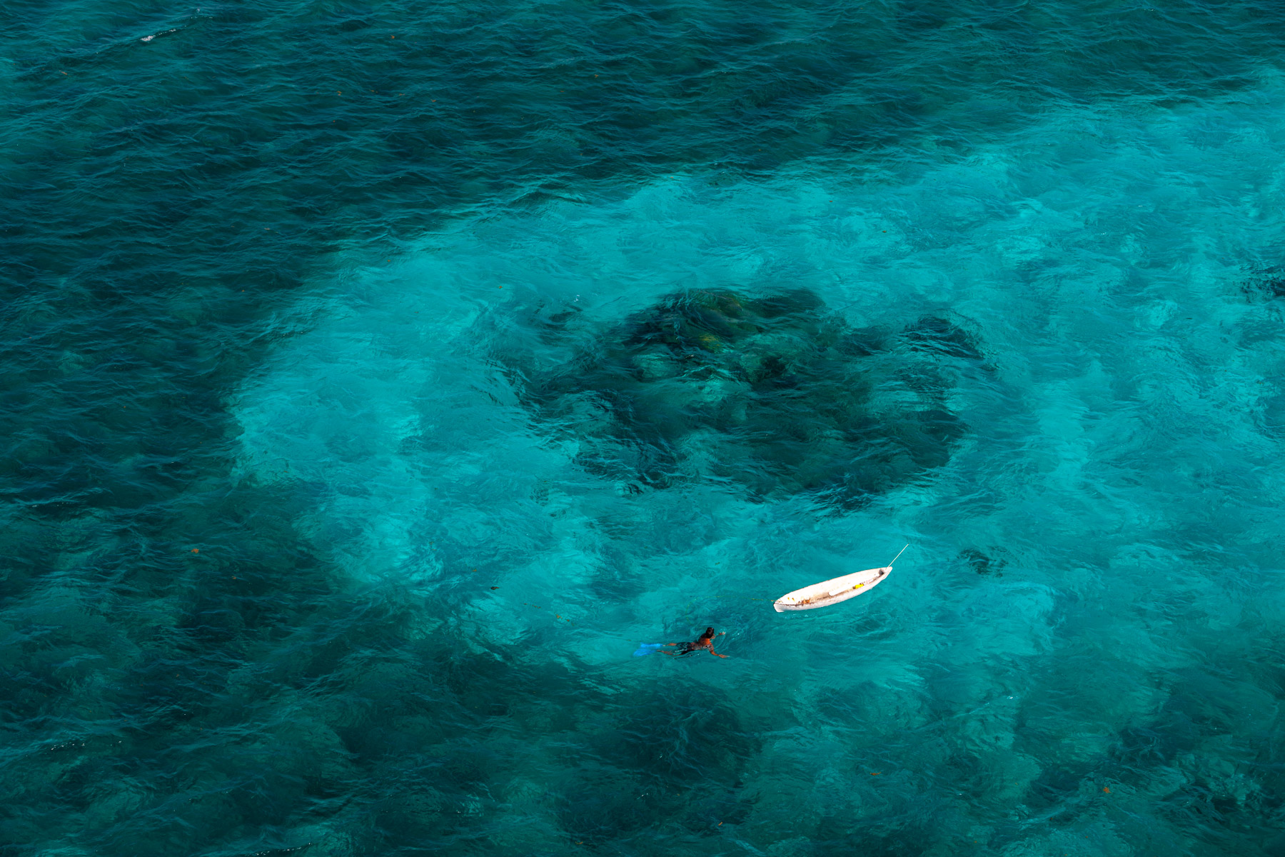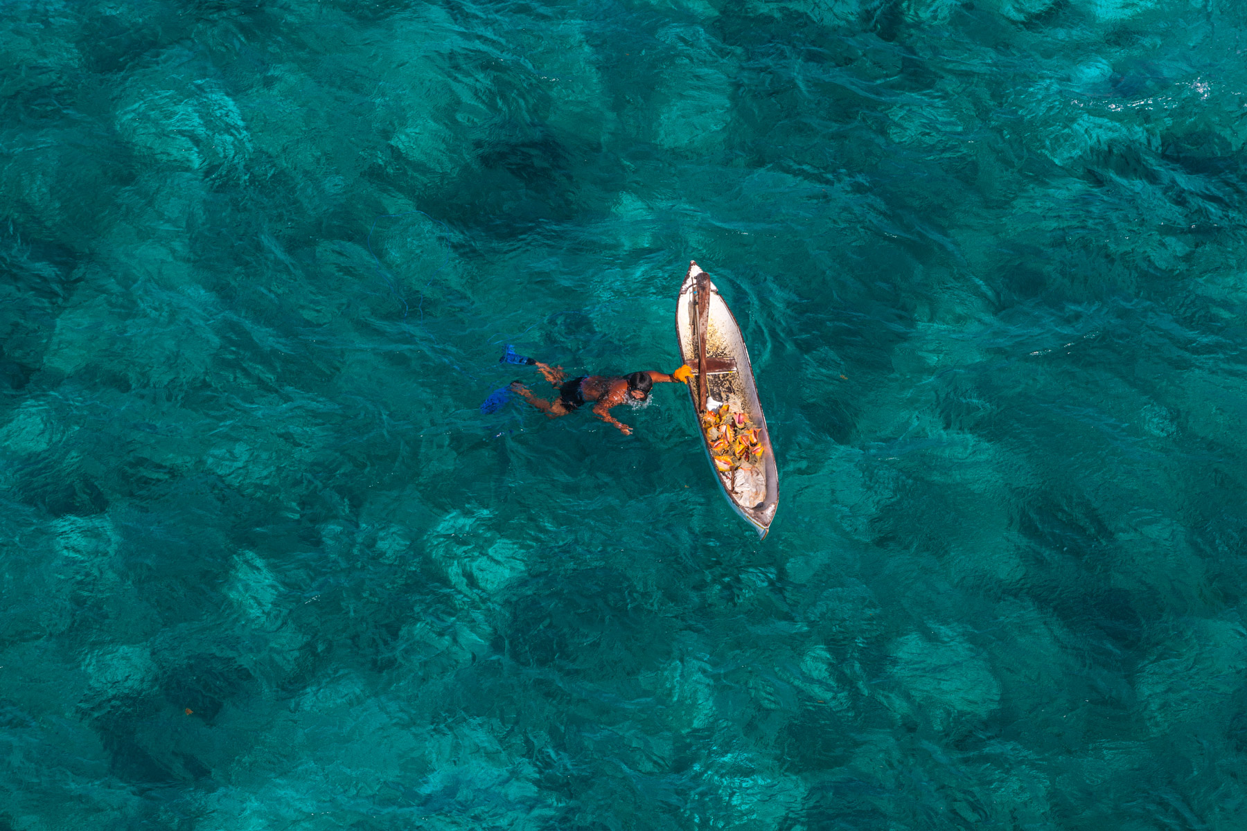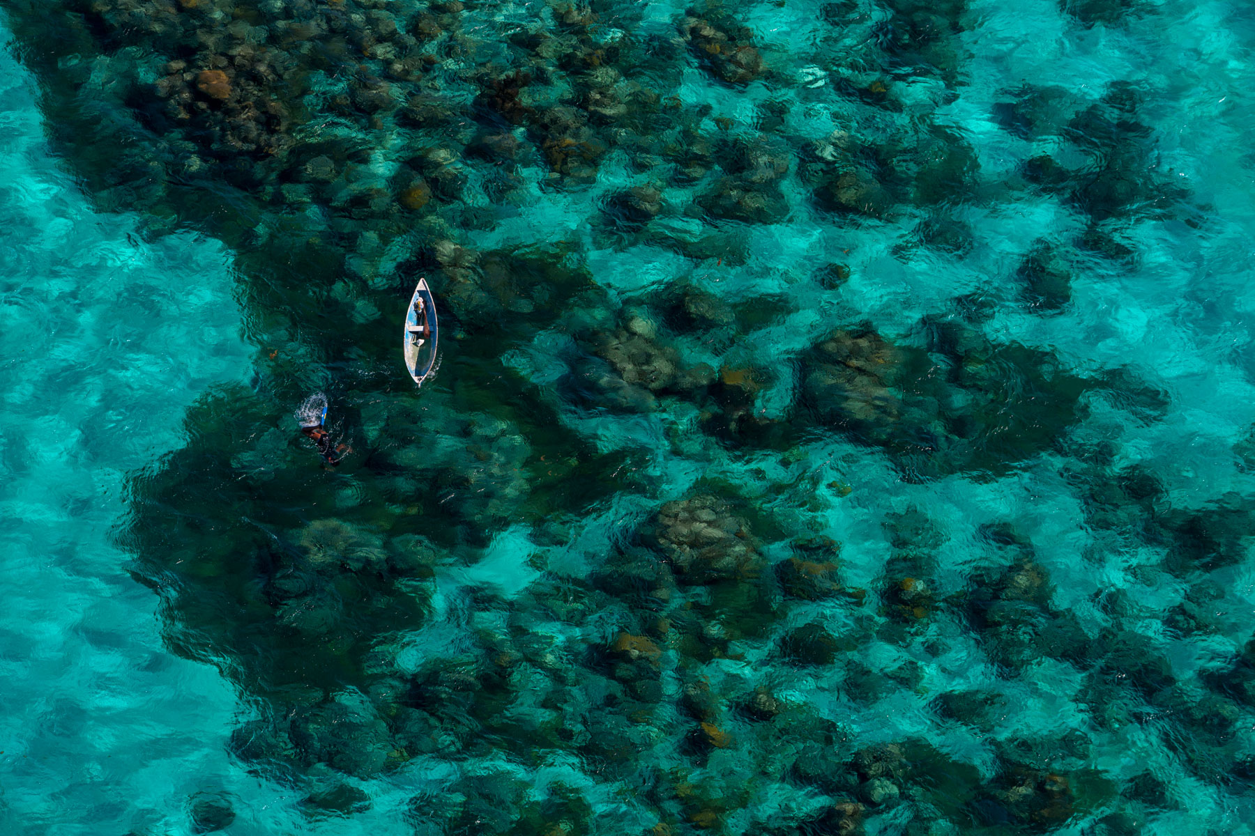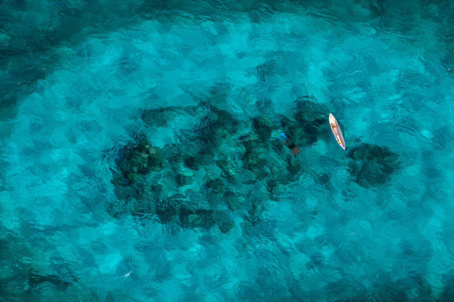 Canoe and snorkeler in the atoll of Lighthouse Reef - Belize District - Belize