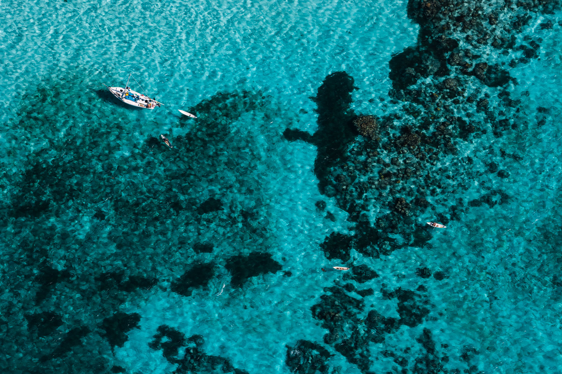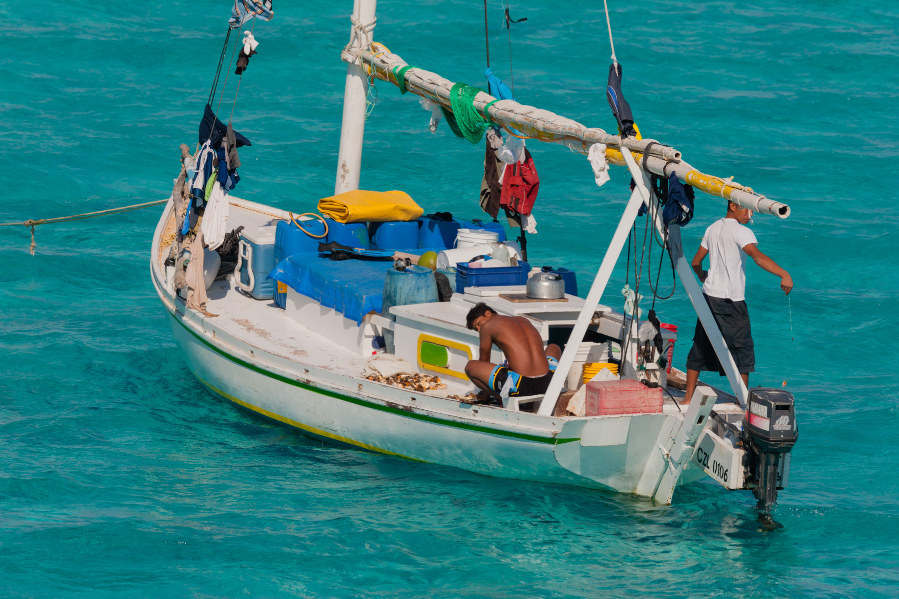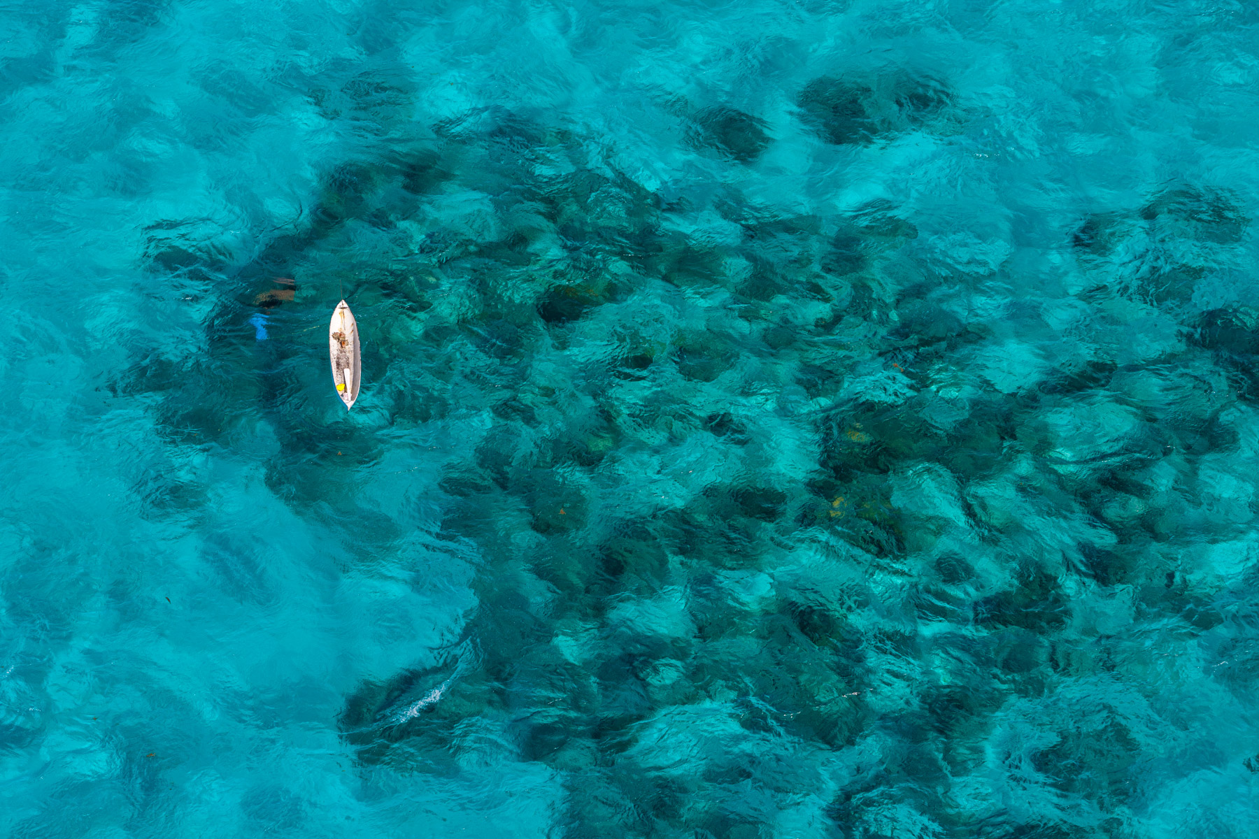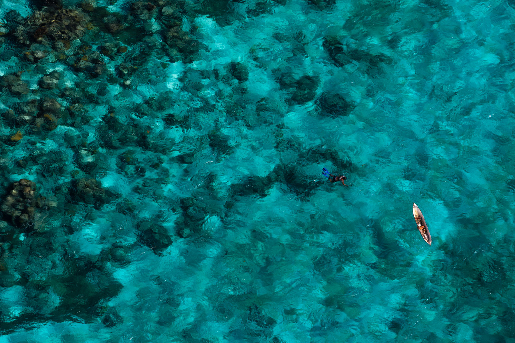 Canoe and snorkeler in the atoll of Lighthouse Reef - Belize District - Belize