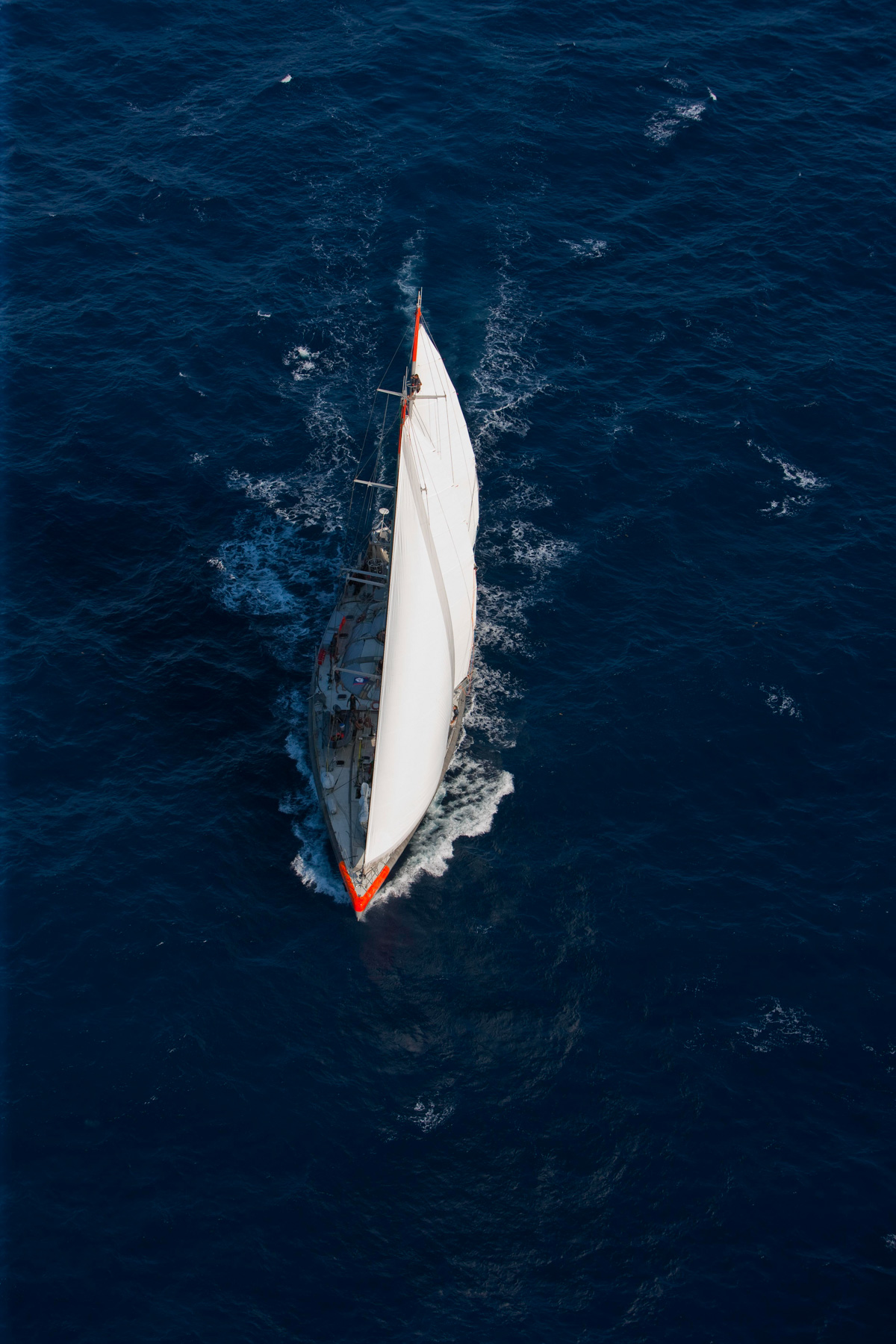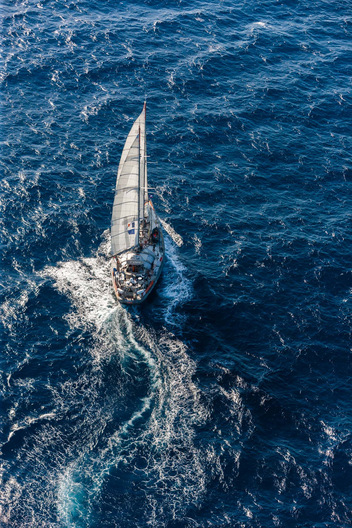Sailboat off the atoll of Lighthouse Reef, District of Belize, Belize
