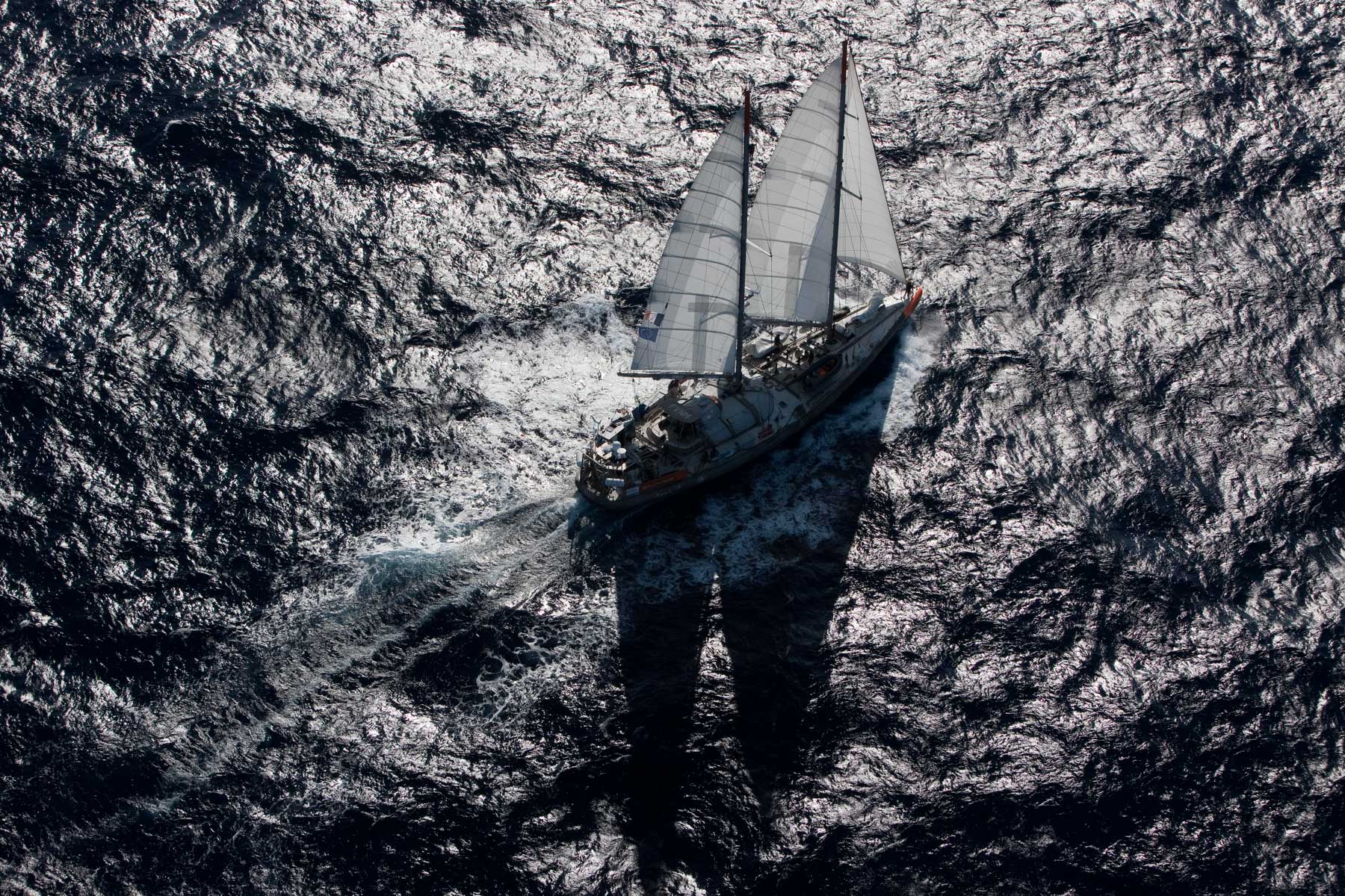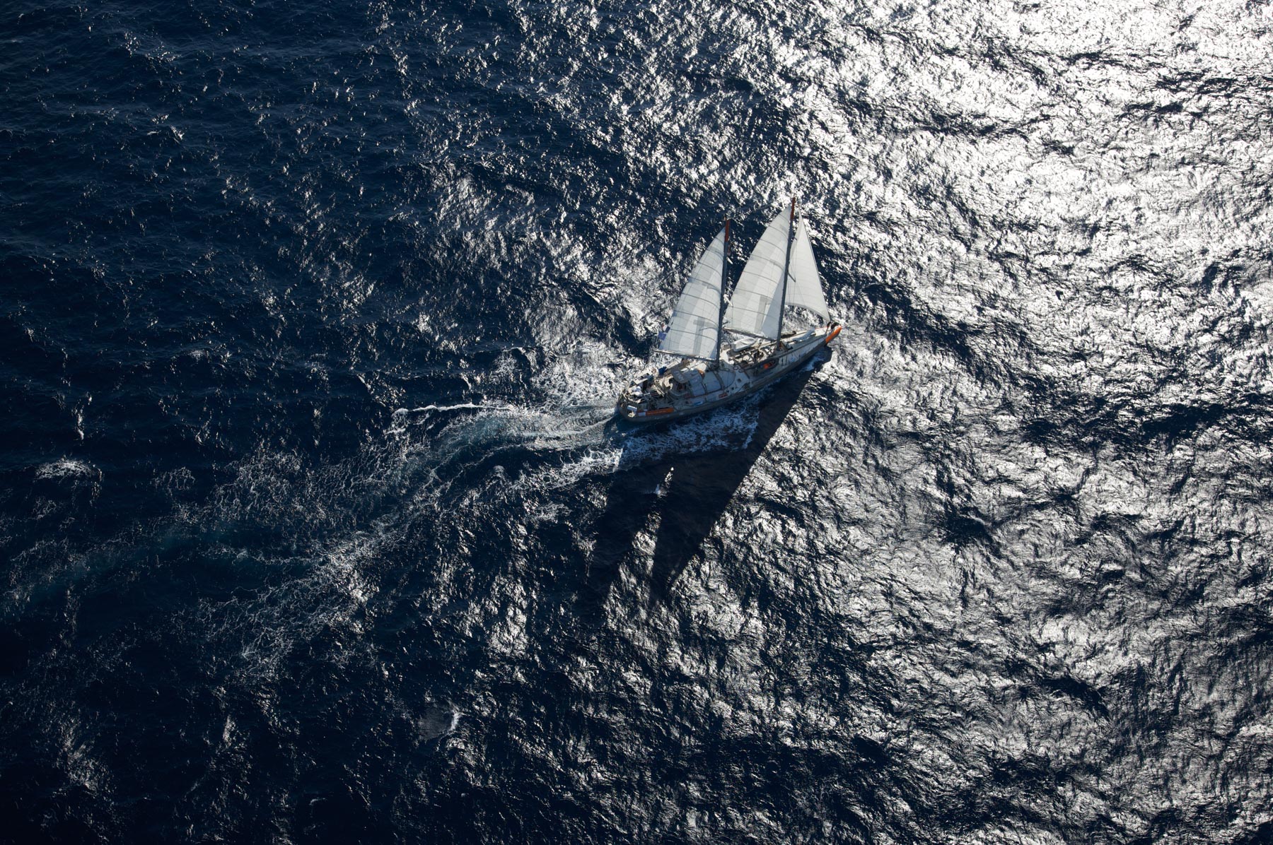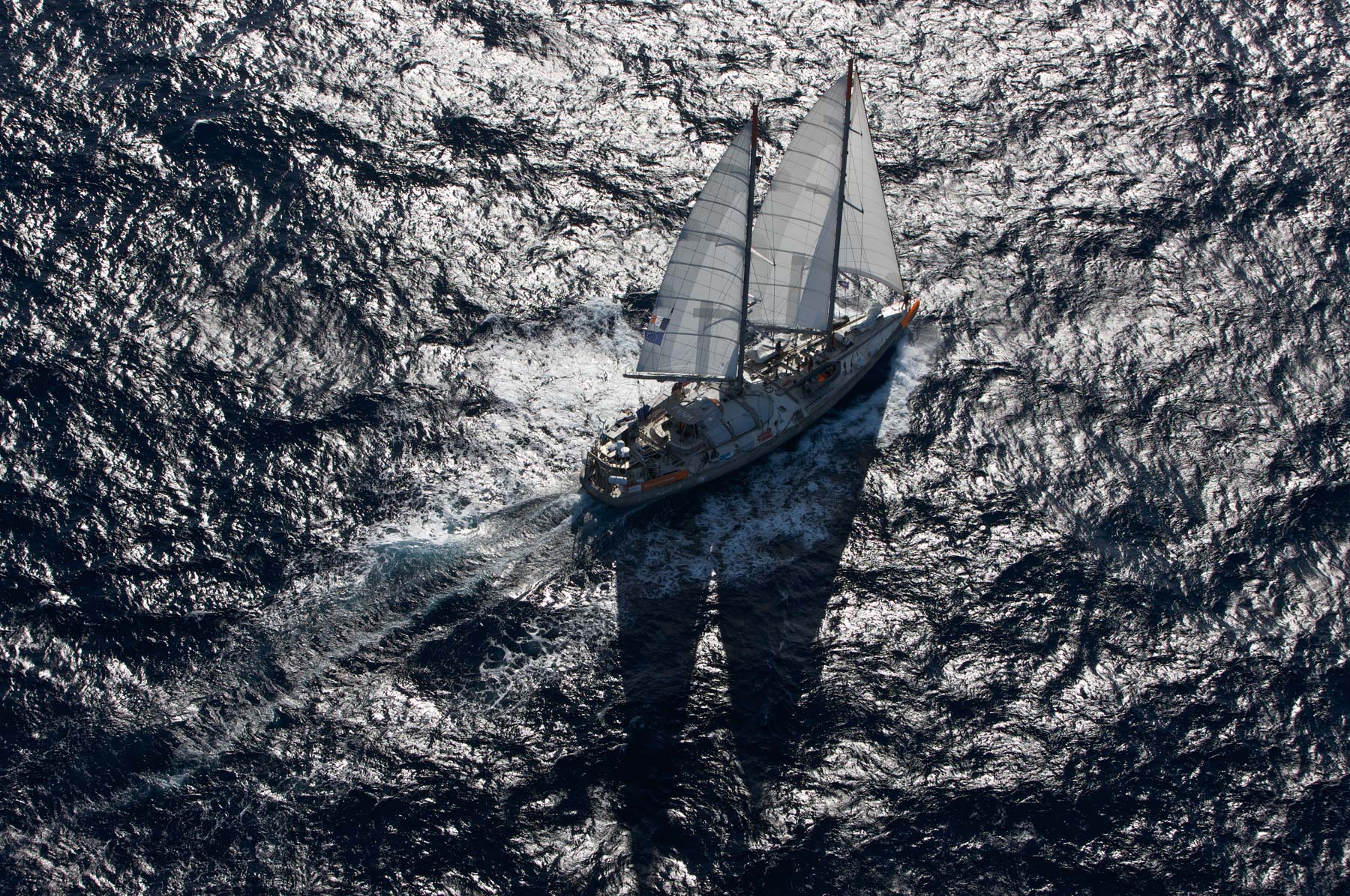 Sailboat (Schooner Tara- Tara Expeditions) off the atoll of Lighthouse Reef - Belize District - Belize
