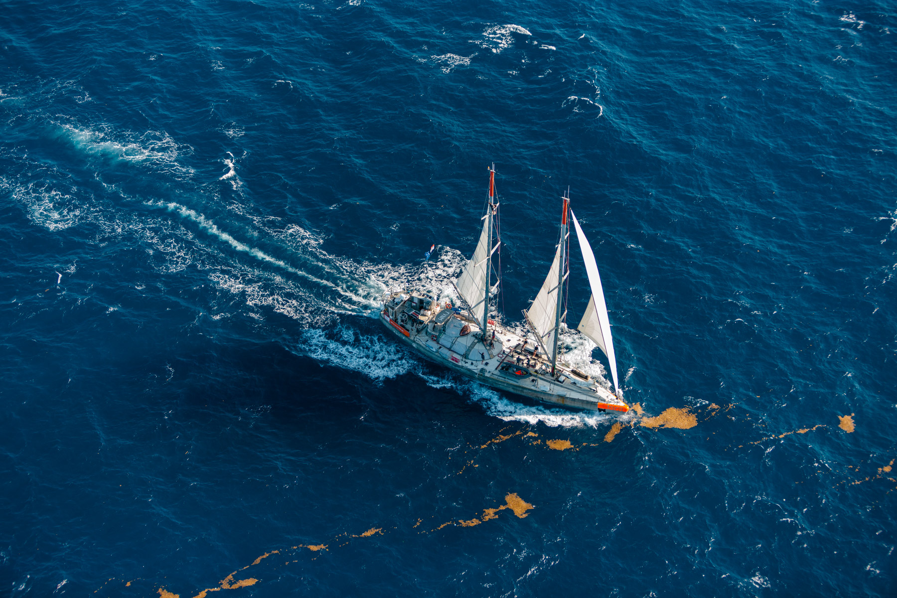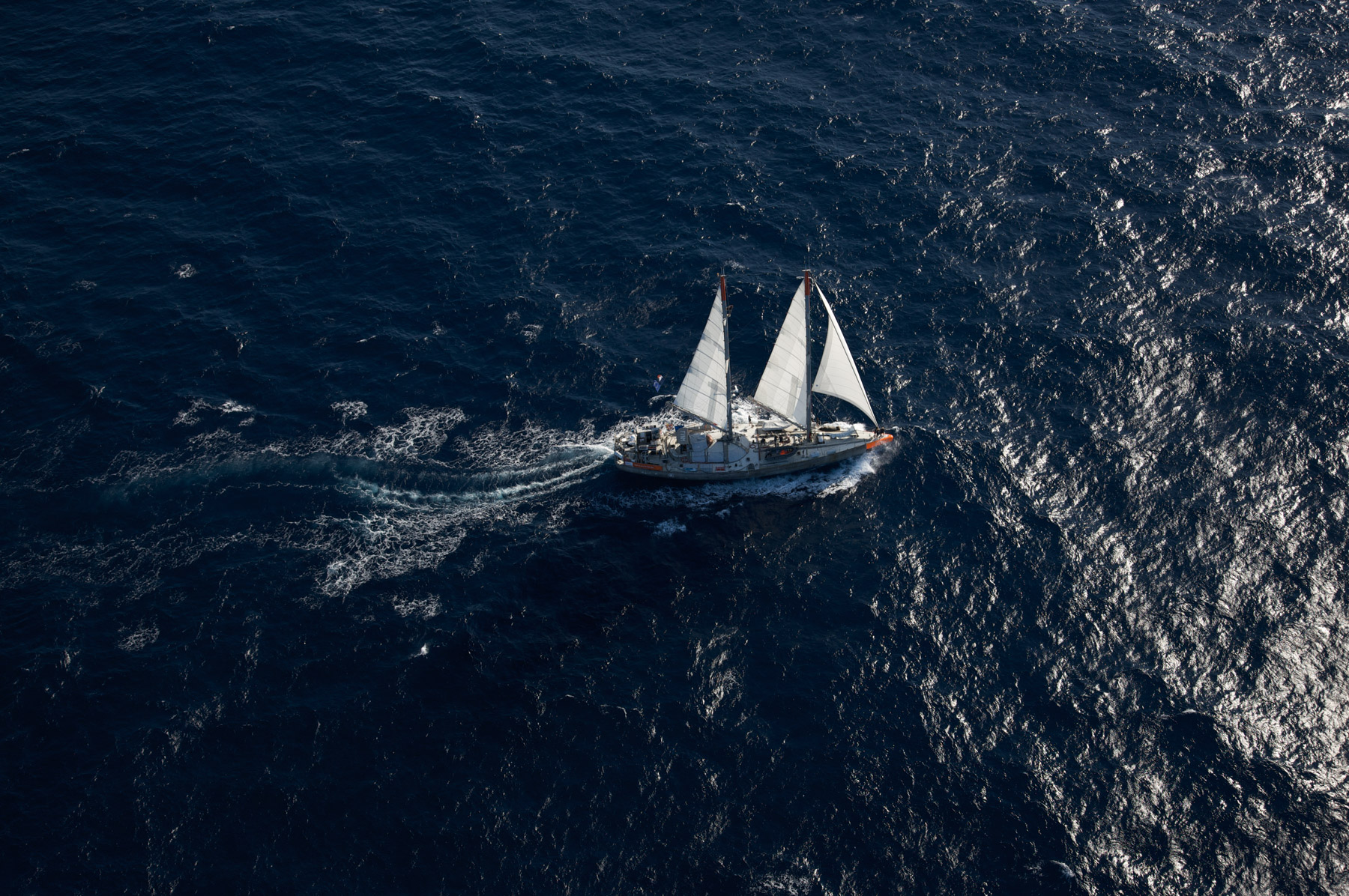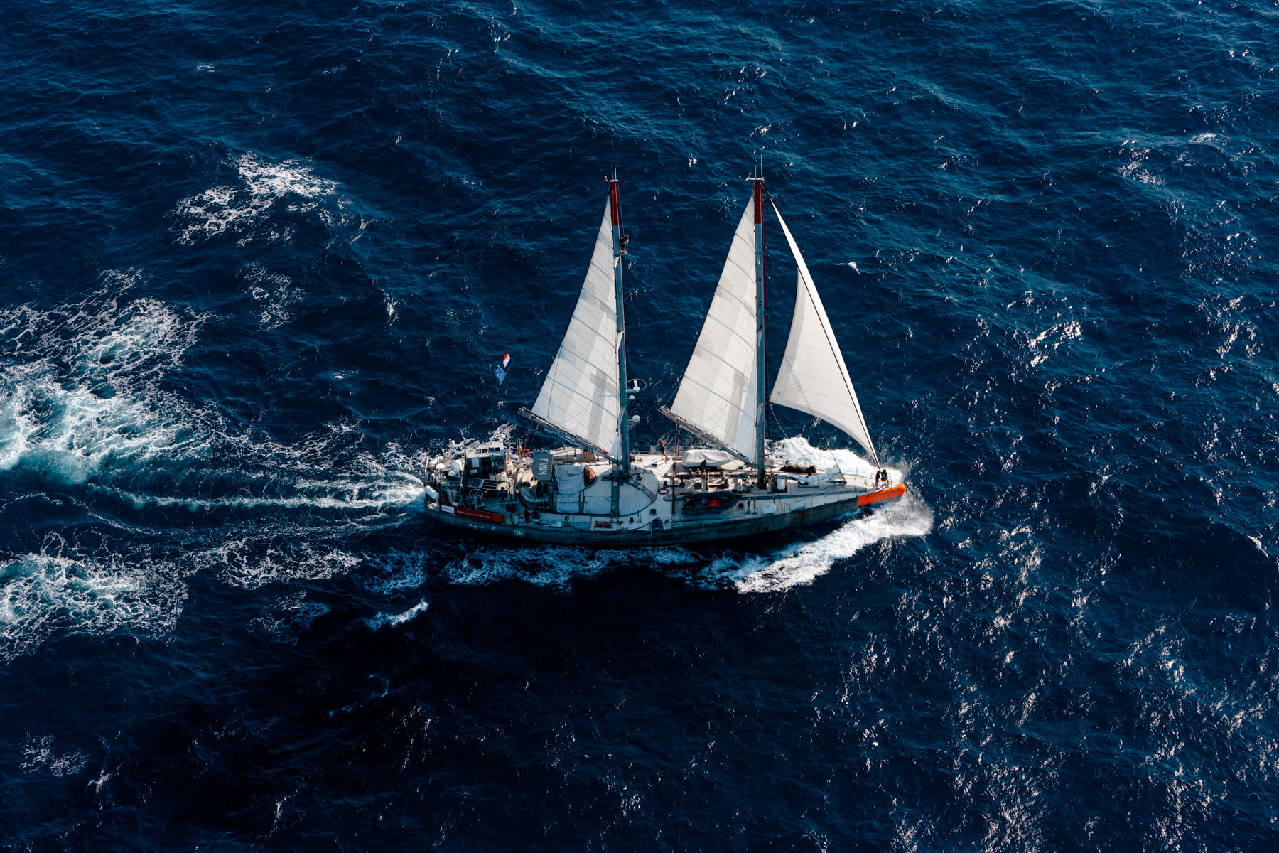 Sailboat (Schooner Tara- Tara Expeditions) off the atoll of Lighthouse Reef - Belize District - Belize