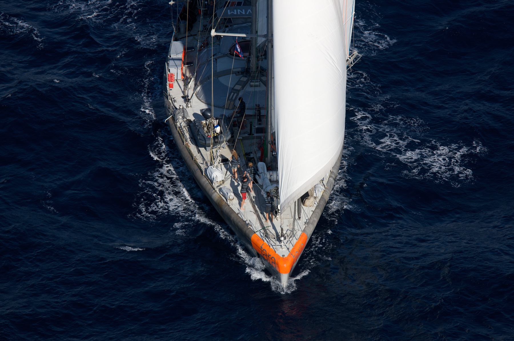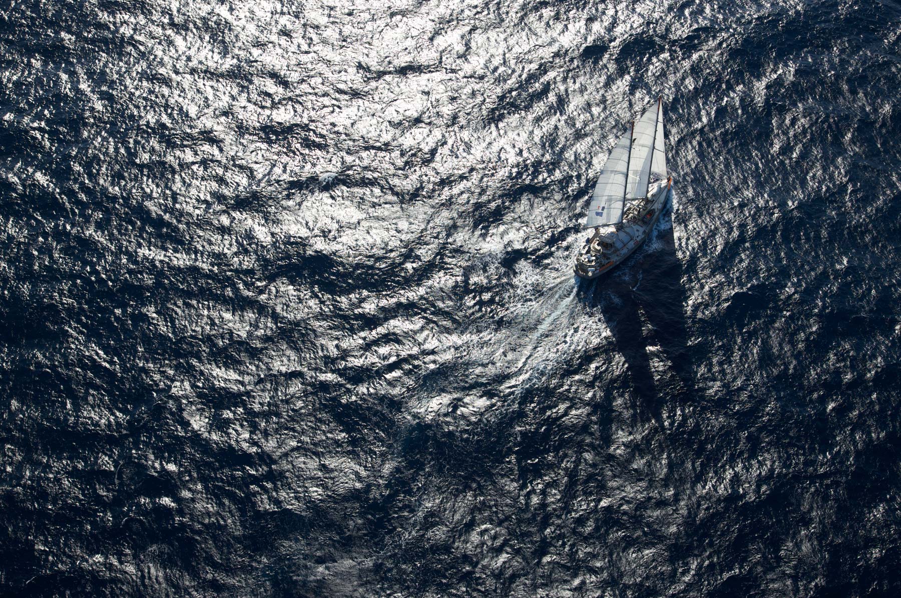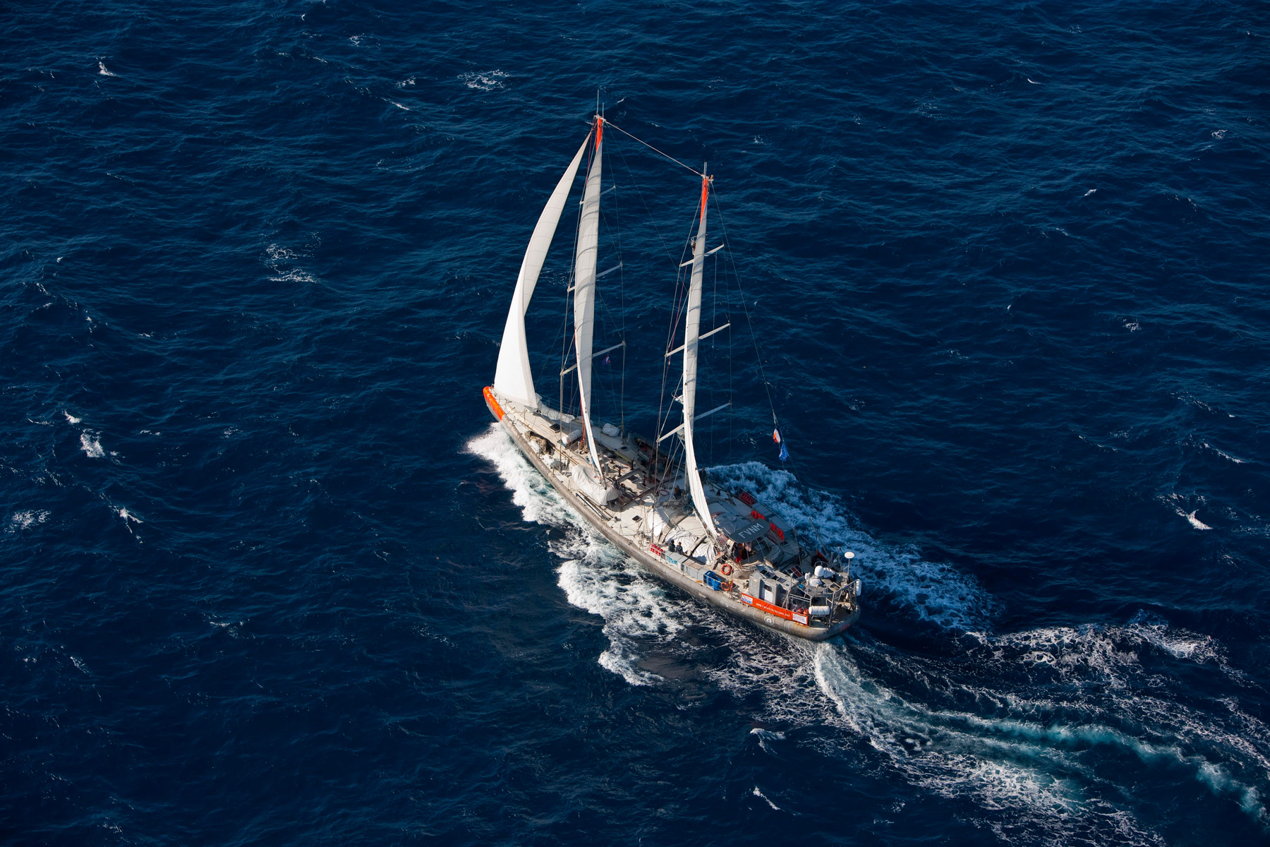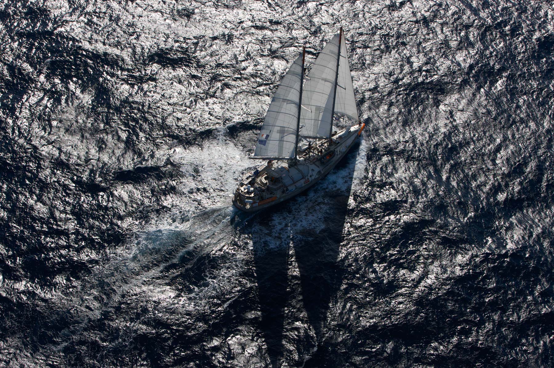 Sailboat (Schooner Tara- Tara Expeditions) off the atoll of Lighthouse Reef - Belize District - Belize (17° 4'3.73"N - 86°57'48.32"O)