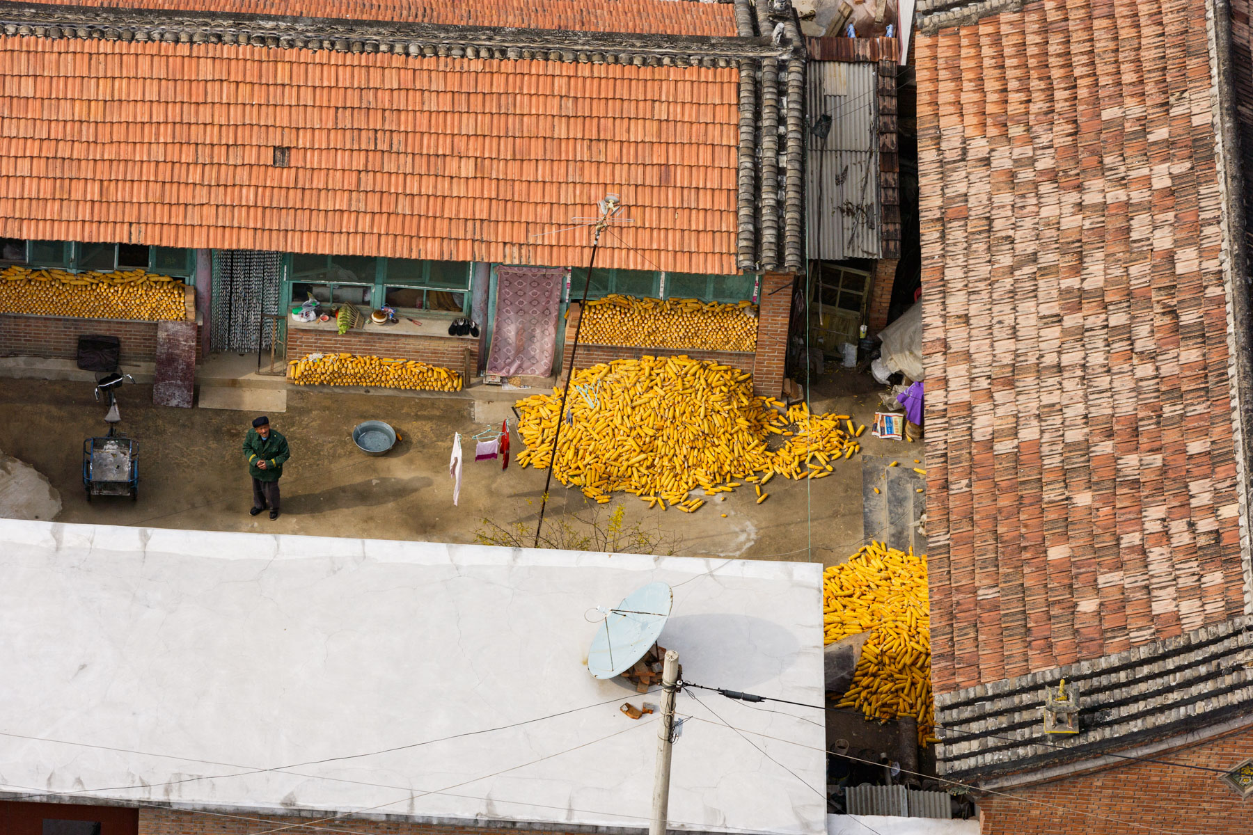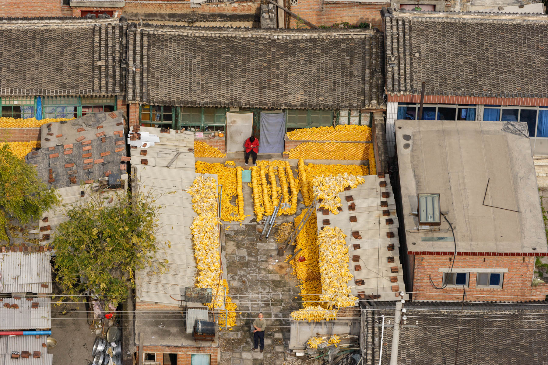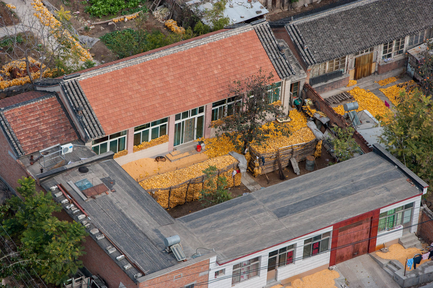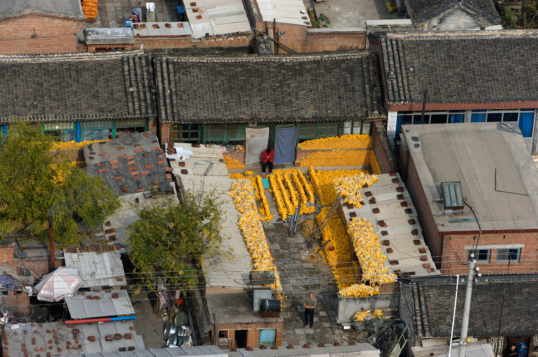 Drying corn in courtyards, Beijing suburb, People’s Republic of China