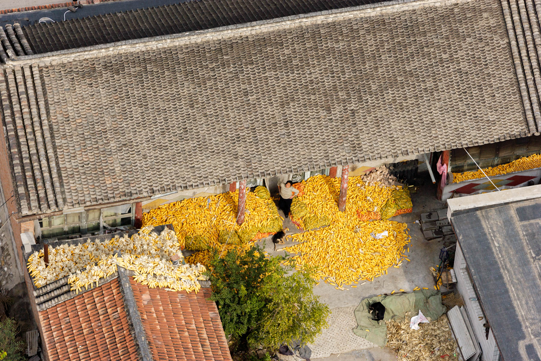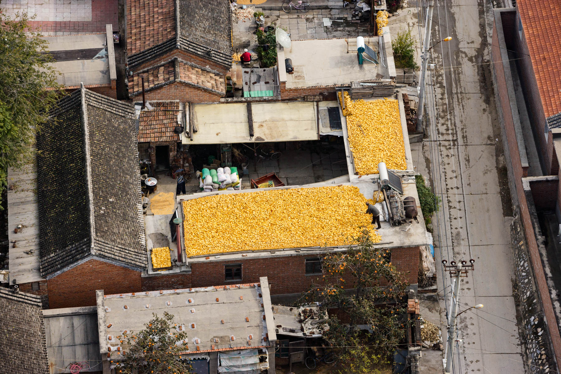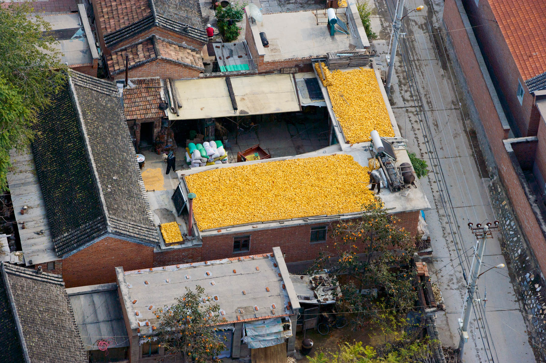 Drying corn in courtyards, Beijing suburb, People’s Republic of China