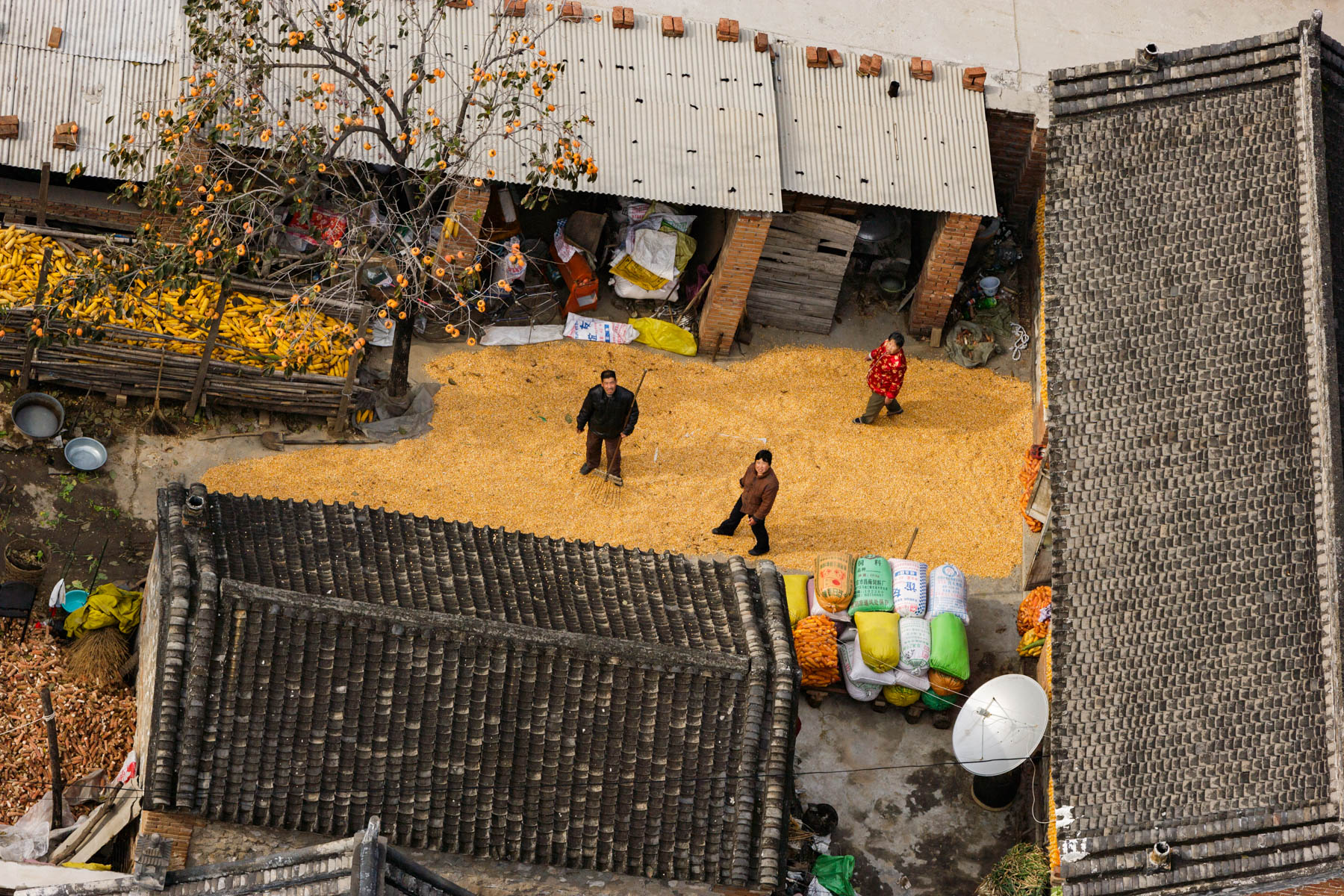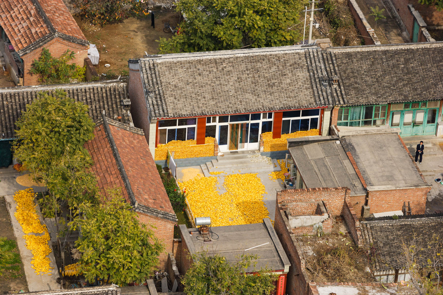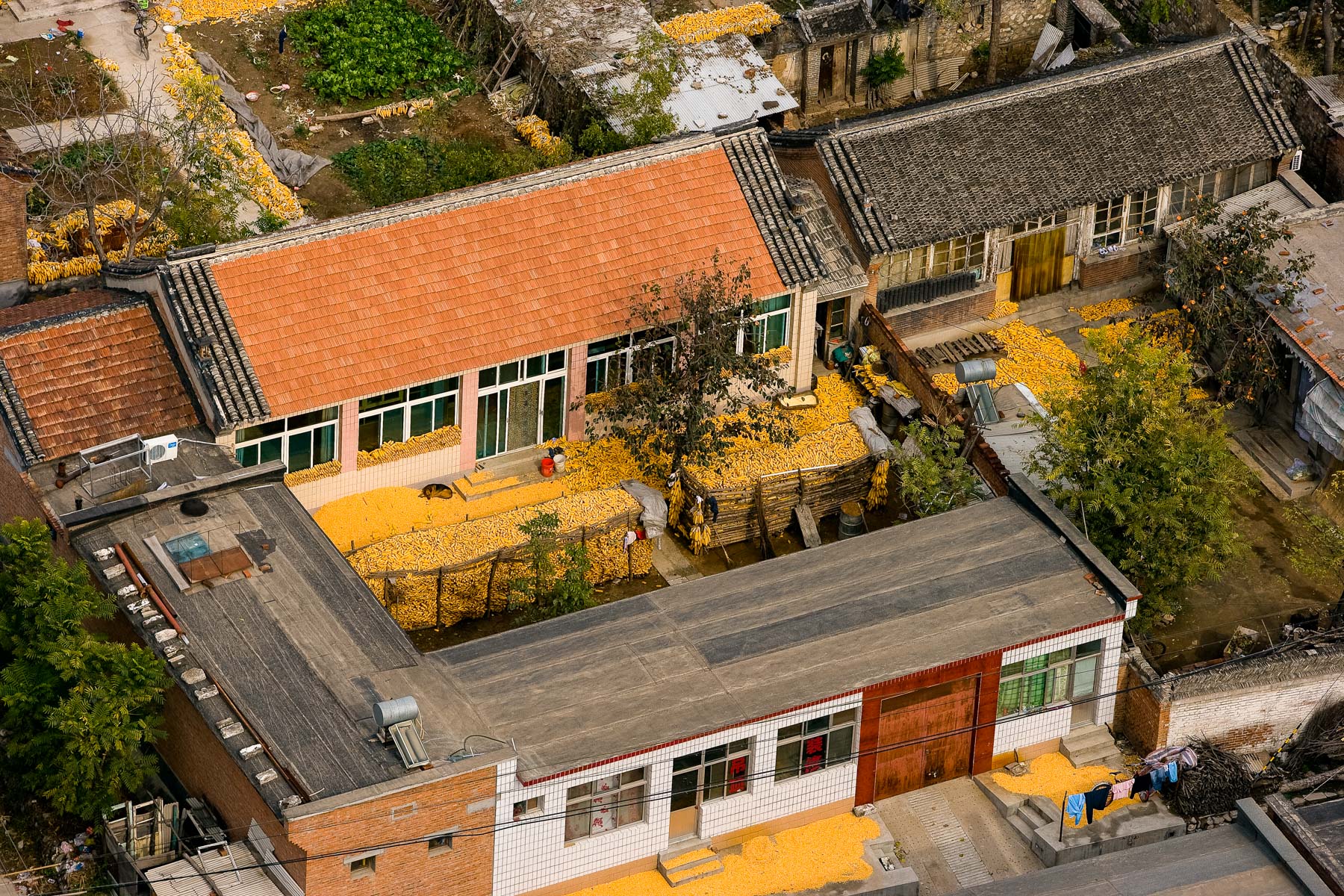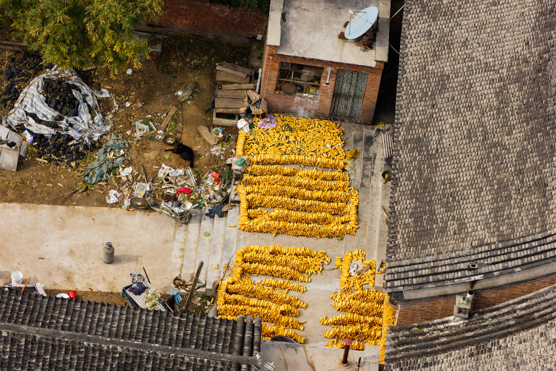 Drying corn in courtyards, Beijing suburb, People’s Republic of China