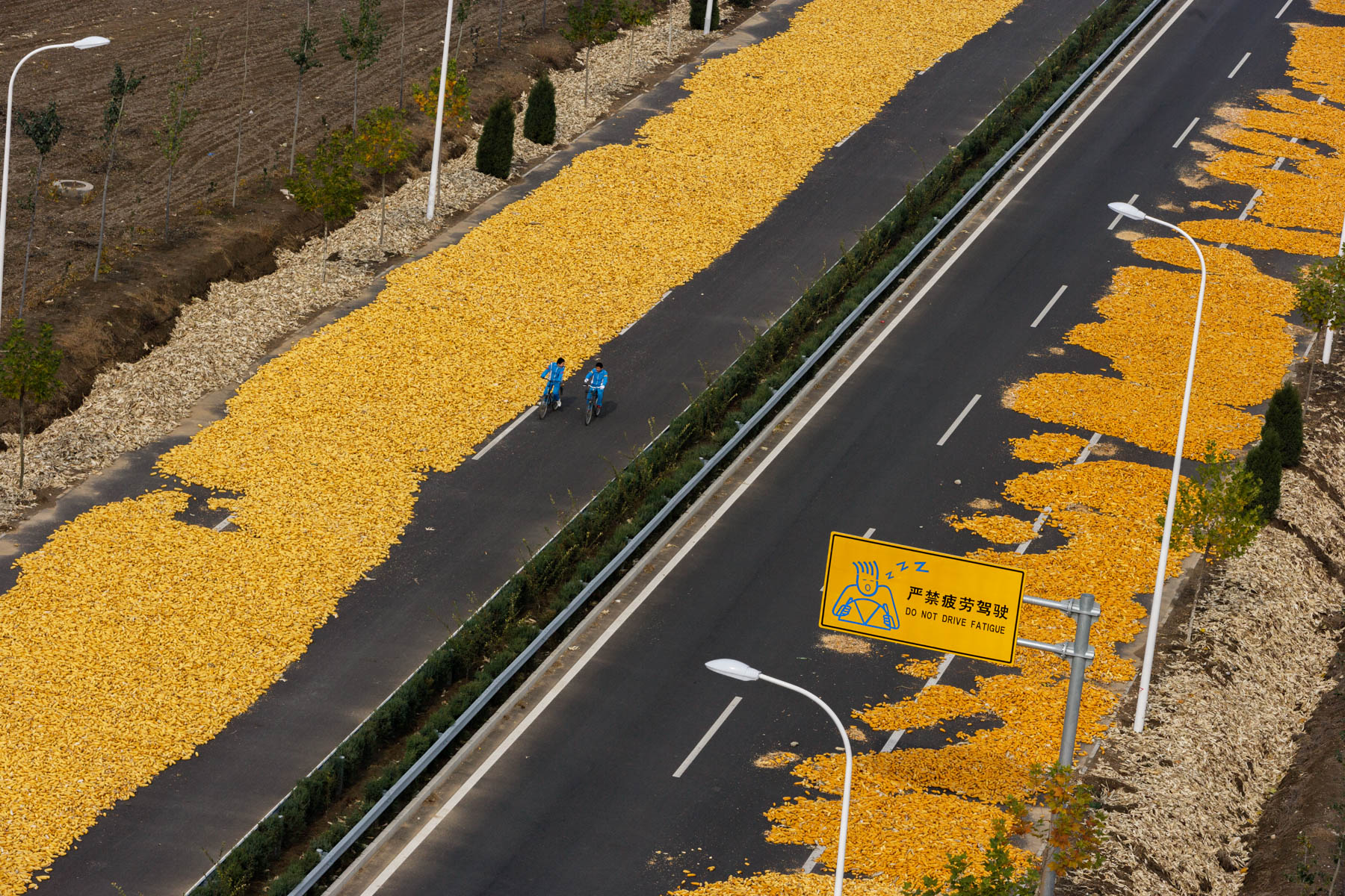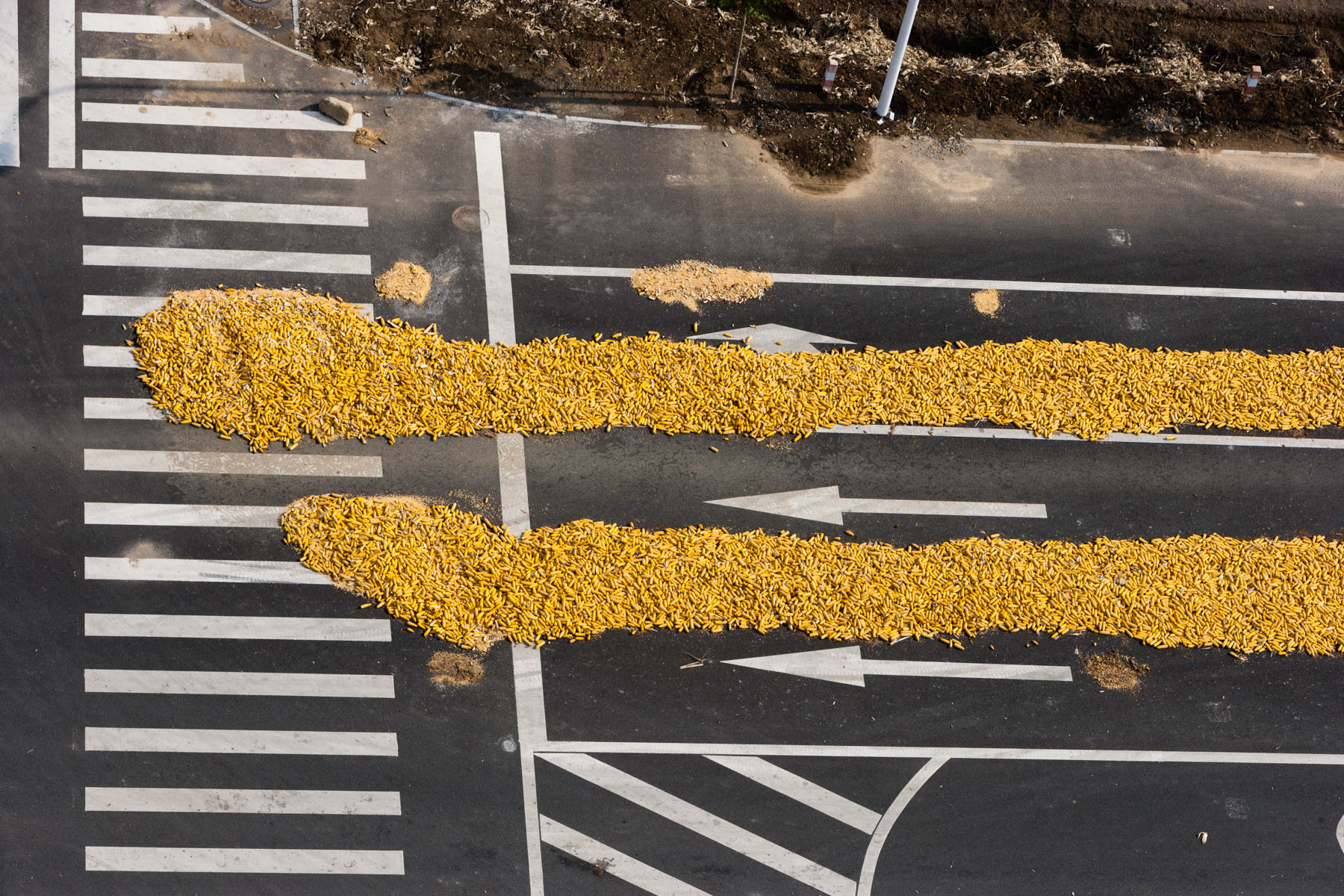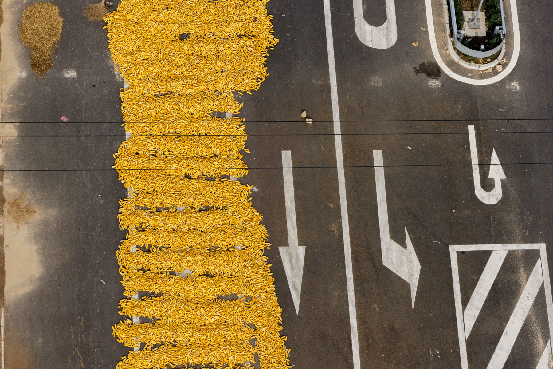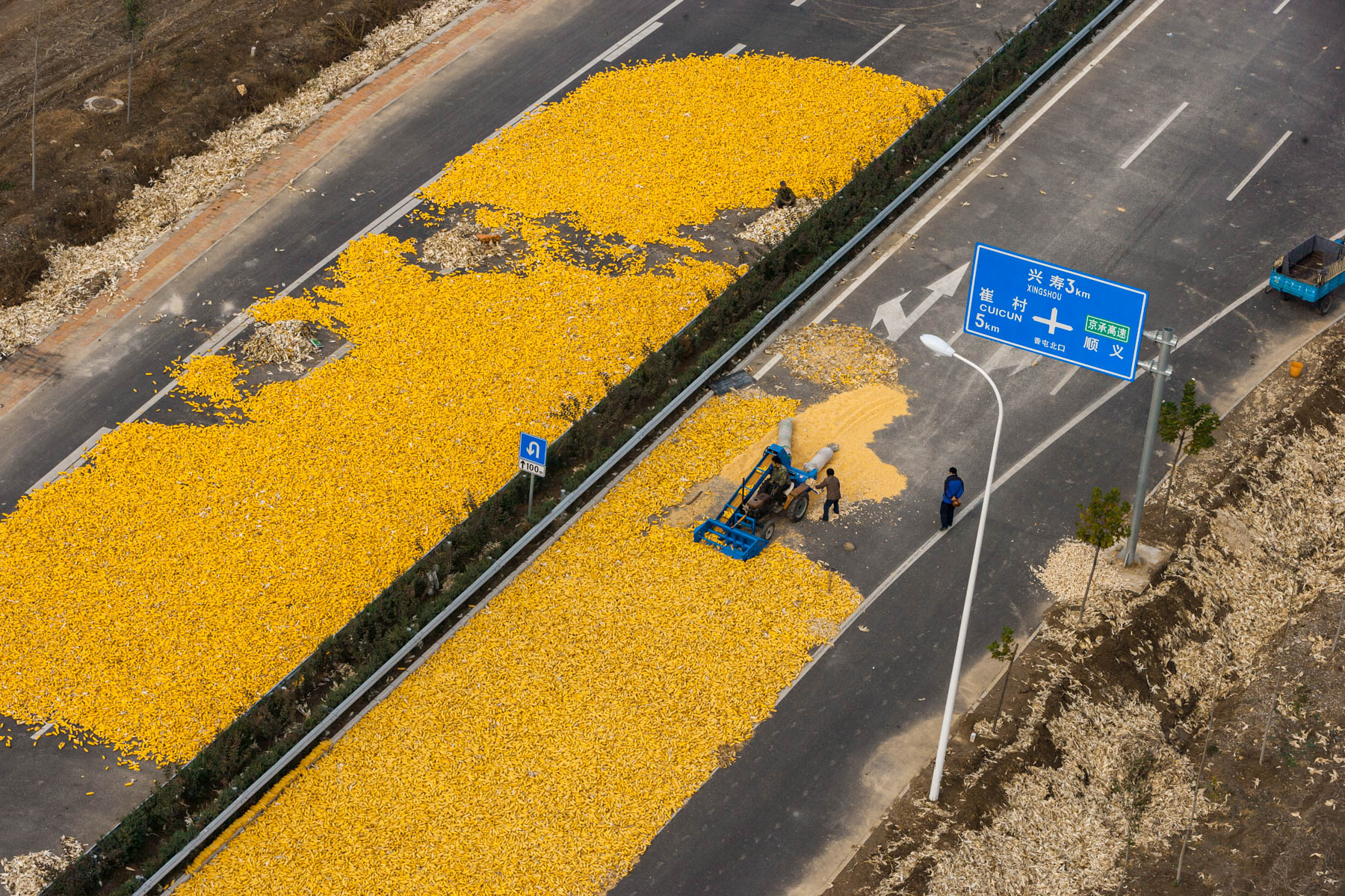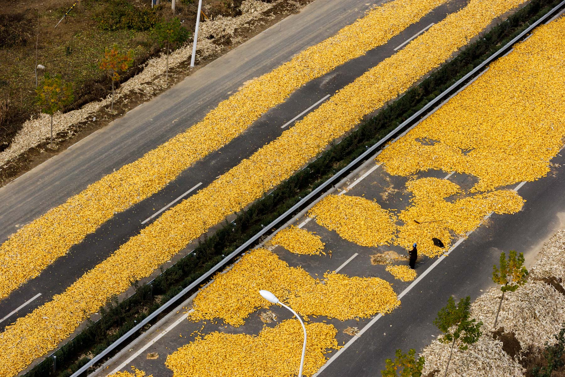 Drying corn on a highway near Cuicun, Beijing region, People’s Republic of China