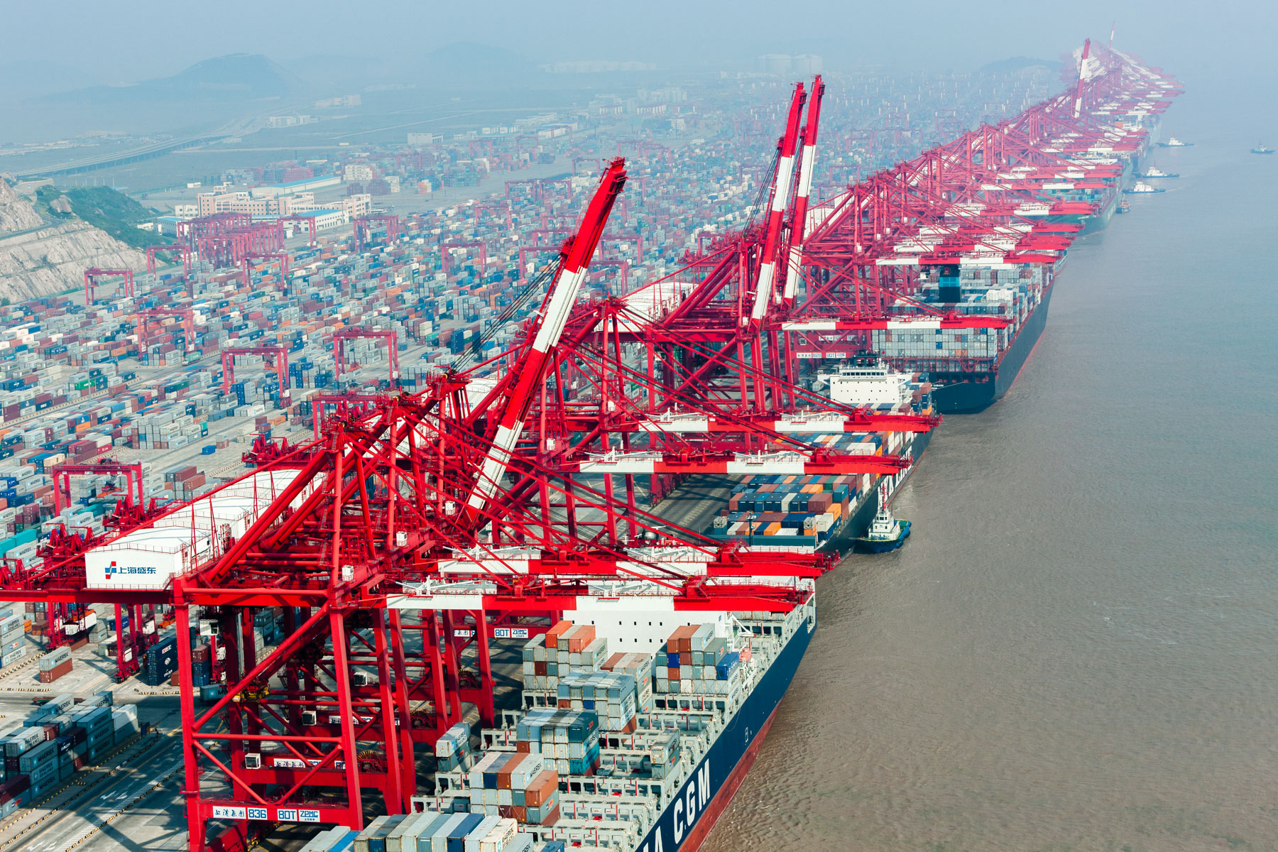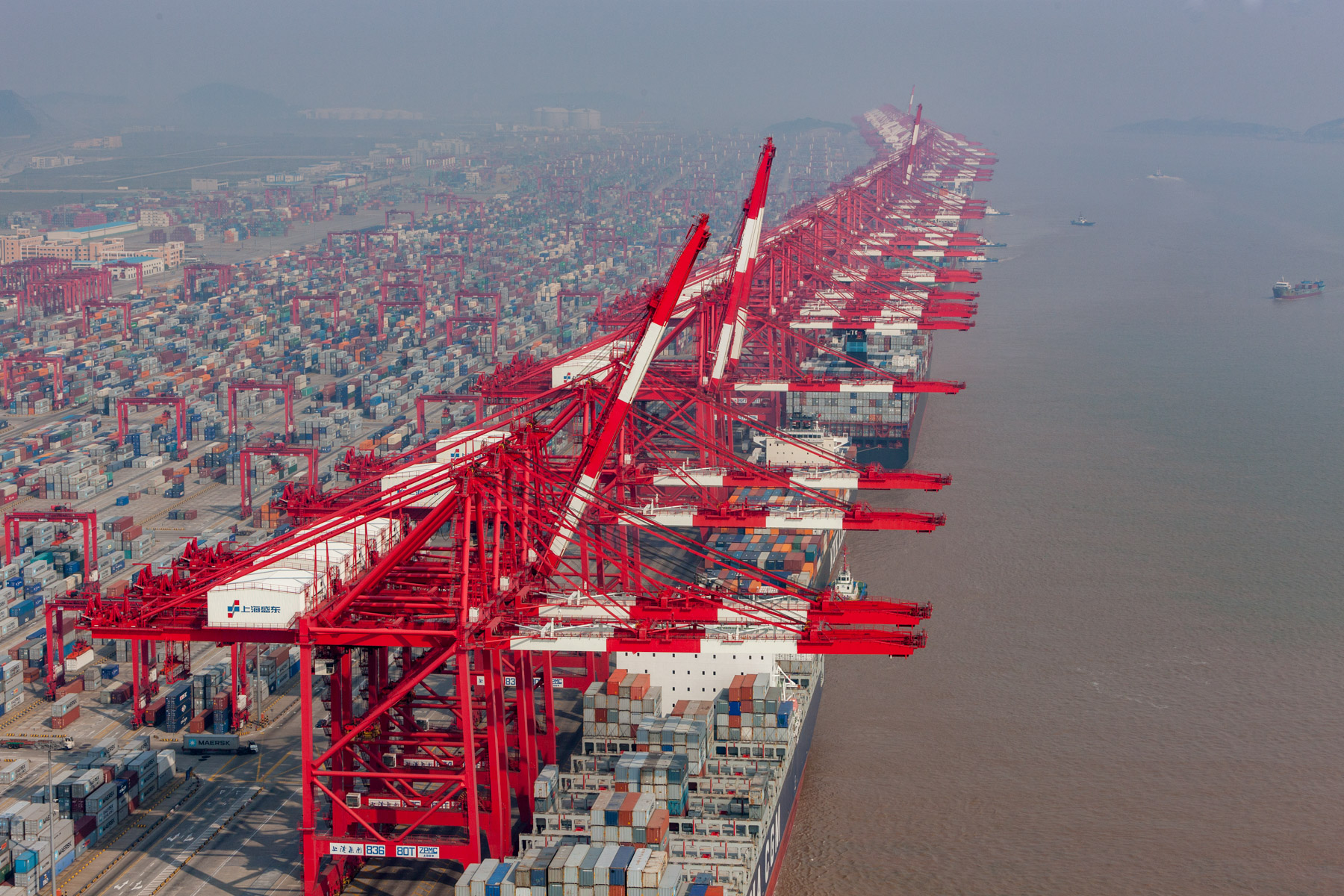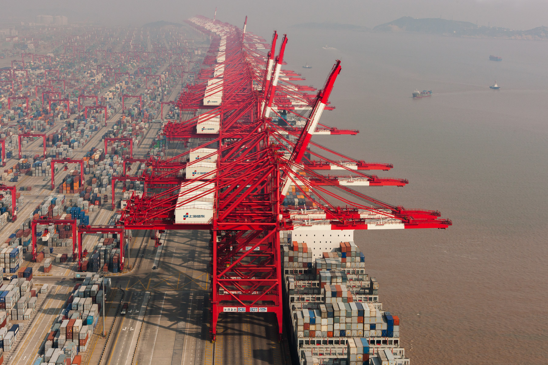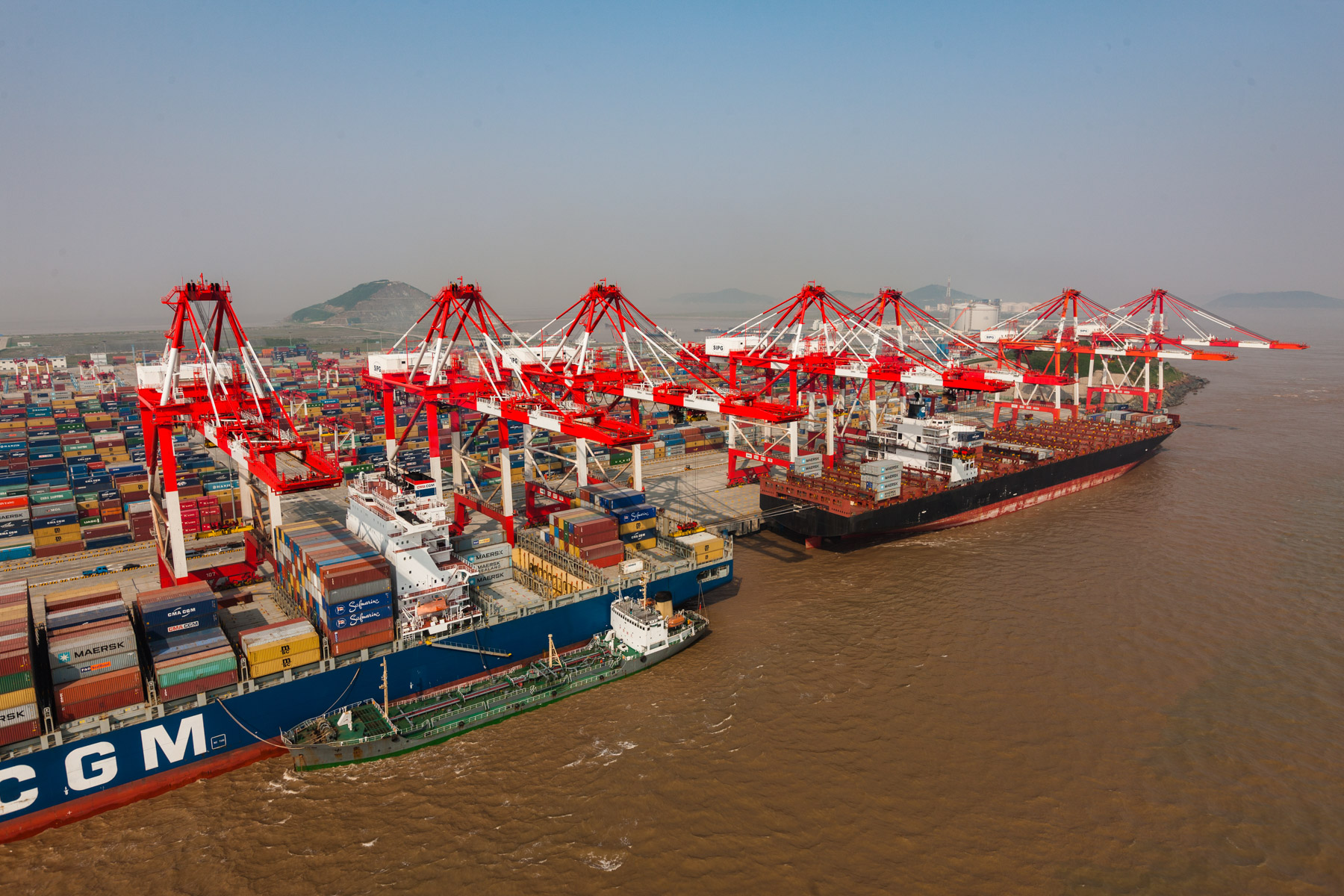 Port de Yangshan (le plus important du monde en eau profonde), îles Yangshan, baie de Hangzhou, Shanghai, Chine ( 30°38'3.98"N - 122° 2'49.03"E)