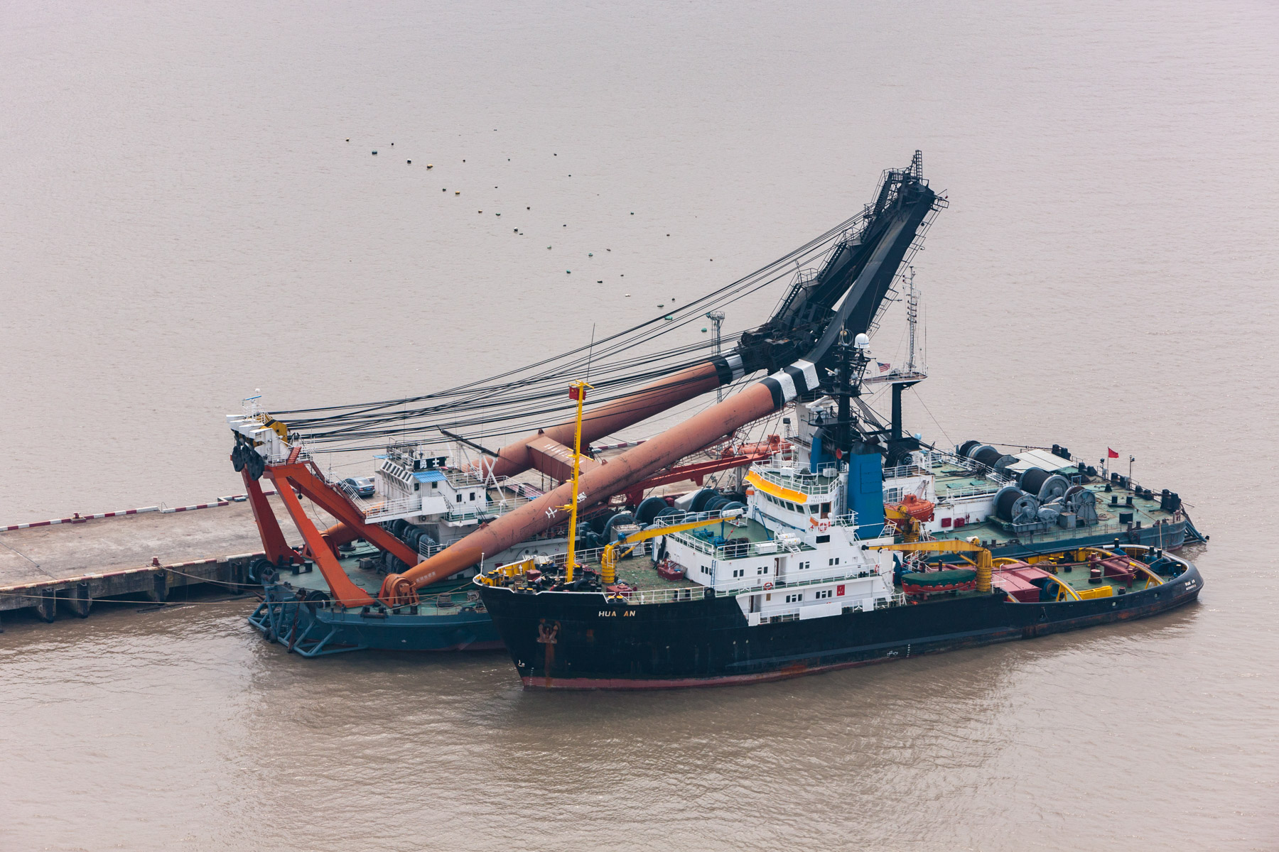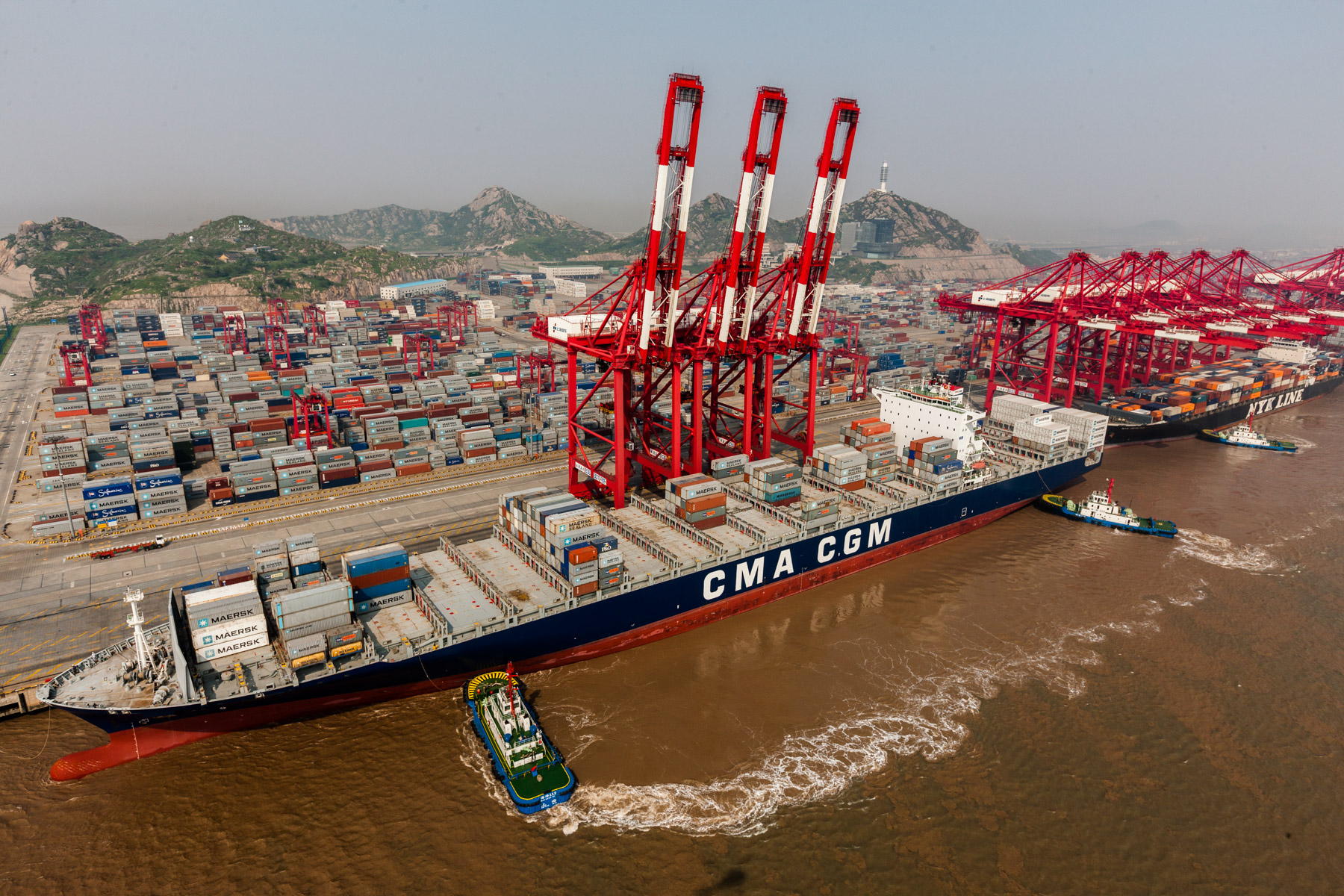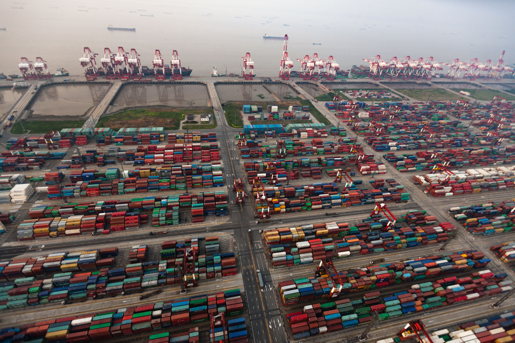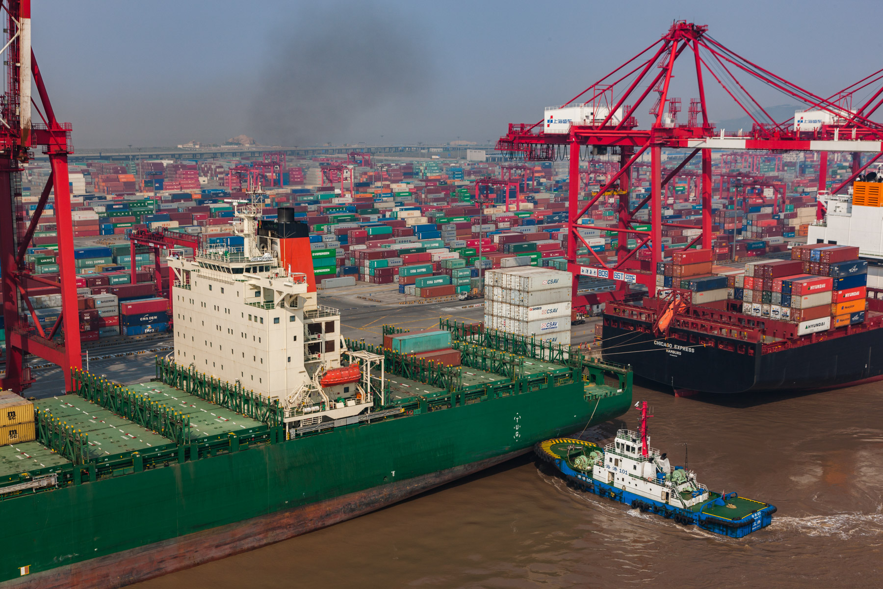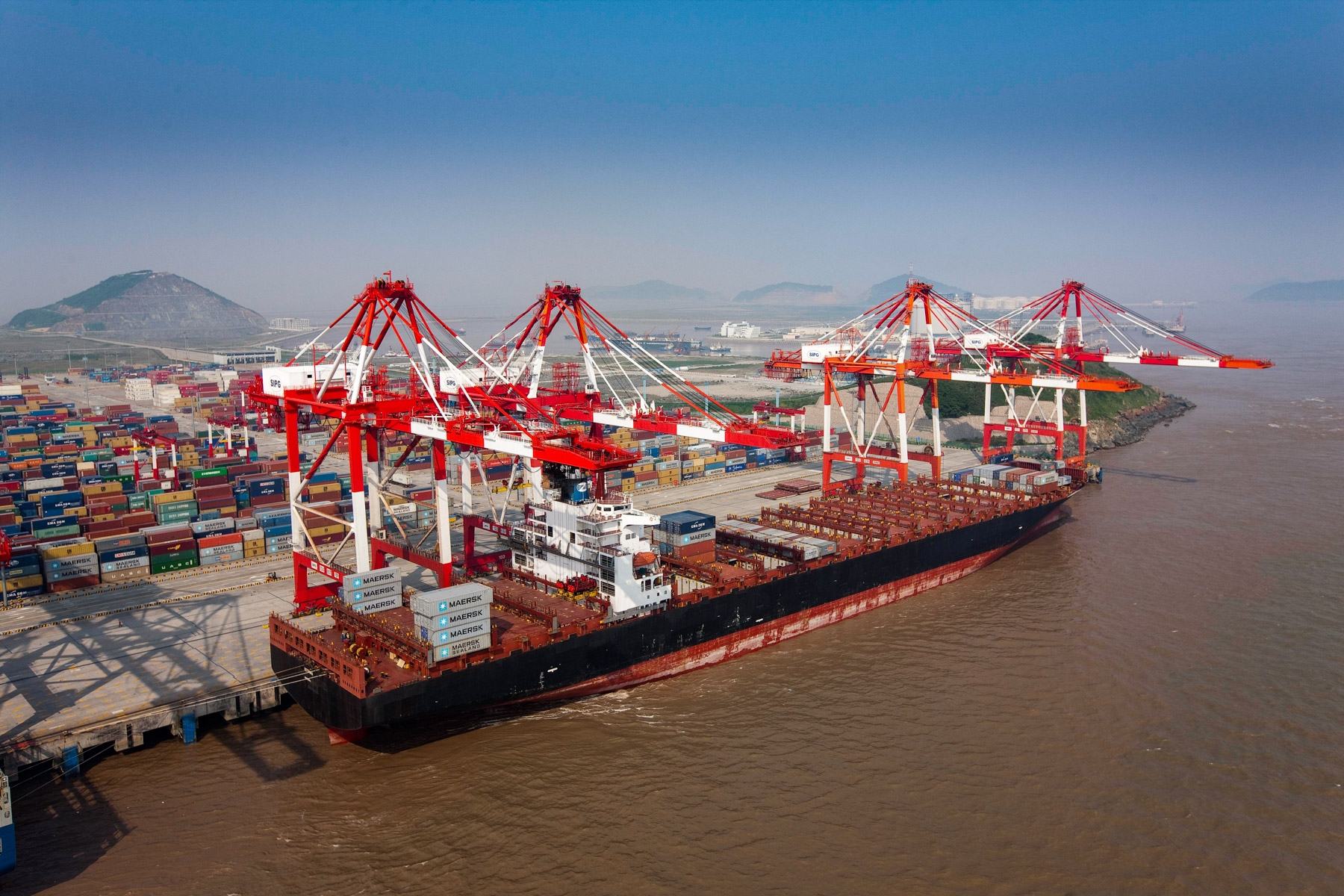 Port de Yangshan (le plus important du monde en eau profonde), îles Yangshan, baie de Hangzhou, Shanghai, Chine ( 30°38'3.98"N - 122° 2'49.03"E)