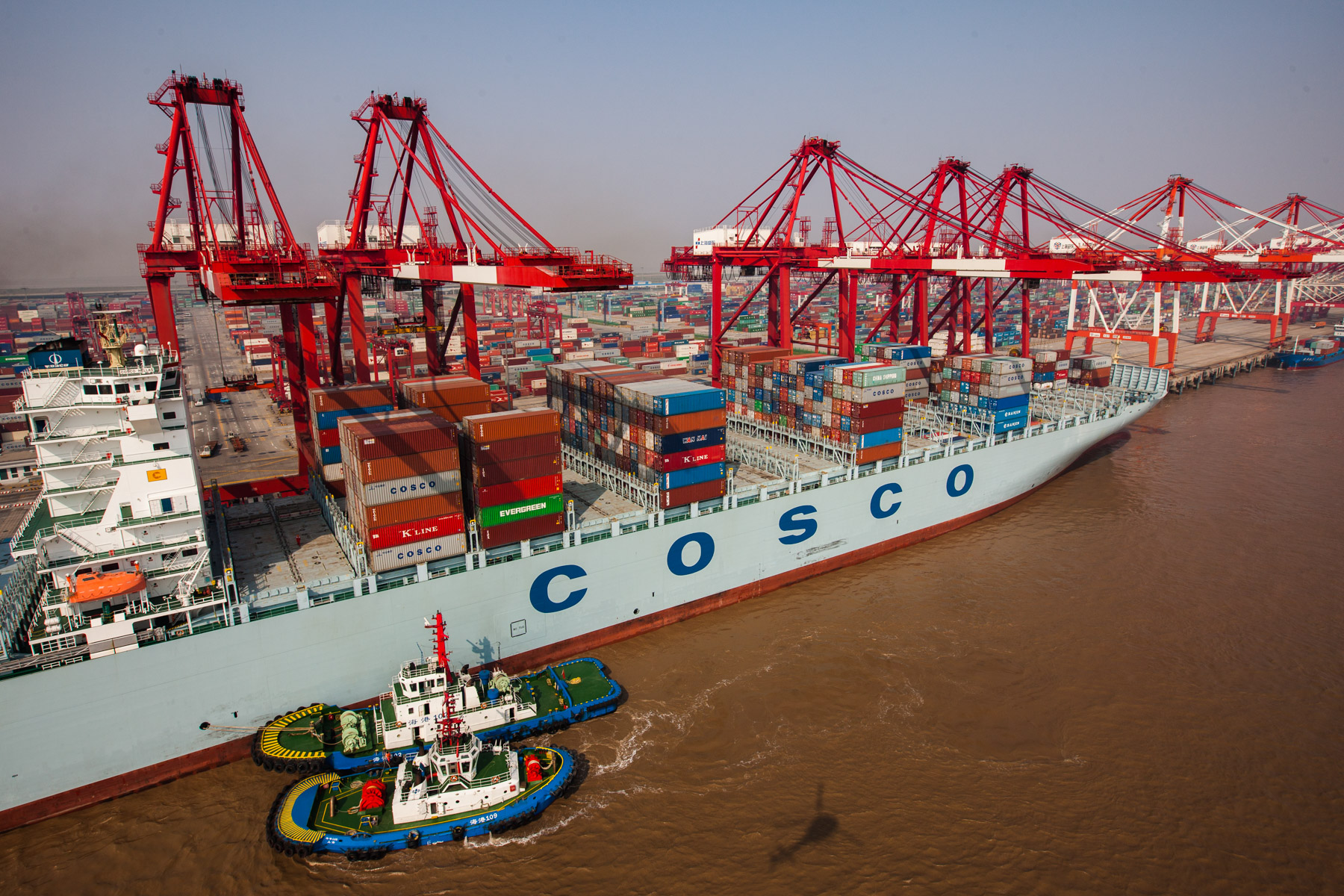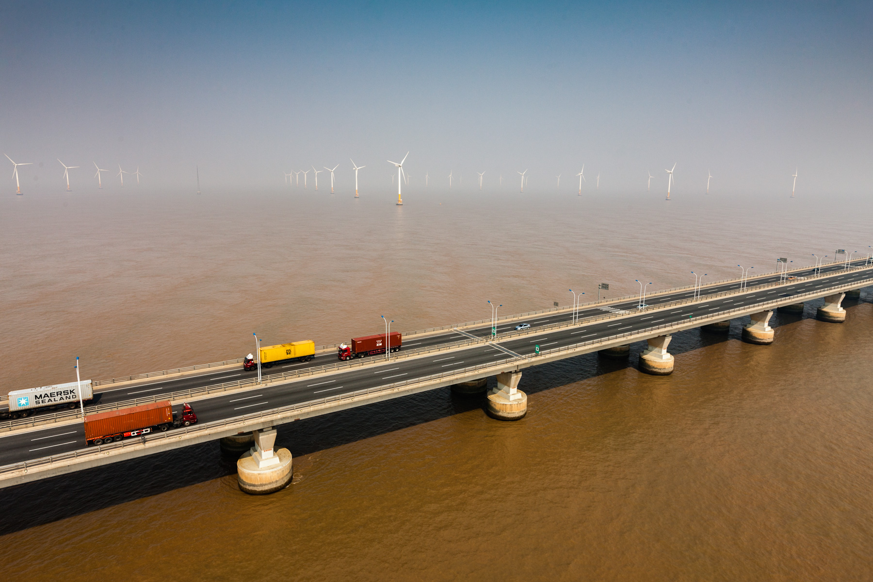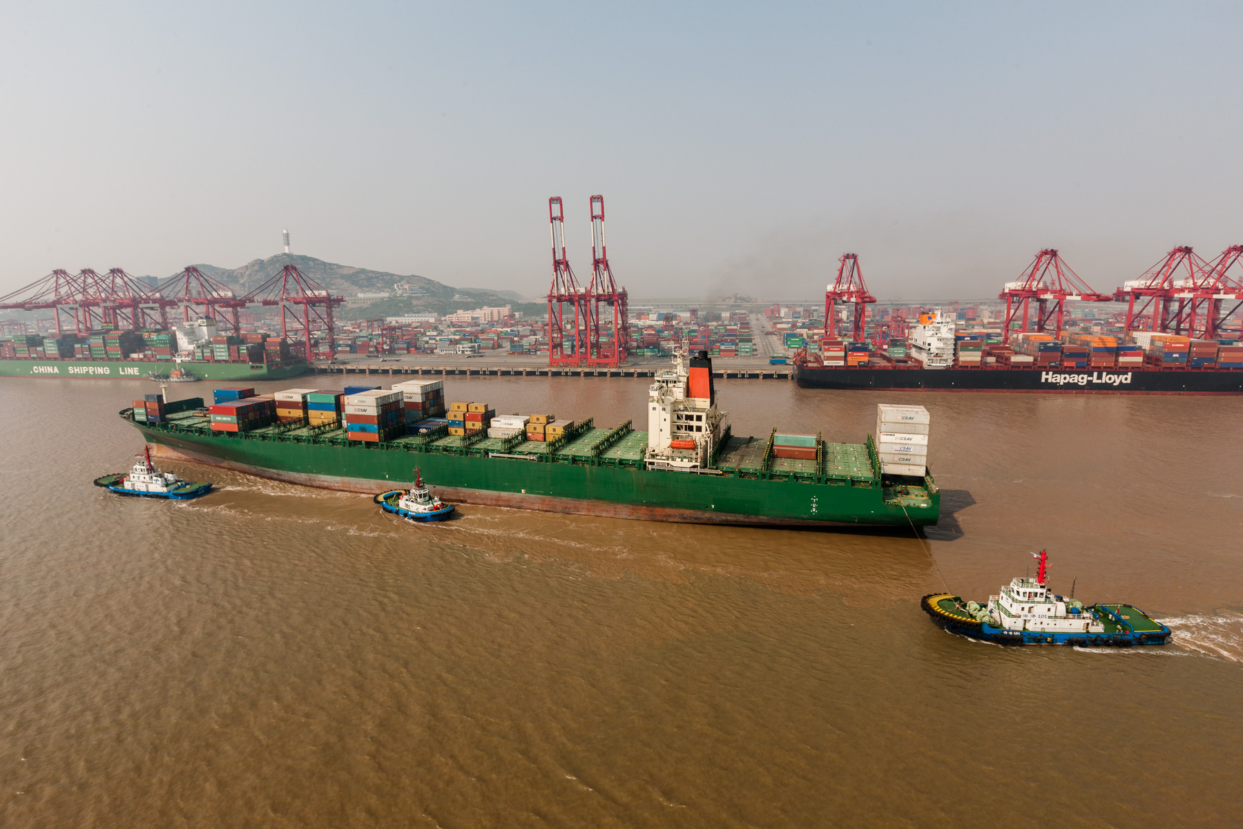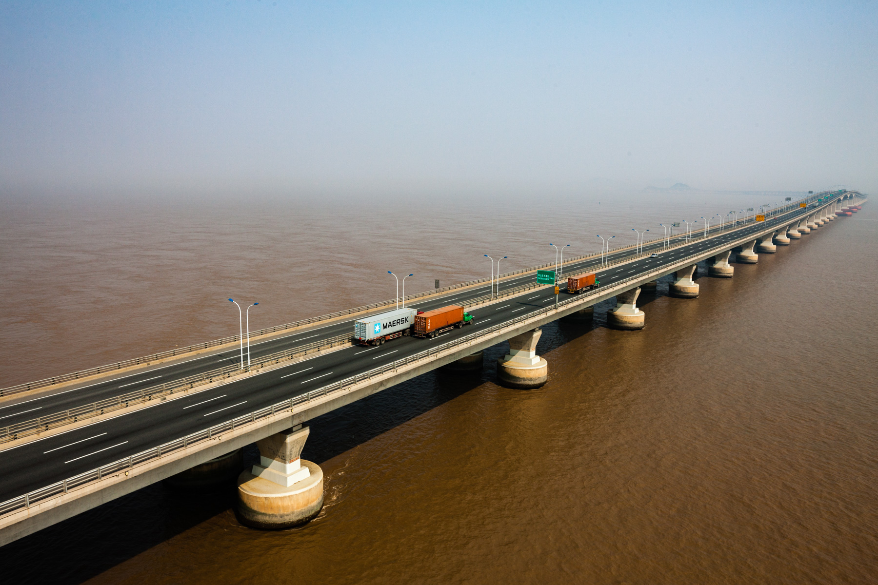 Port de Yangshan (le plus important du monde en eau profonde), îles Yangshan, baie de Hangzhou, Shanghai, Chine ( 30°38'3.98"N - 122° 2'49.03"E)