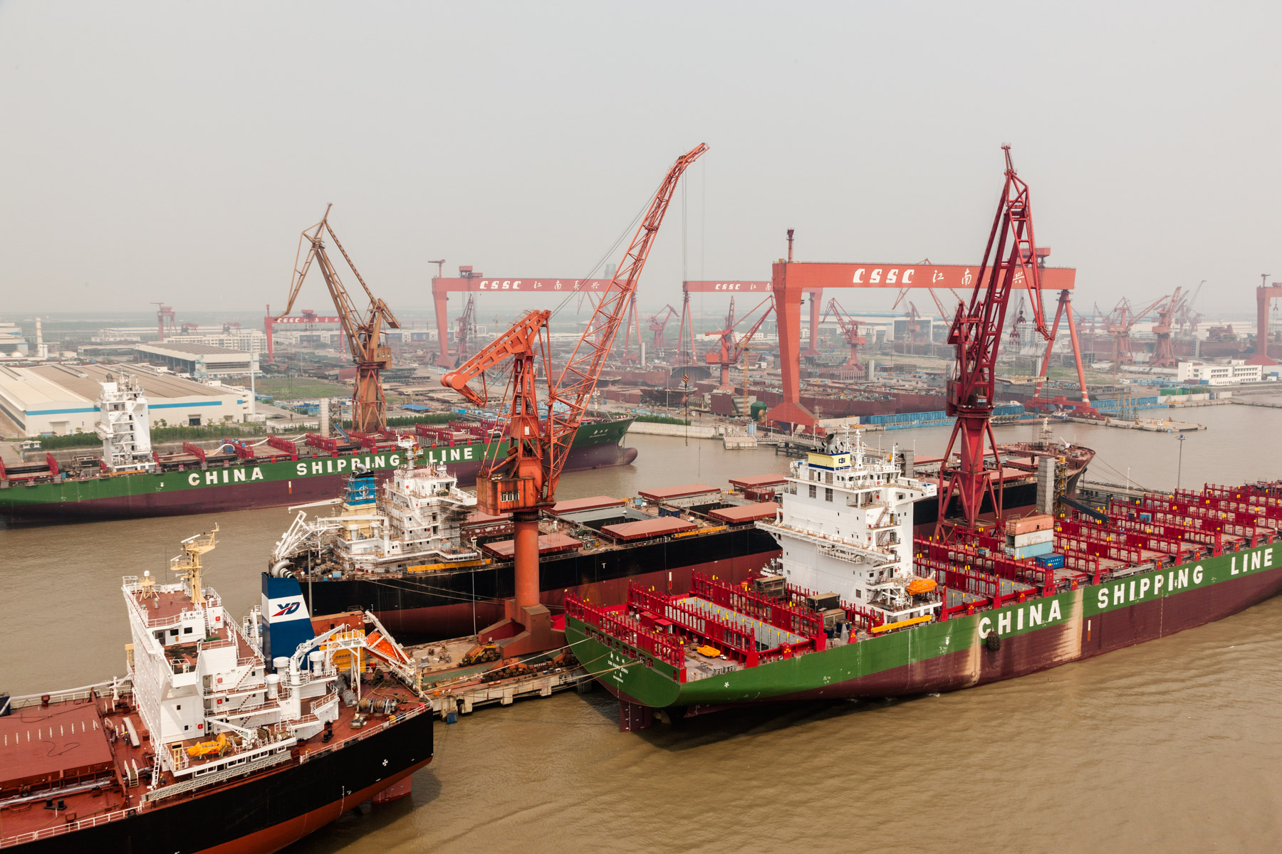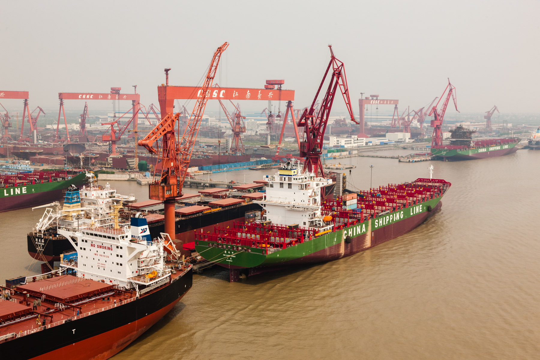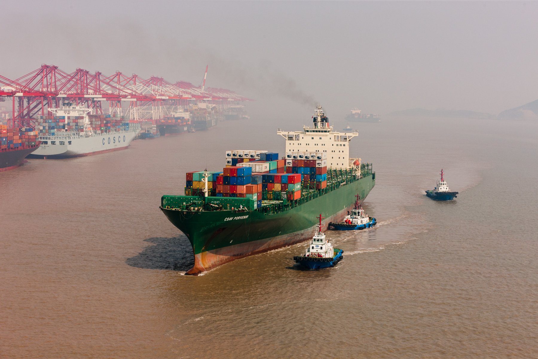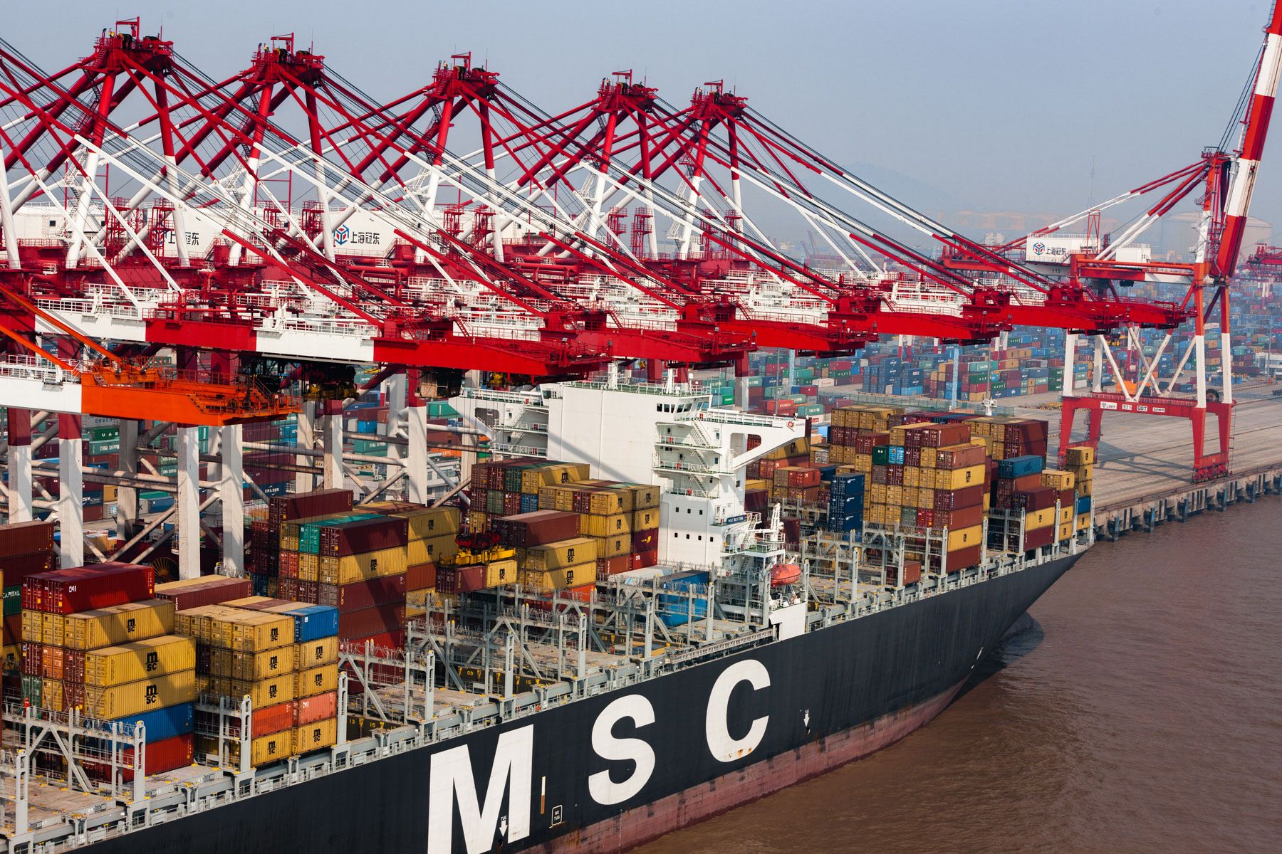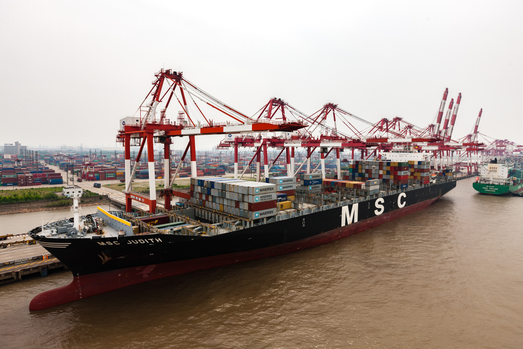 Port de Yangshan (le plus important du monde en eau profonde), îles Yangshan, baie de Hangzhou, Shanghai, Chine ( 30°38'3.98"N - 122° 2'49.03"E)