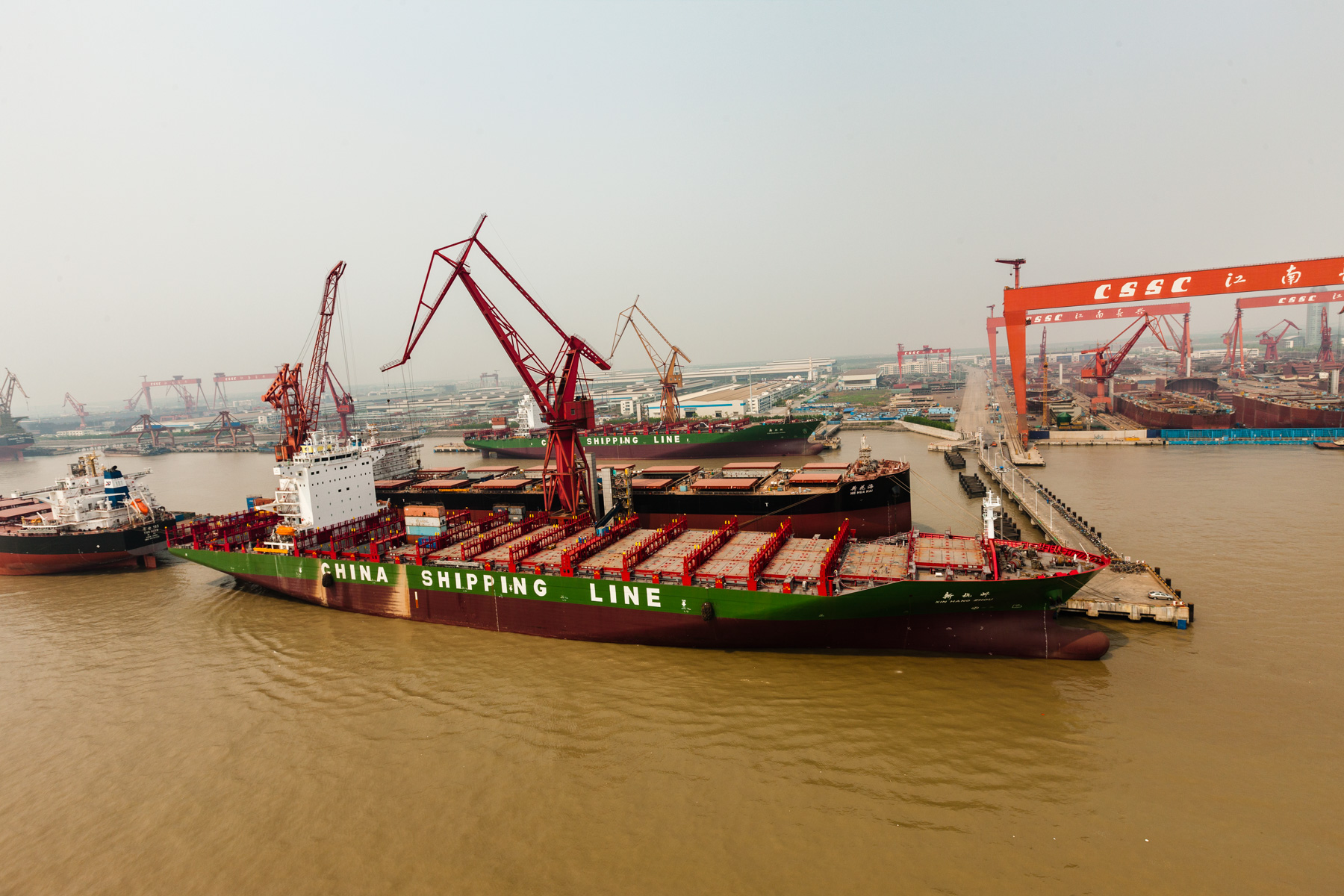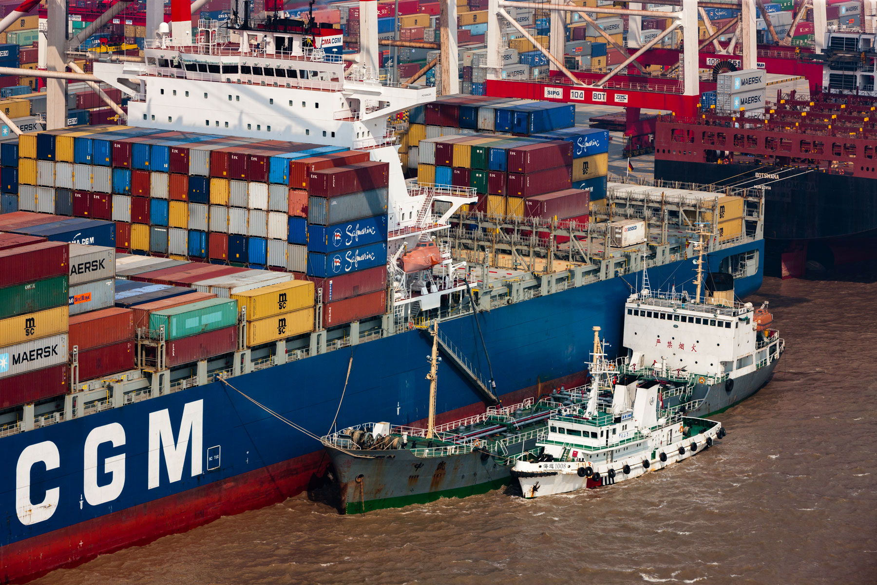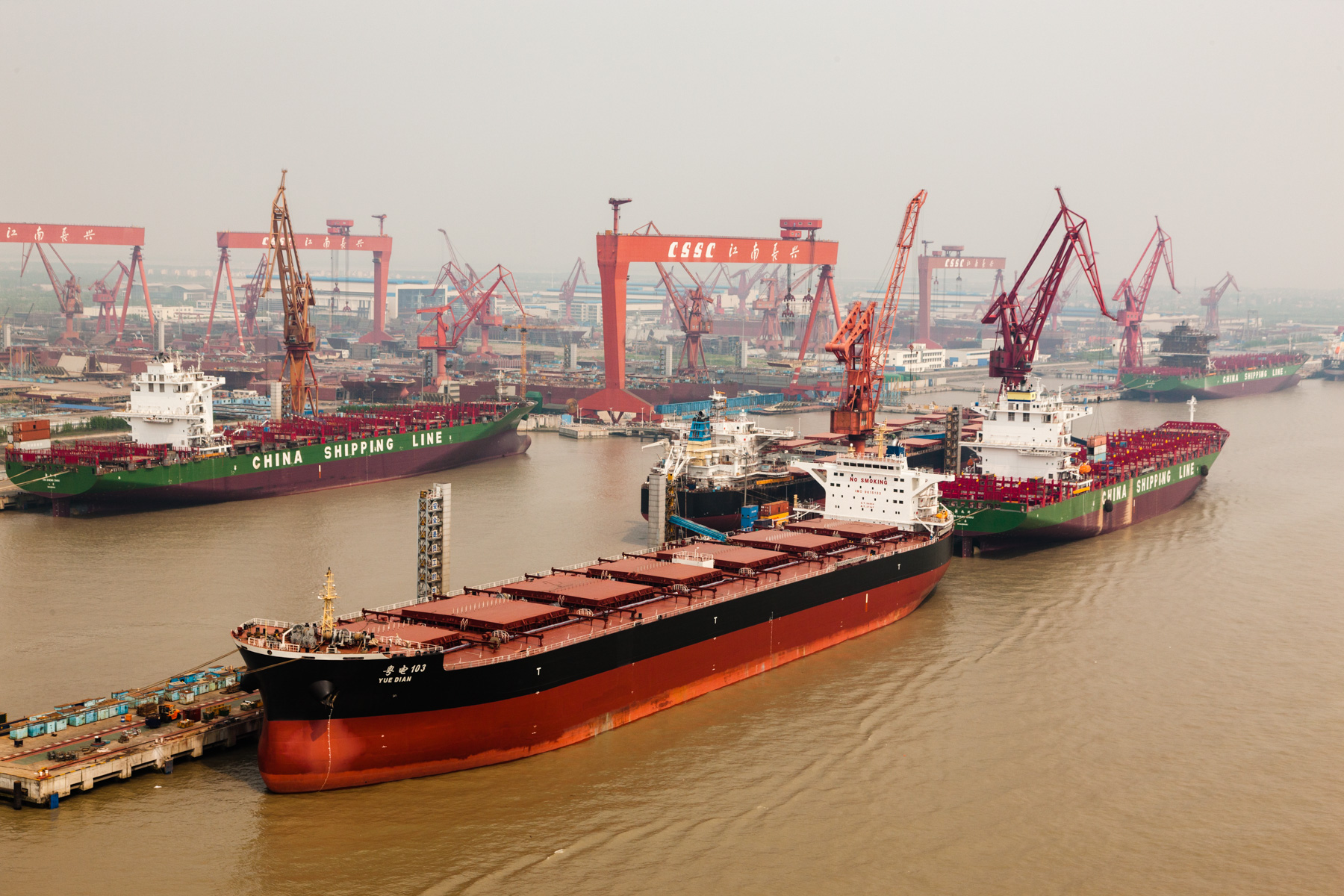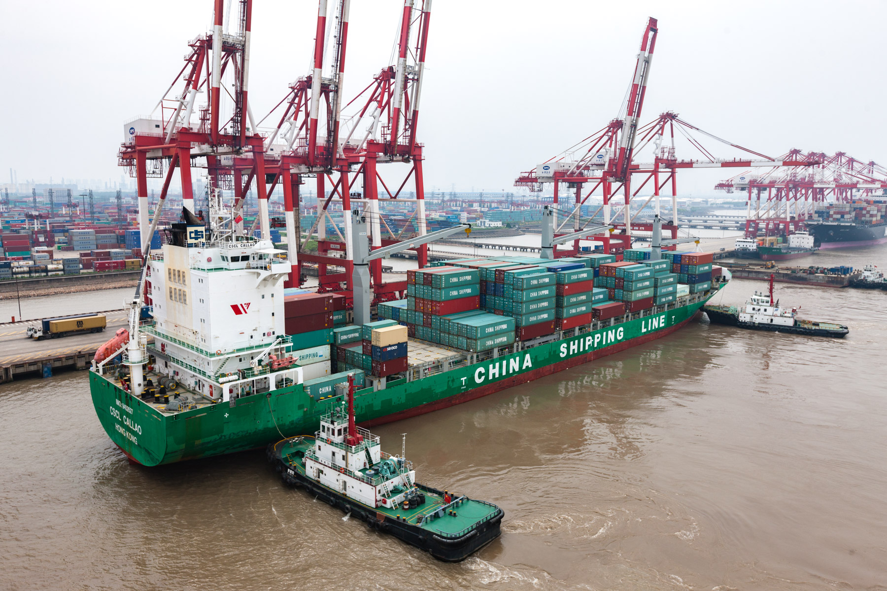 Port de Yangshan (le plus important du monde en eau profonde), îles Yangshan, baie de Hangzhou, Shanghai, Chine ( 30°38'3.98"N - 122° 2'49.03"E)