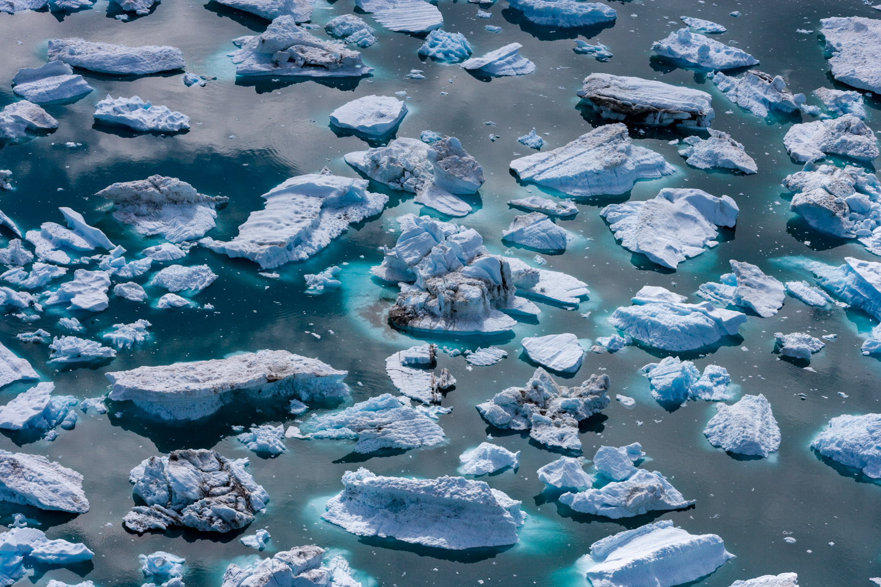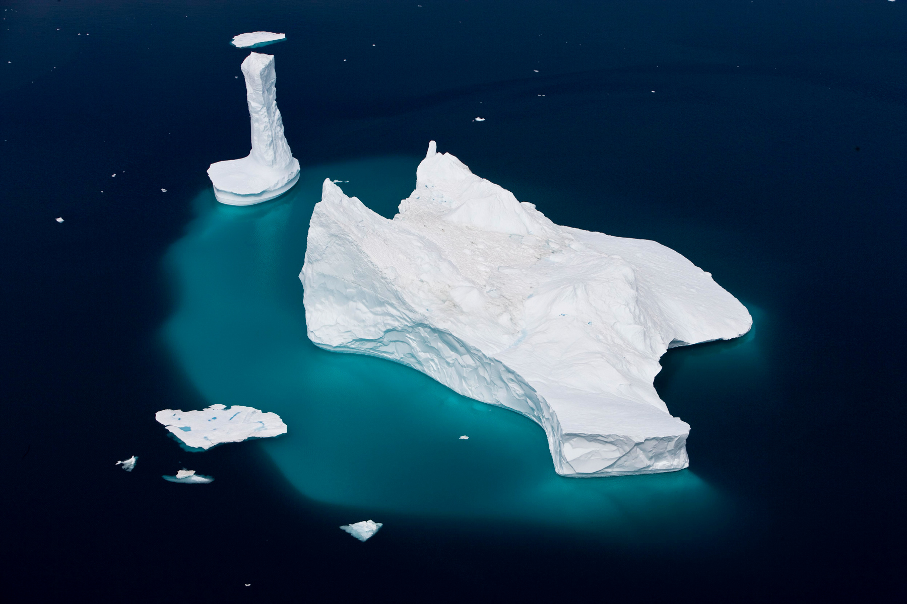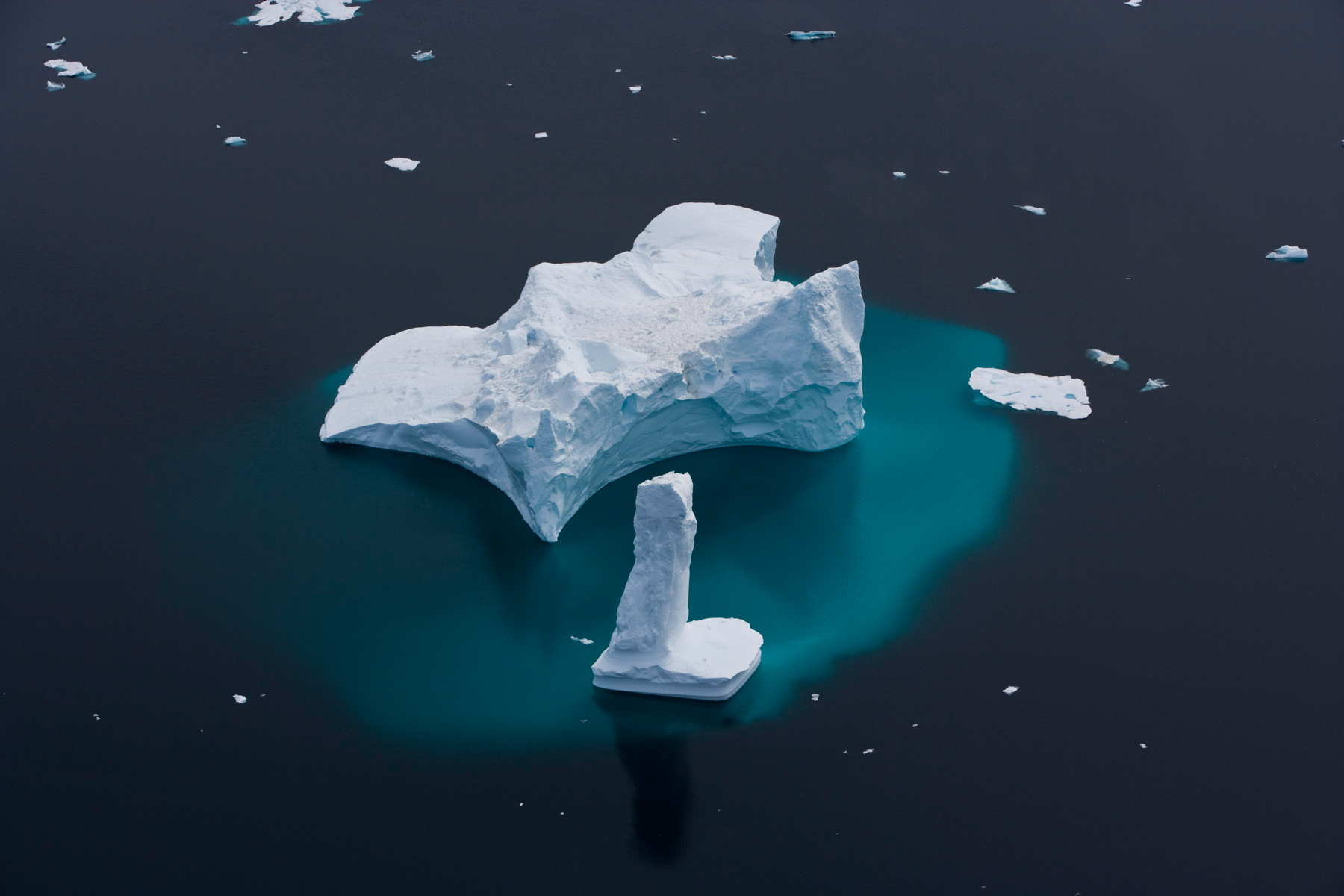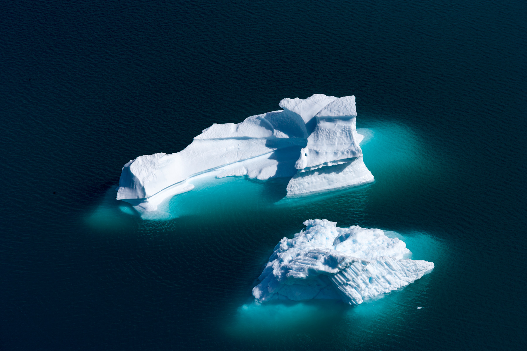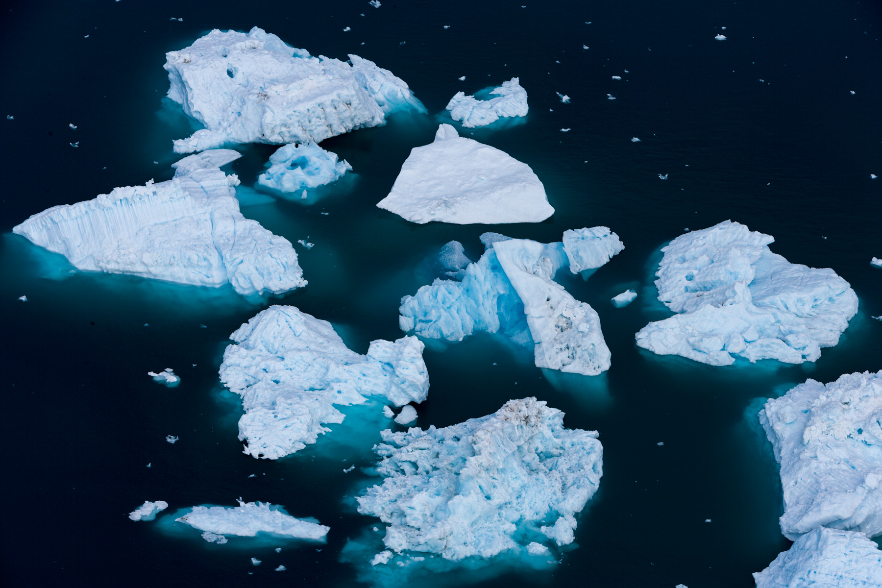 Icebergs érodés dans le fjord d'Eric, région de Kitaa, Groënland, Danemark (61°04' N - 45°24' O).
