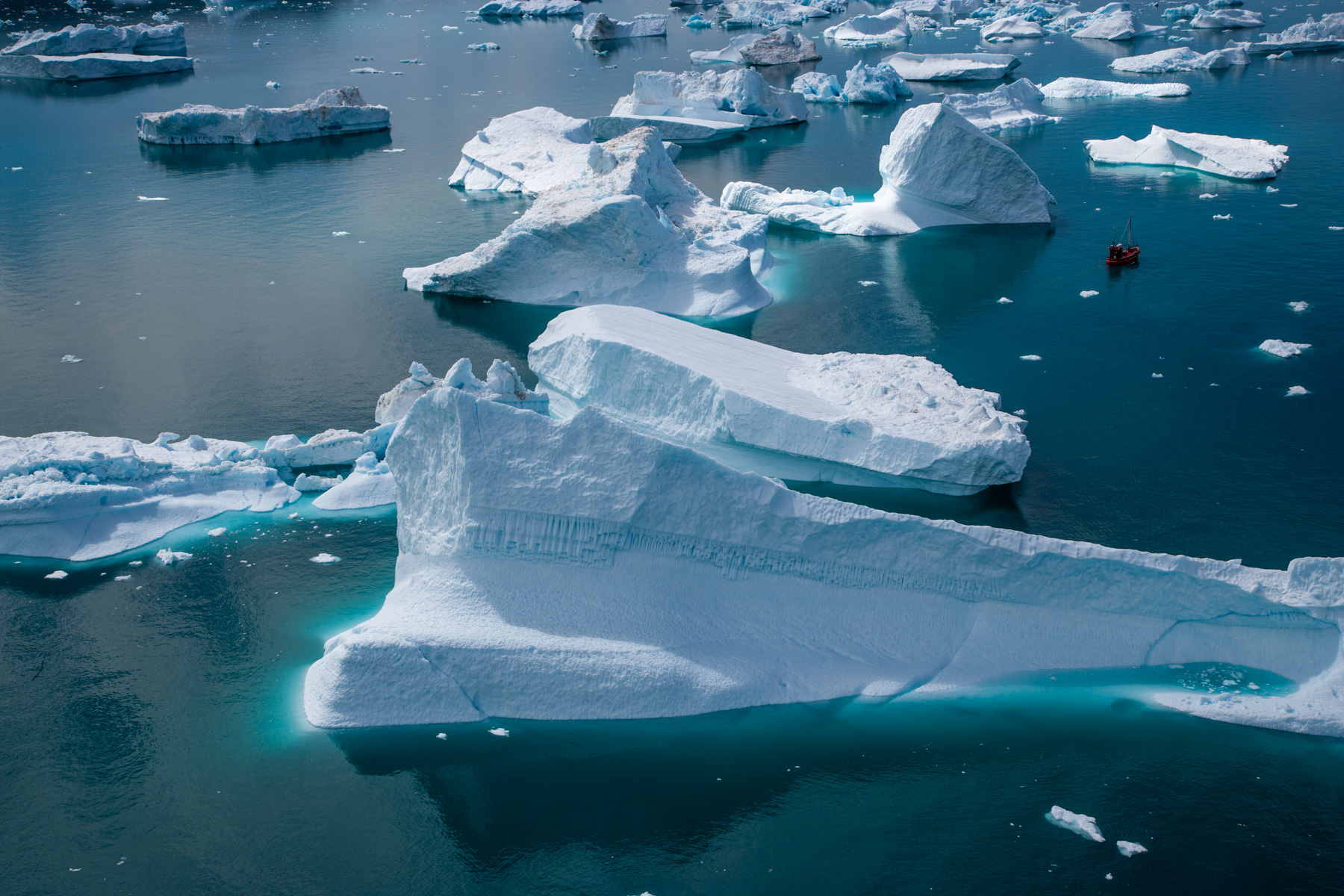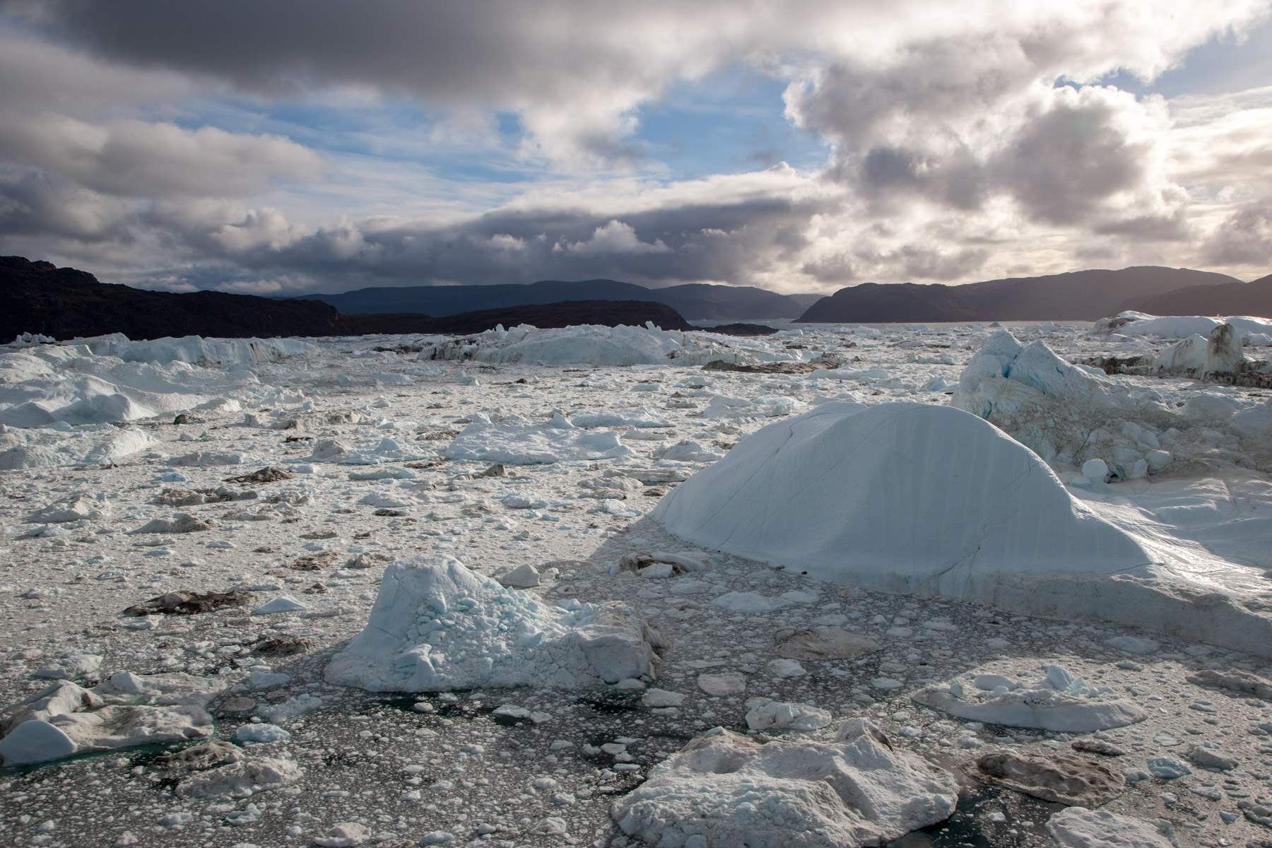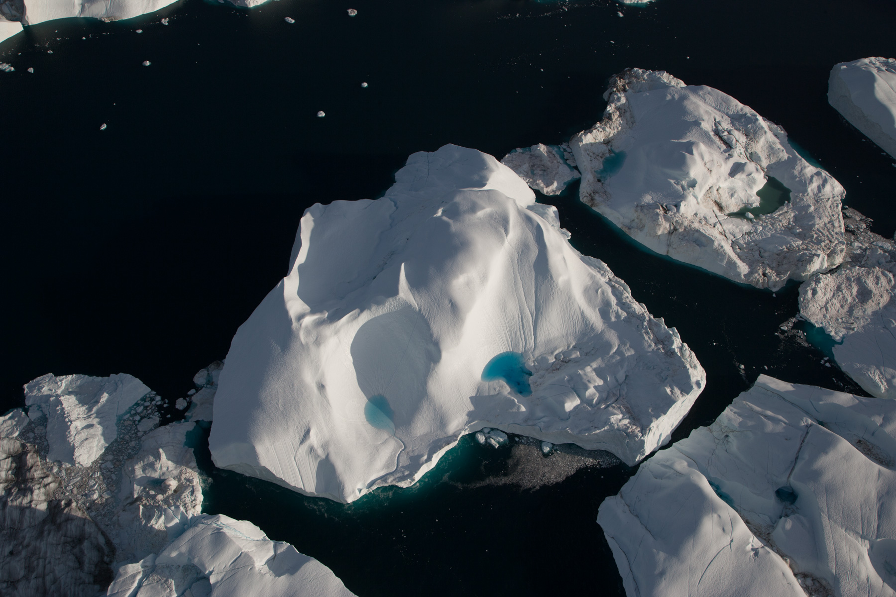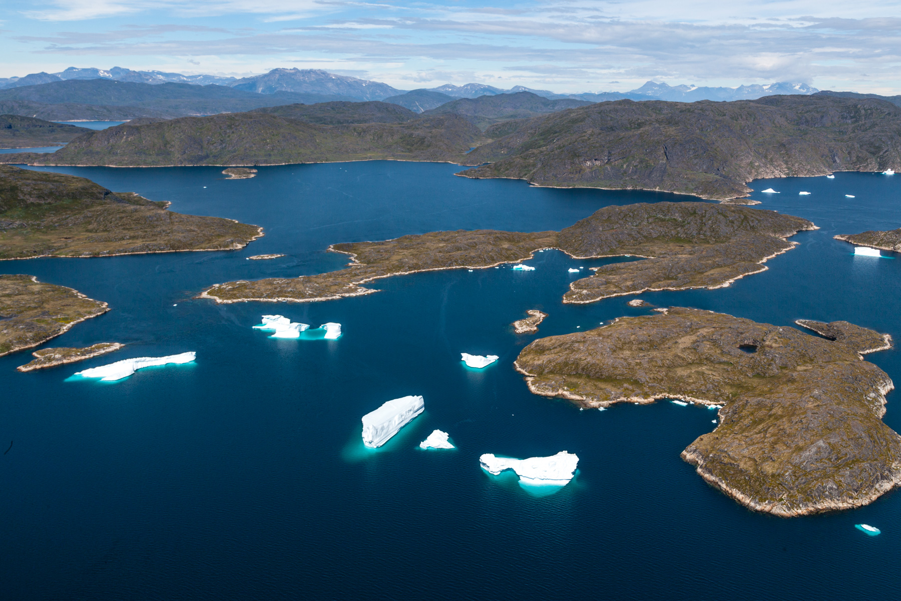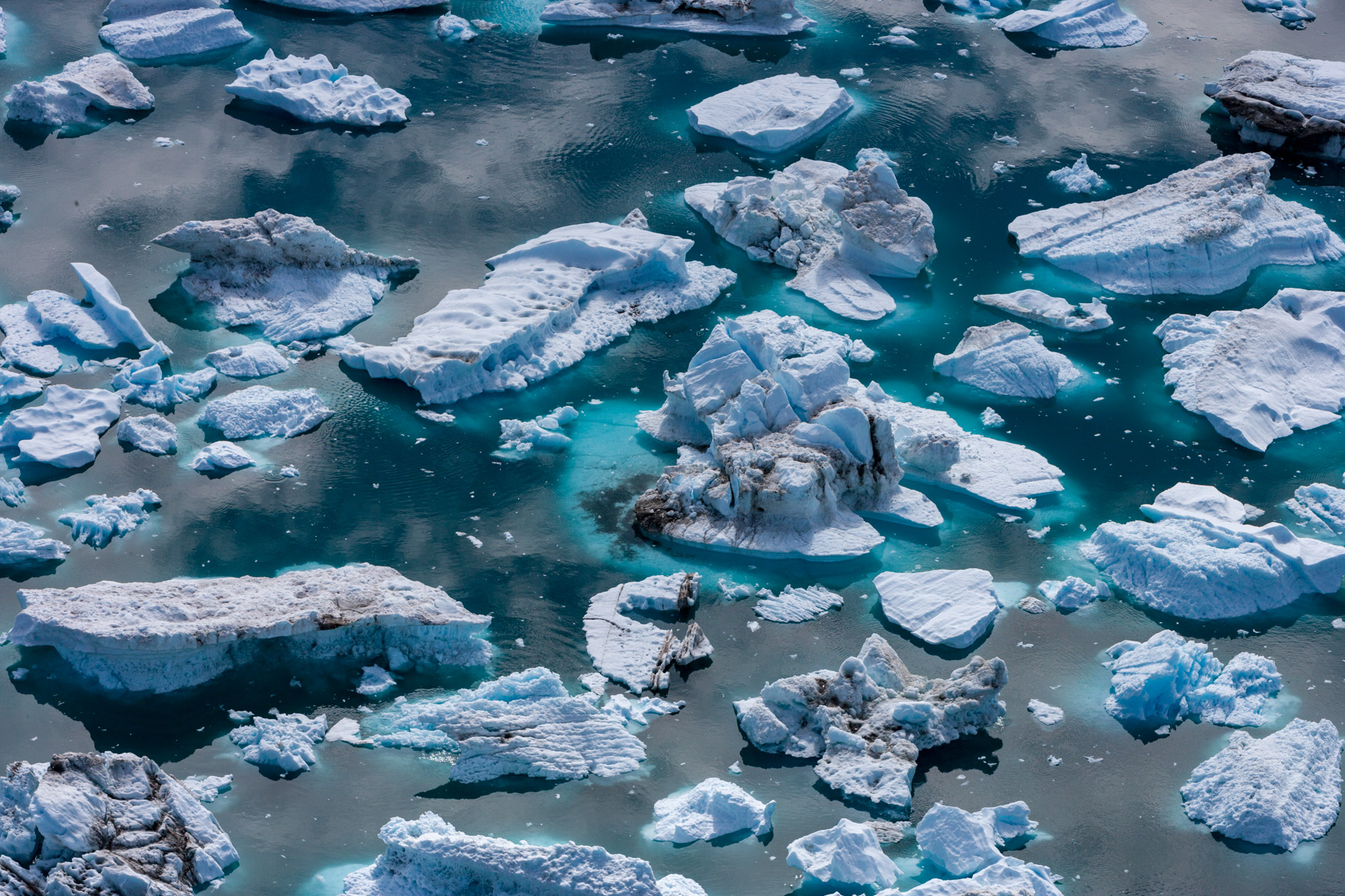 Icebergs érodés dans le fjord d'Eric, région de Kitaa, Groënland, Danemark (61°04' N - 45°24' O).