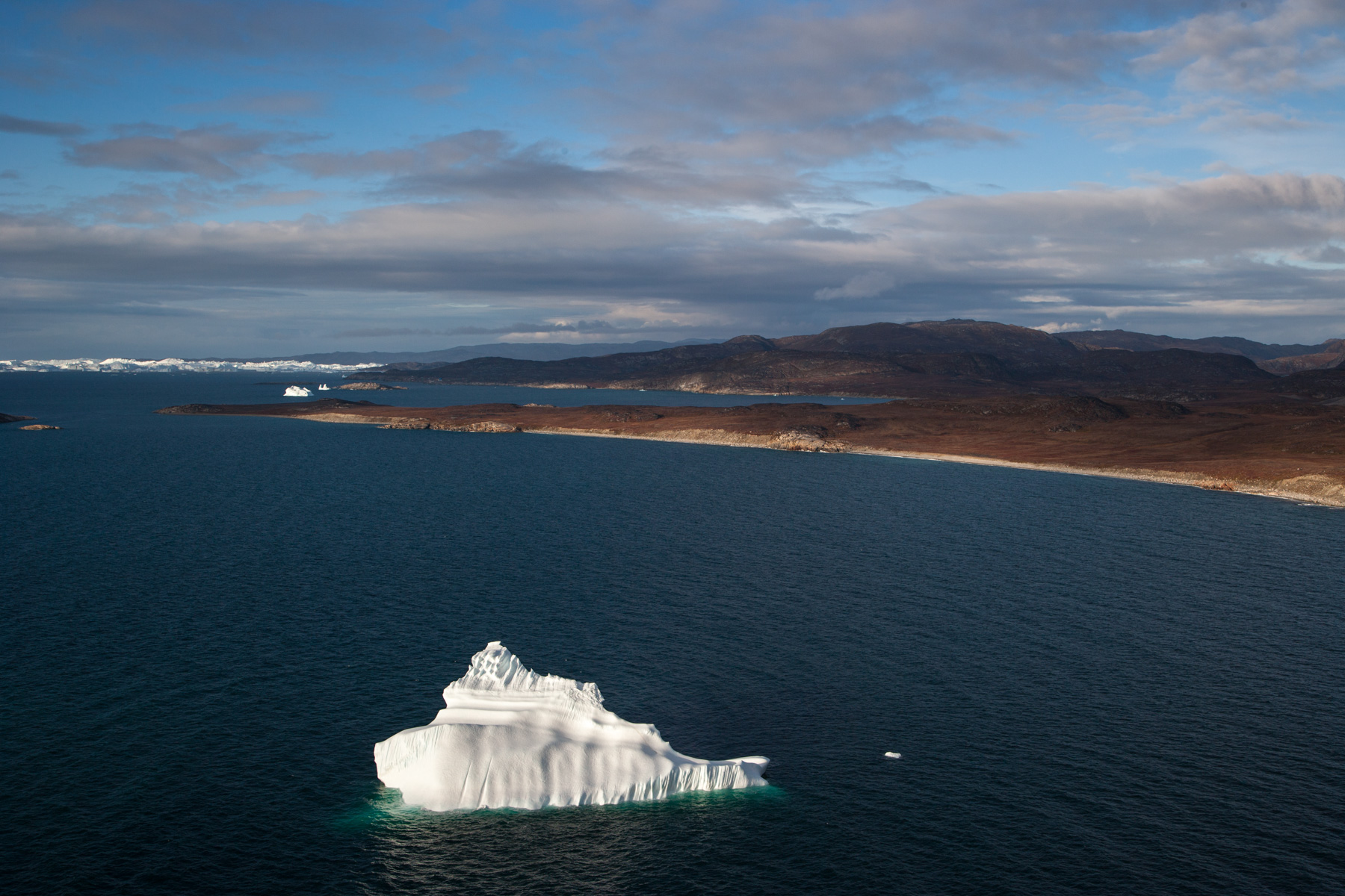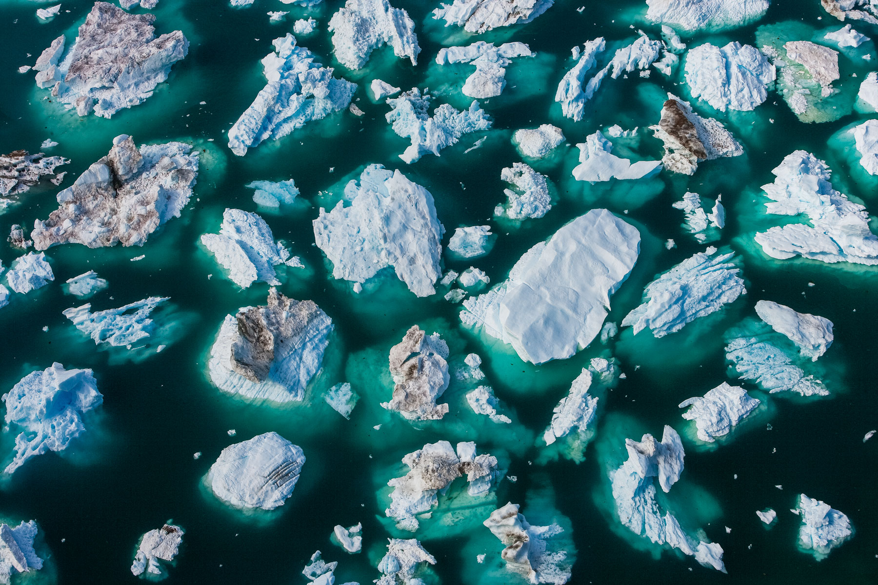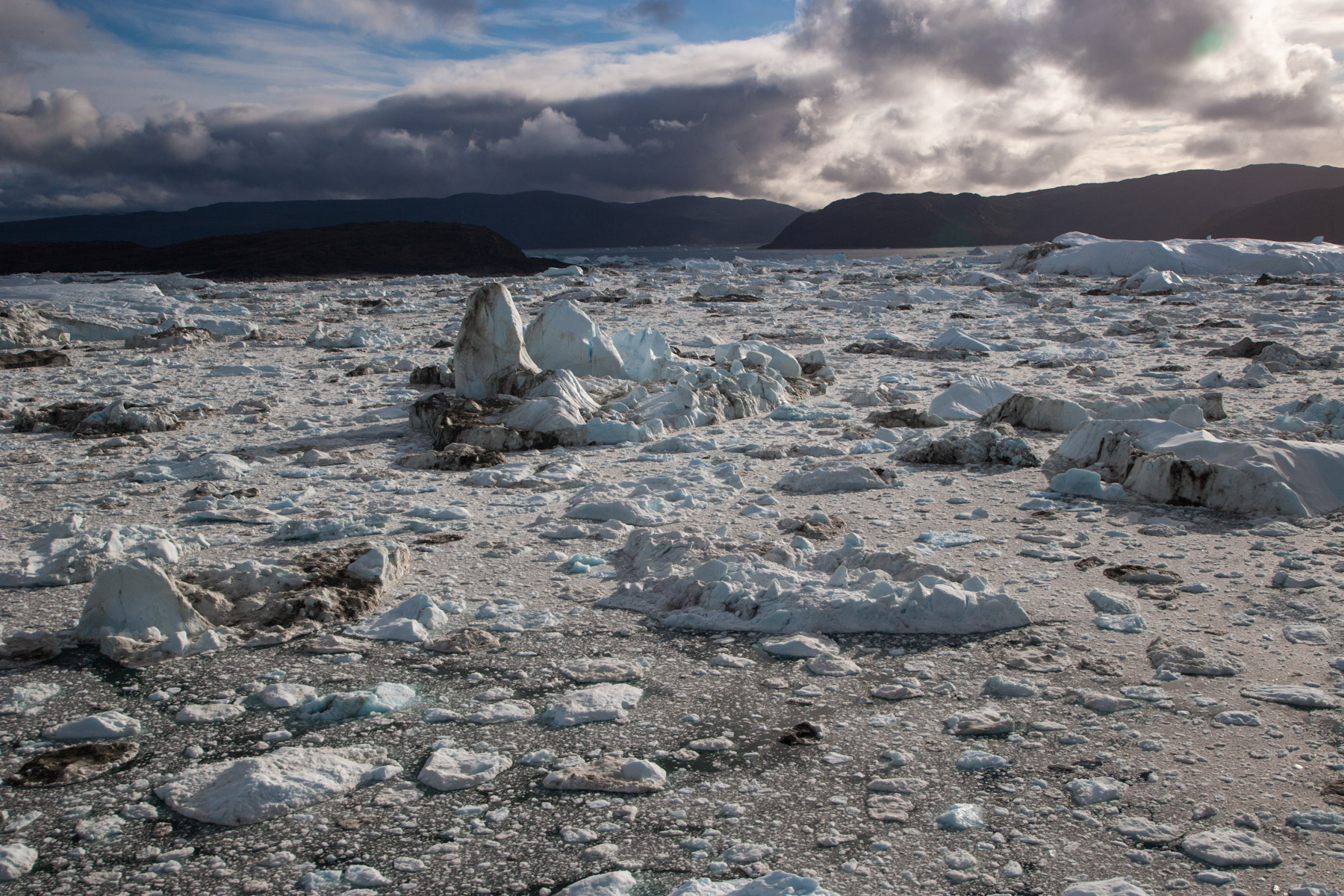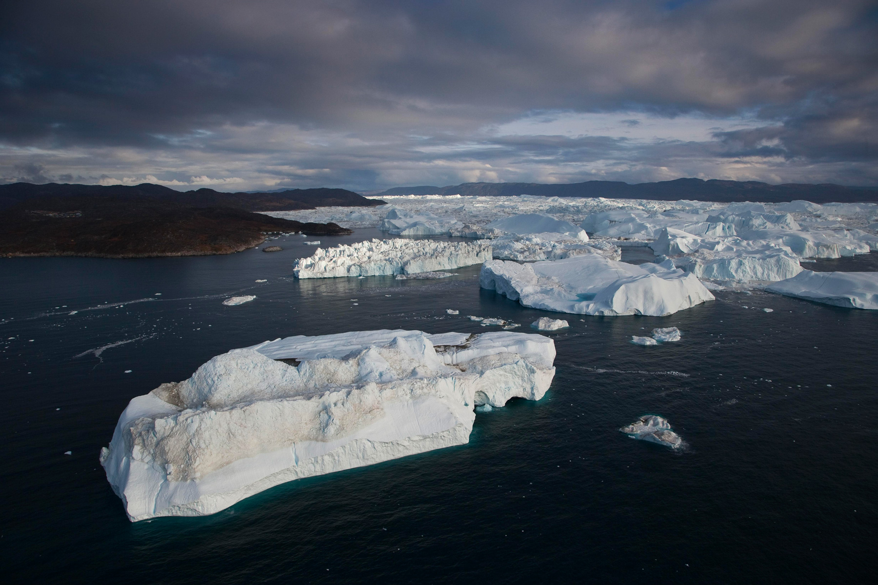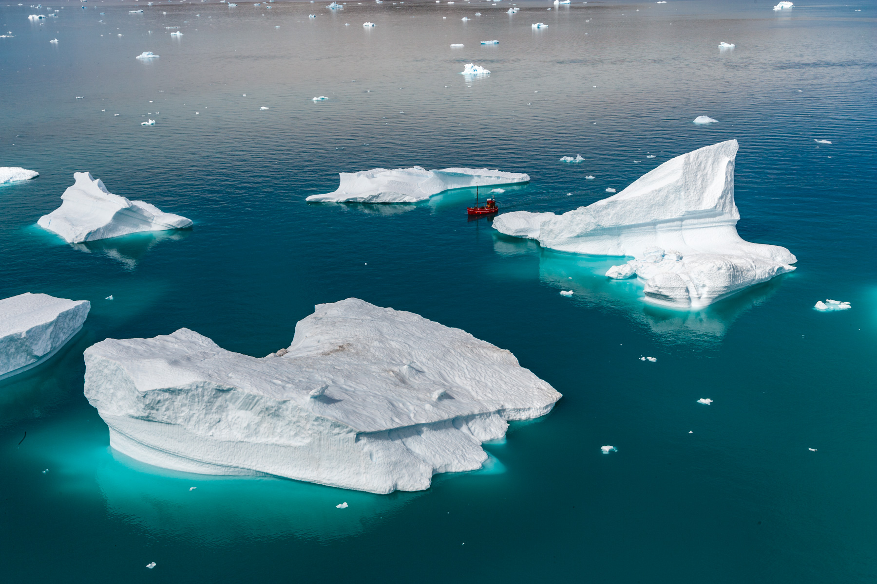 Icebergs érodés dans le fjord d'Eric, région de Kitaa, Groënland, Danemark (61°04' N - 45°24' O).