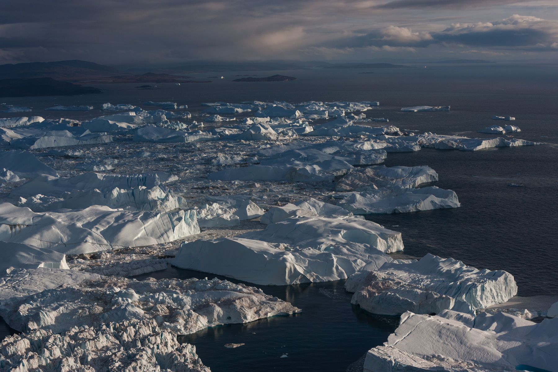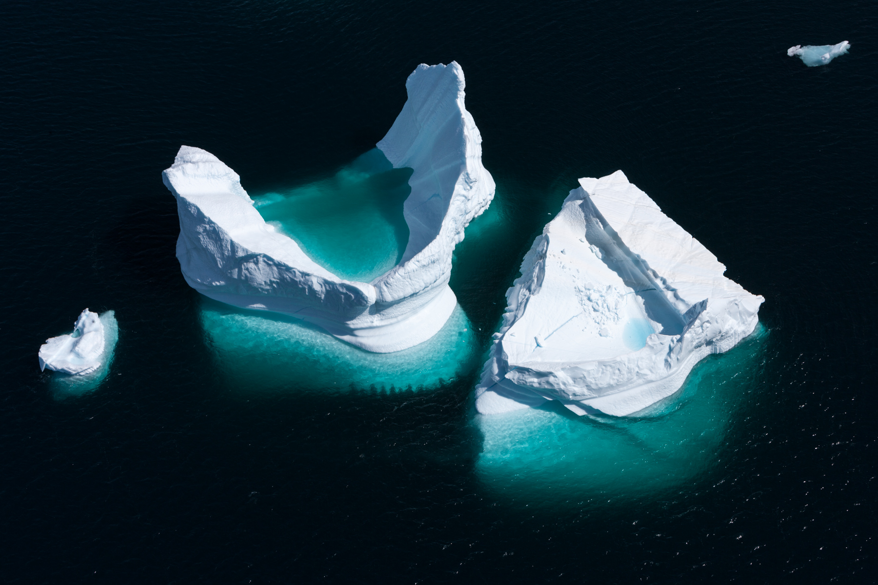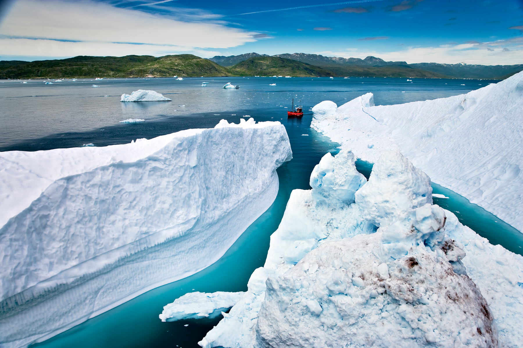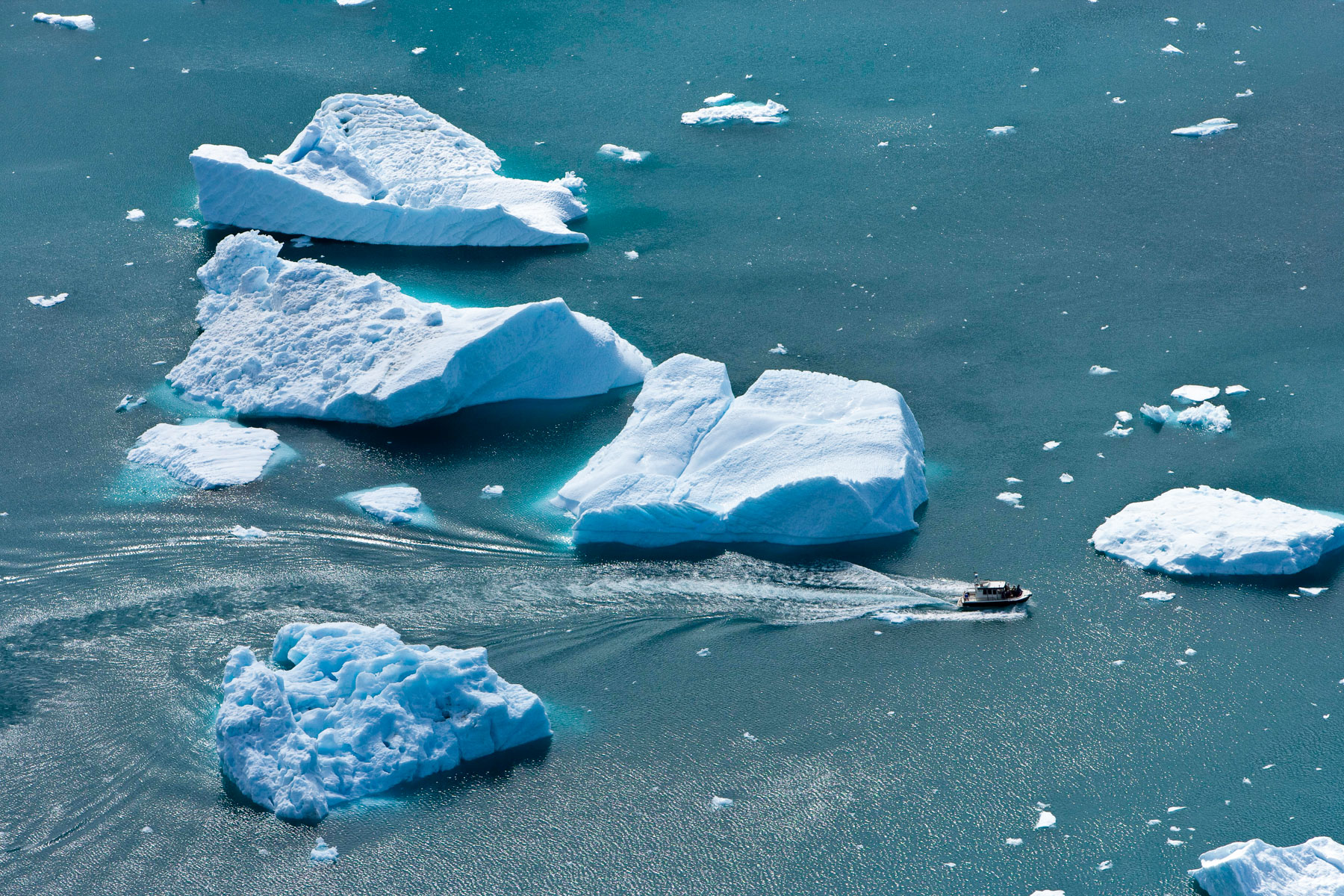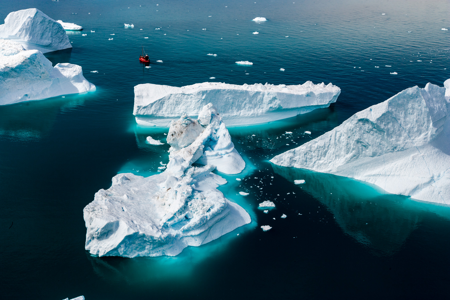 Icebergs érodés dans le fjord d'Eric, région de Kitaa, Groënland, Danemark (61°04' N - 45°24' O).