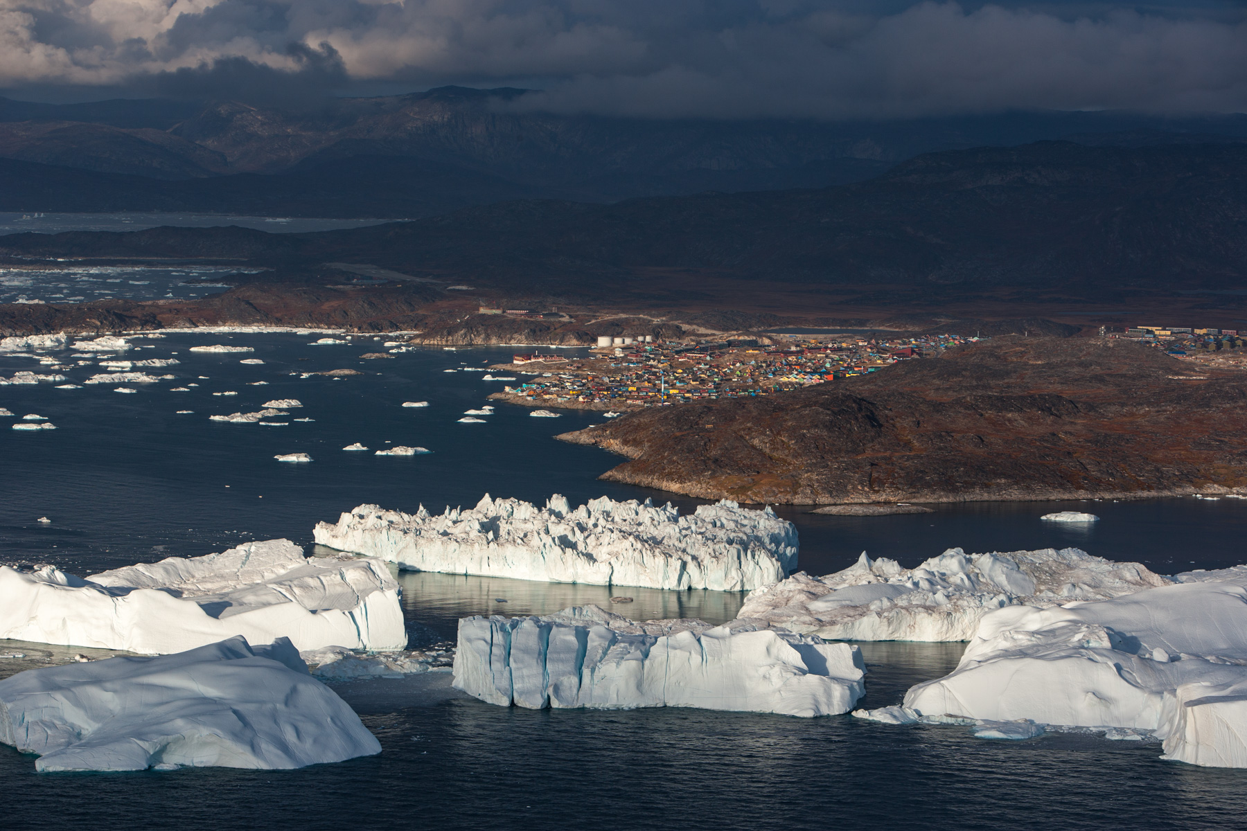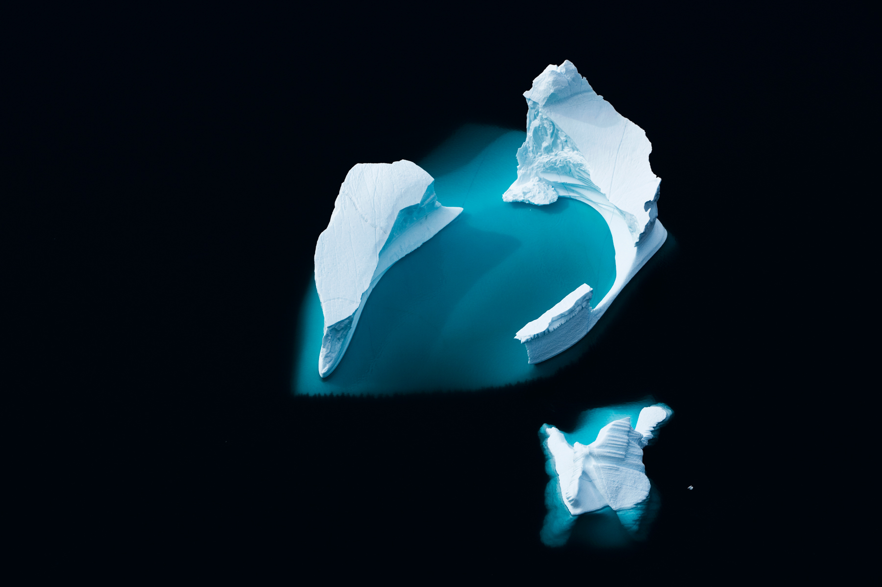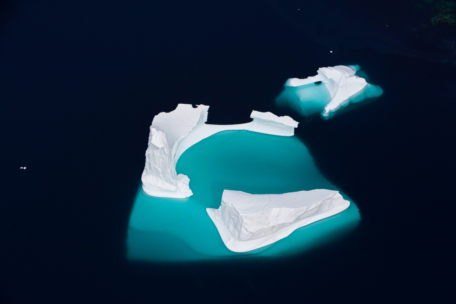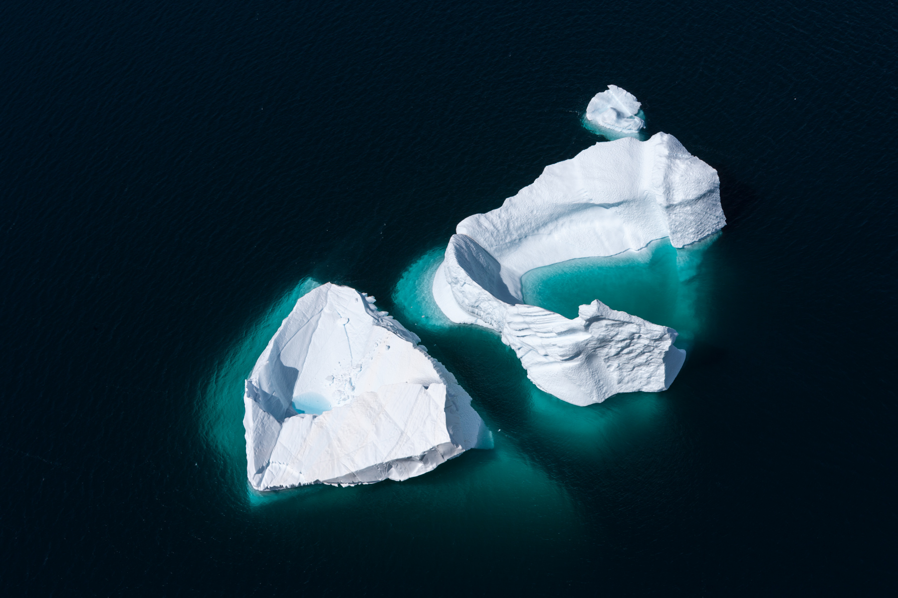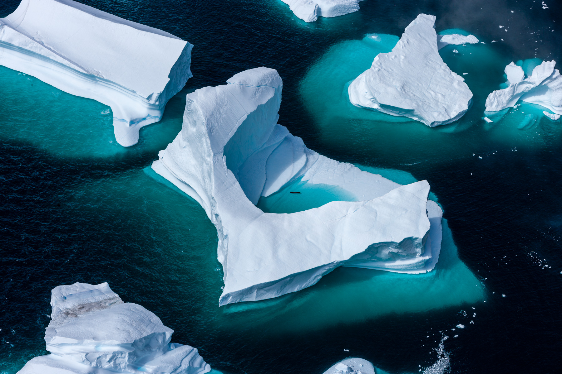 Icebergs érodés dans le fjord d'Eric, région de Kitaa, Groënland, Danemark (61°04' N - 45°24' O).