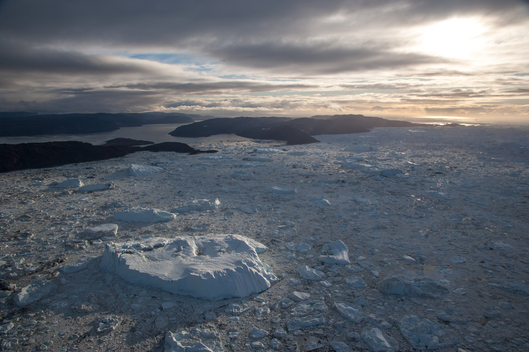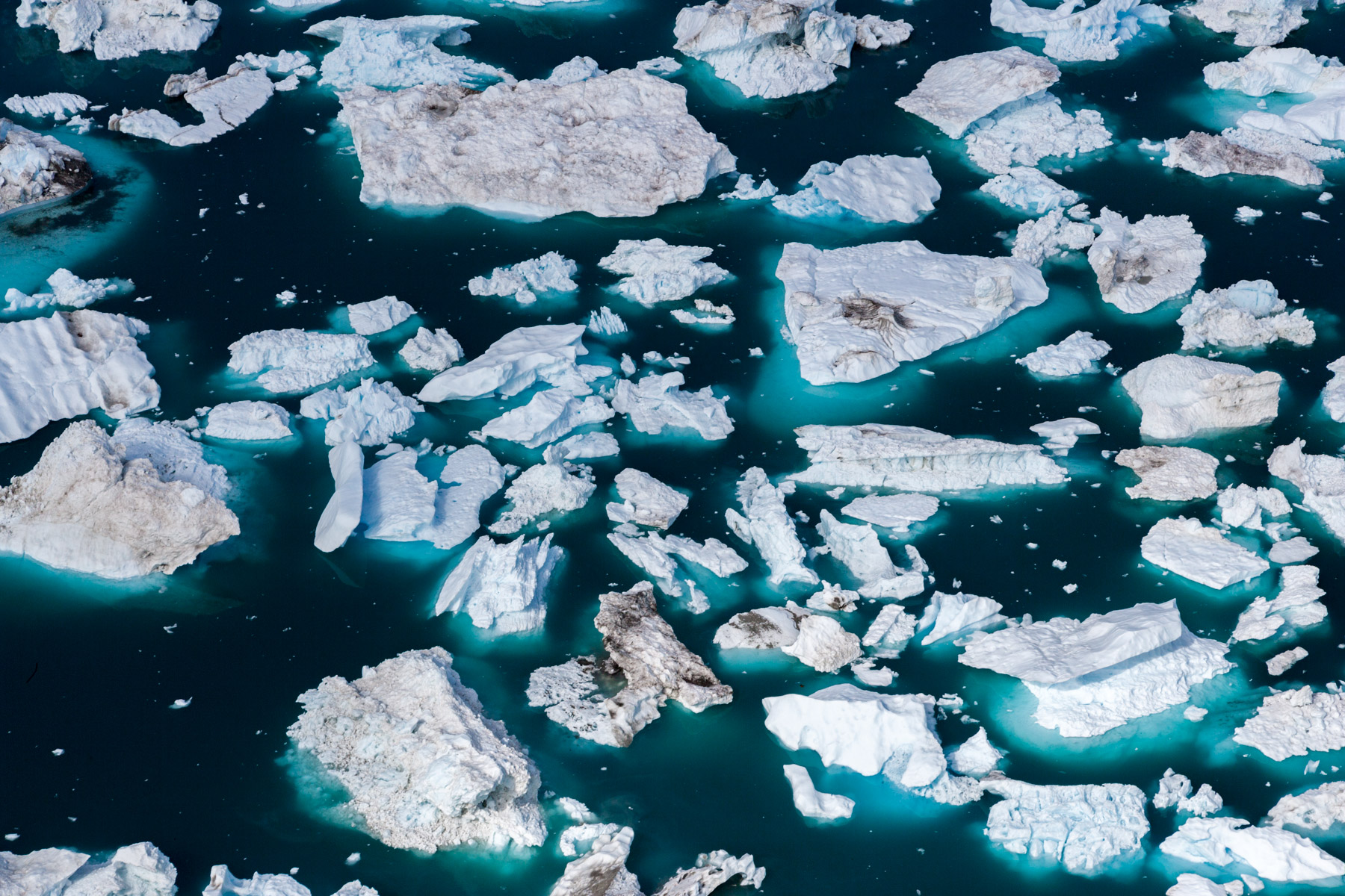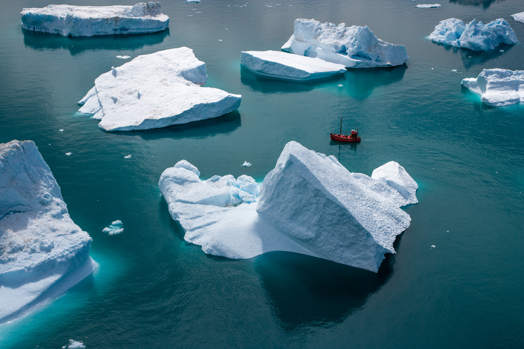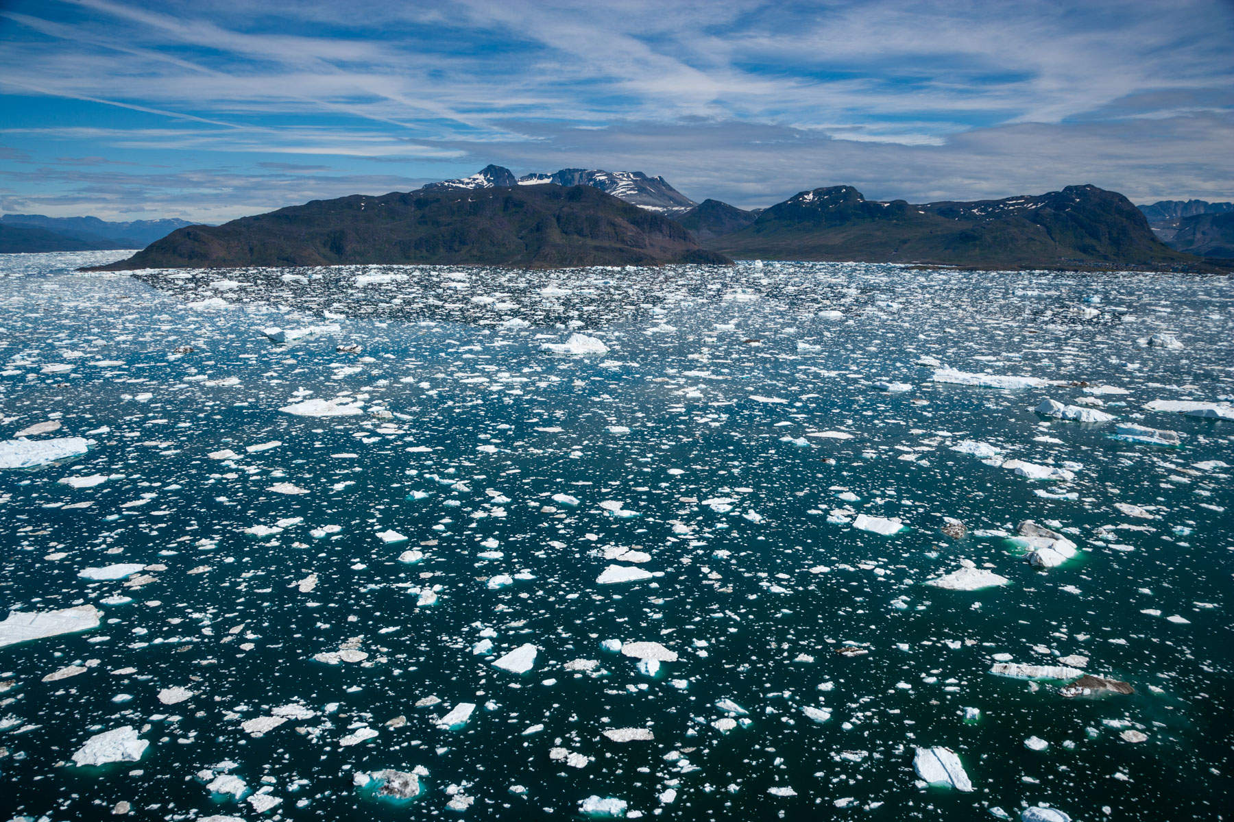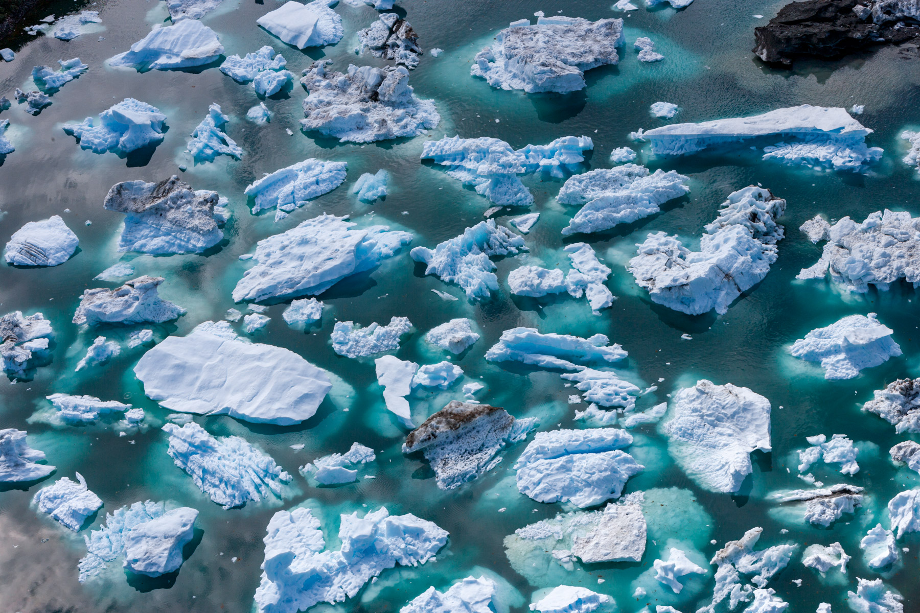 Icebergs érodés dans le fjord d'Eric, région de Kitaa, Groënland, Danemark (61°04' N - 45°24' O).