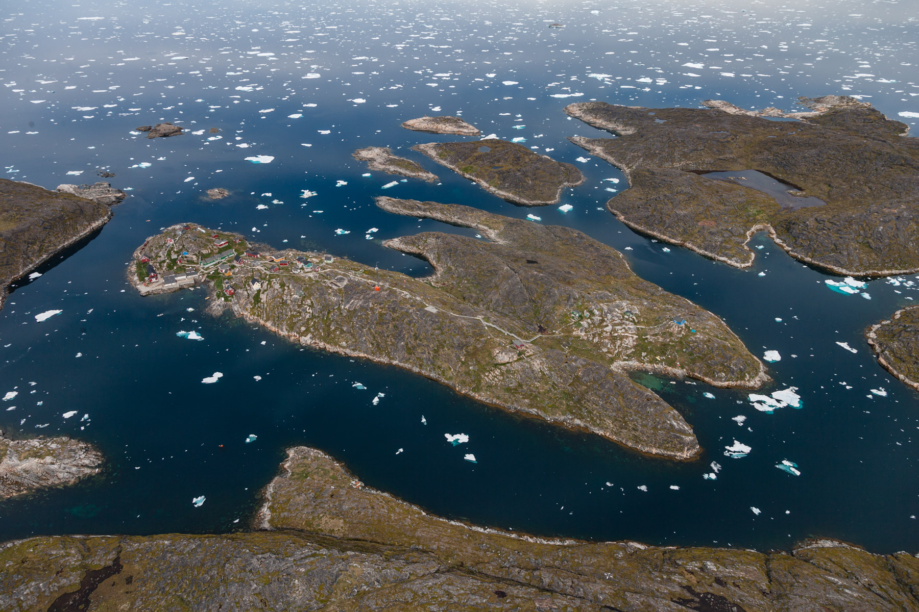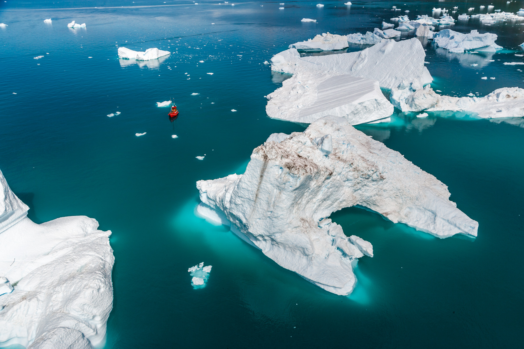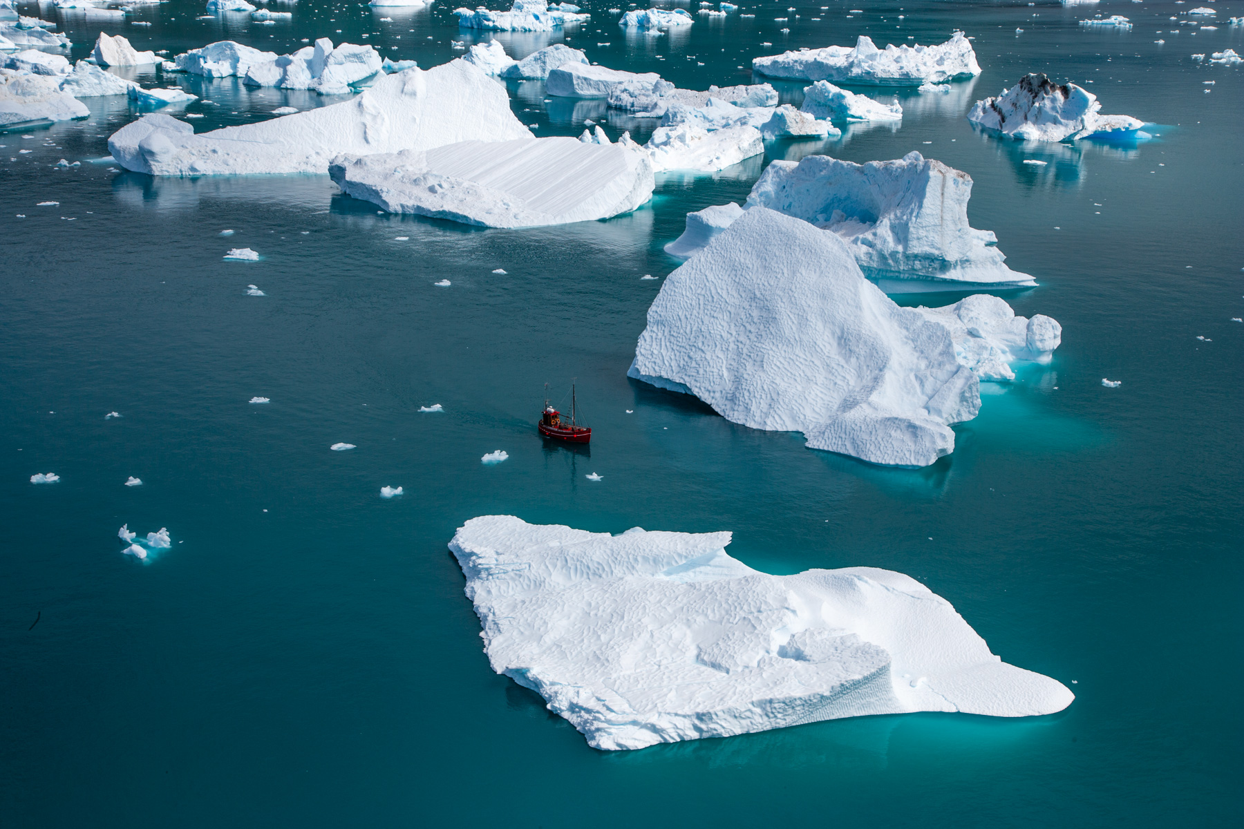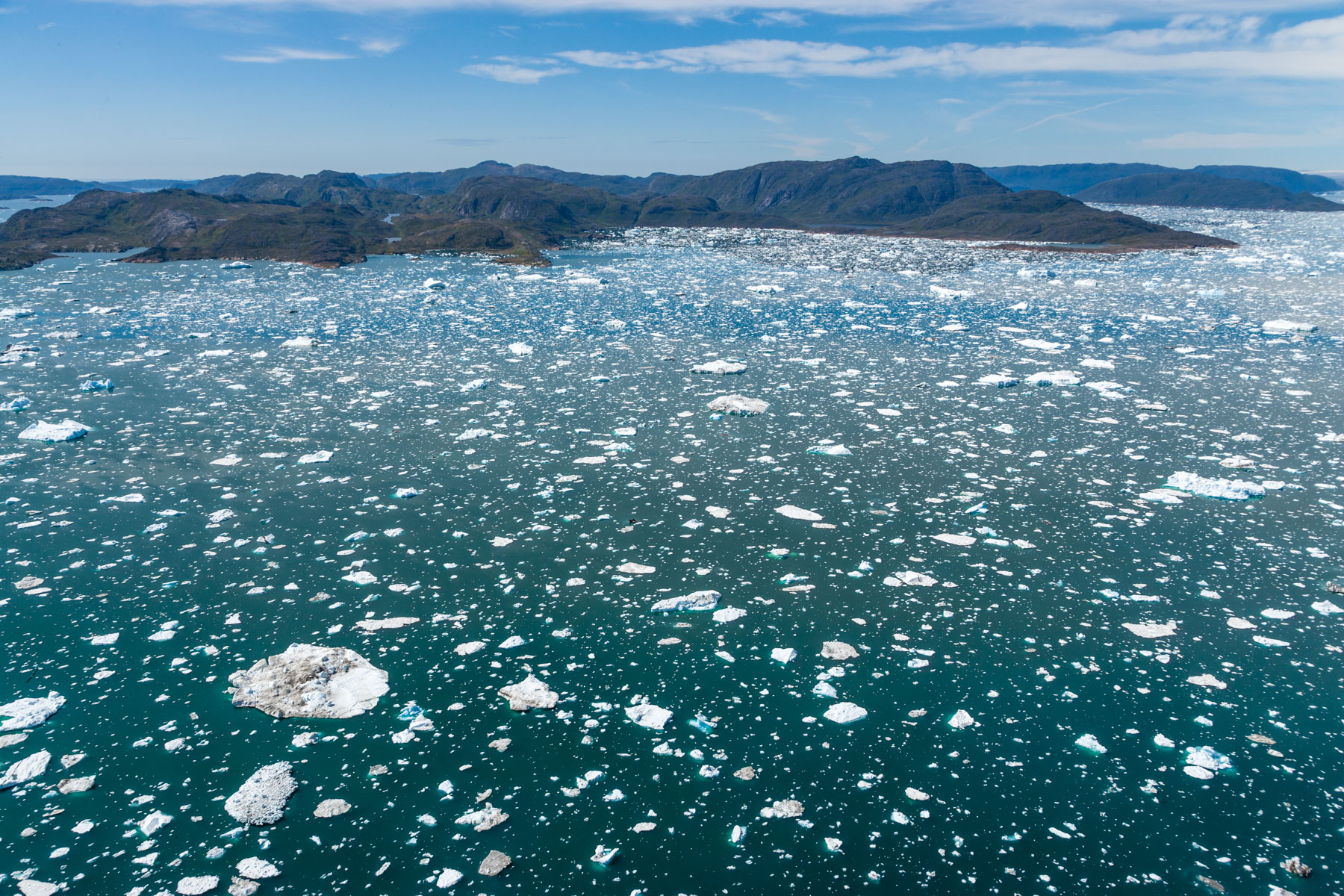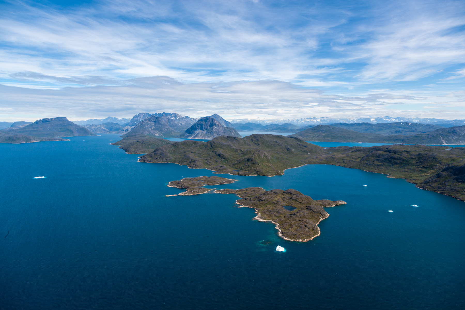 Icebergs érodés dans le fjord d'Eric, région de Kitaa, Groënland, Danemark (61°04' N - 45°24' O).