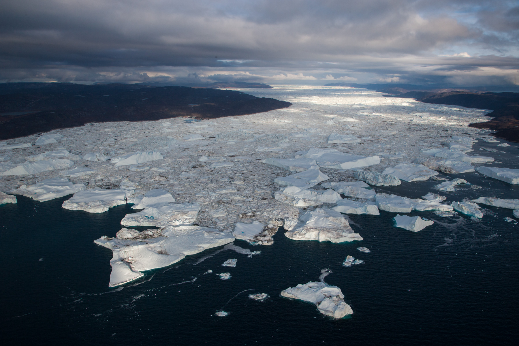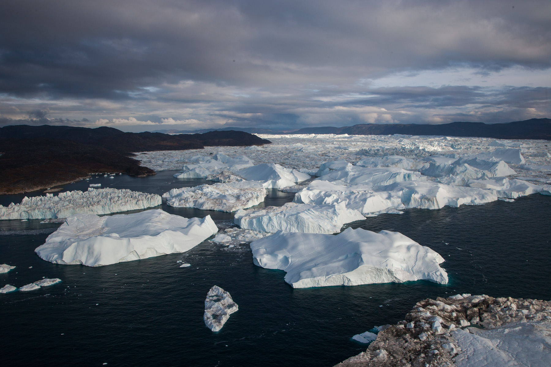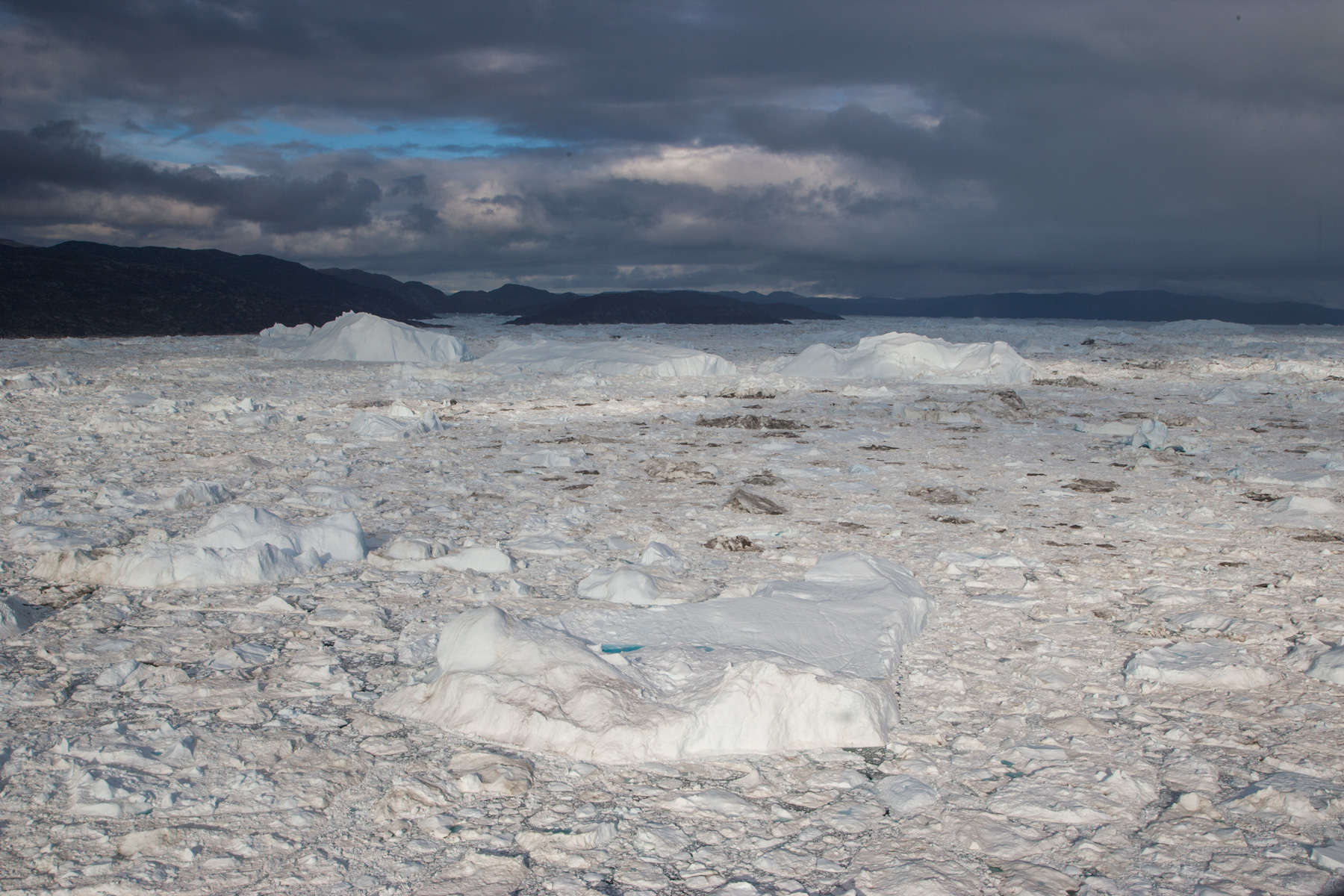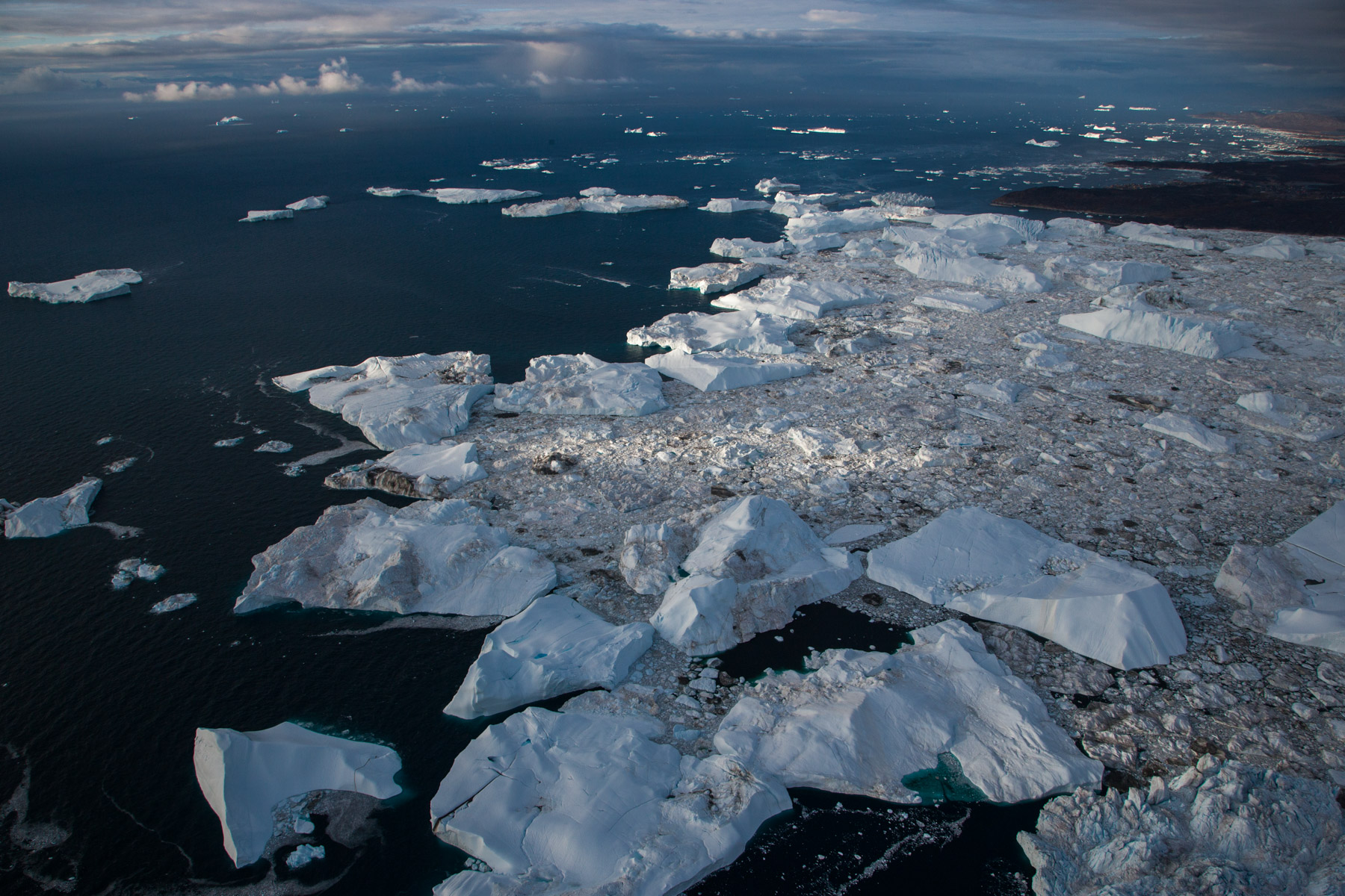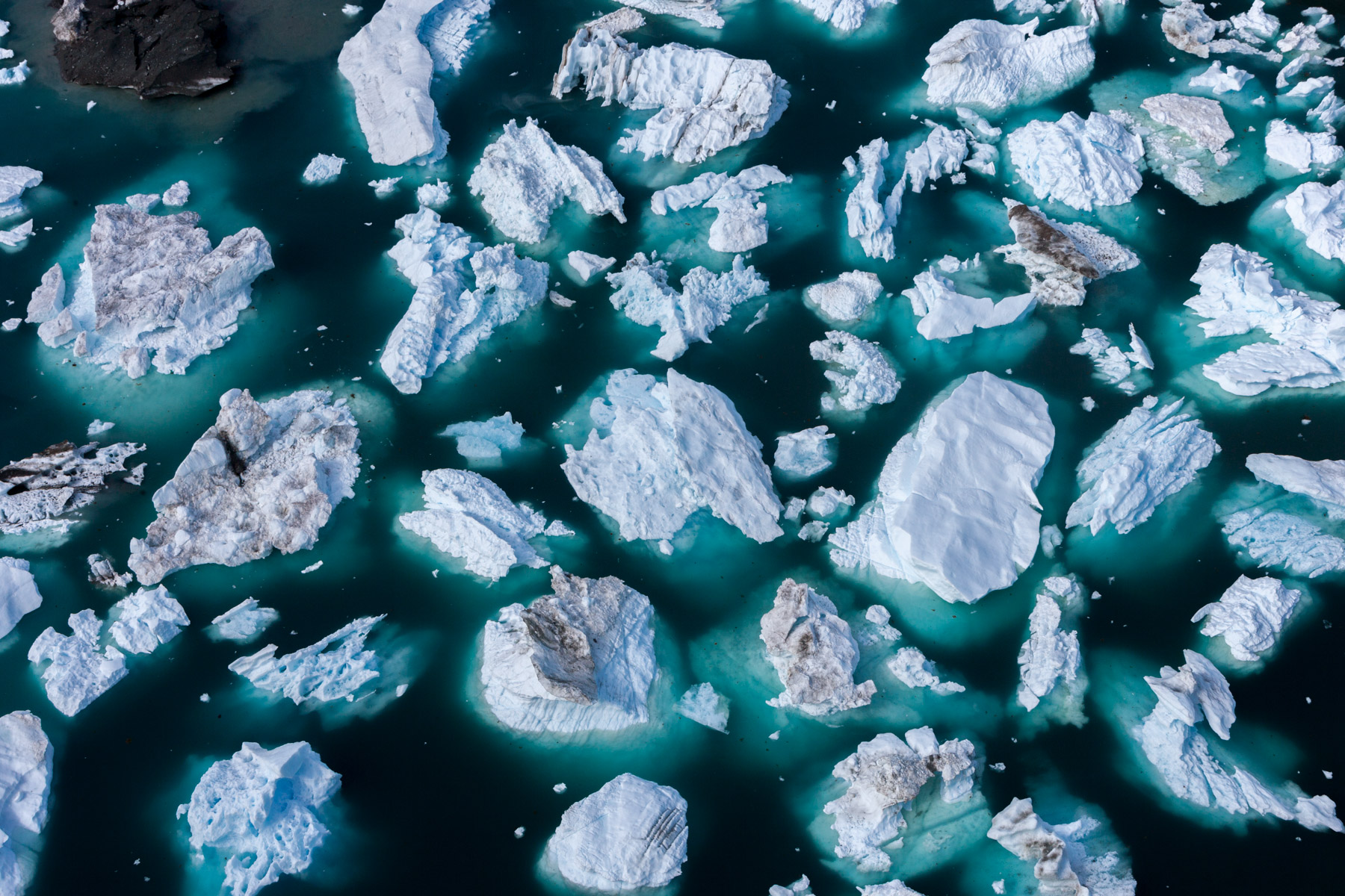 Icebergs érodés dans le fjord d'Eric, région de Kitaa, Groënland, Danemark (61°04' N - 45°24' O).
