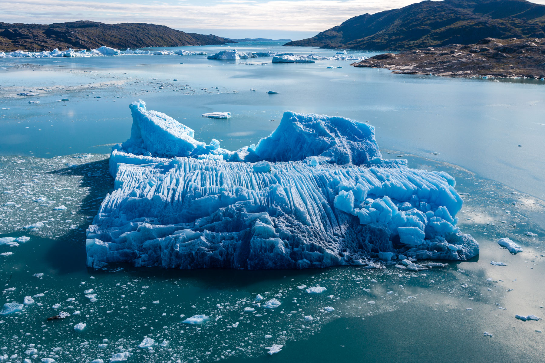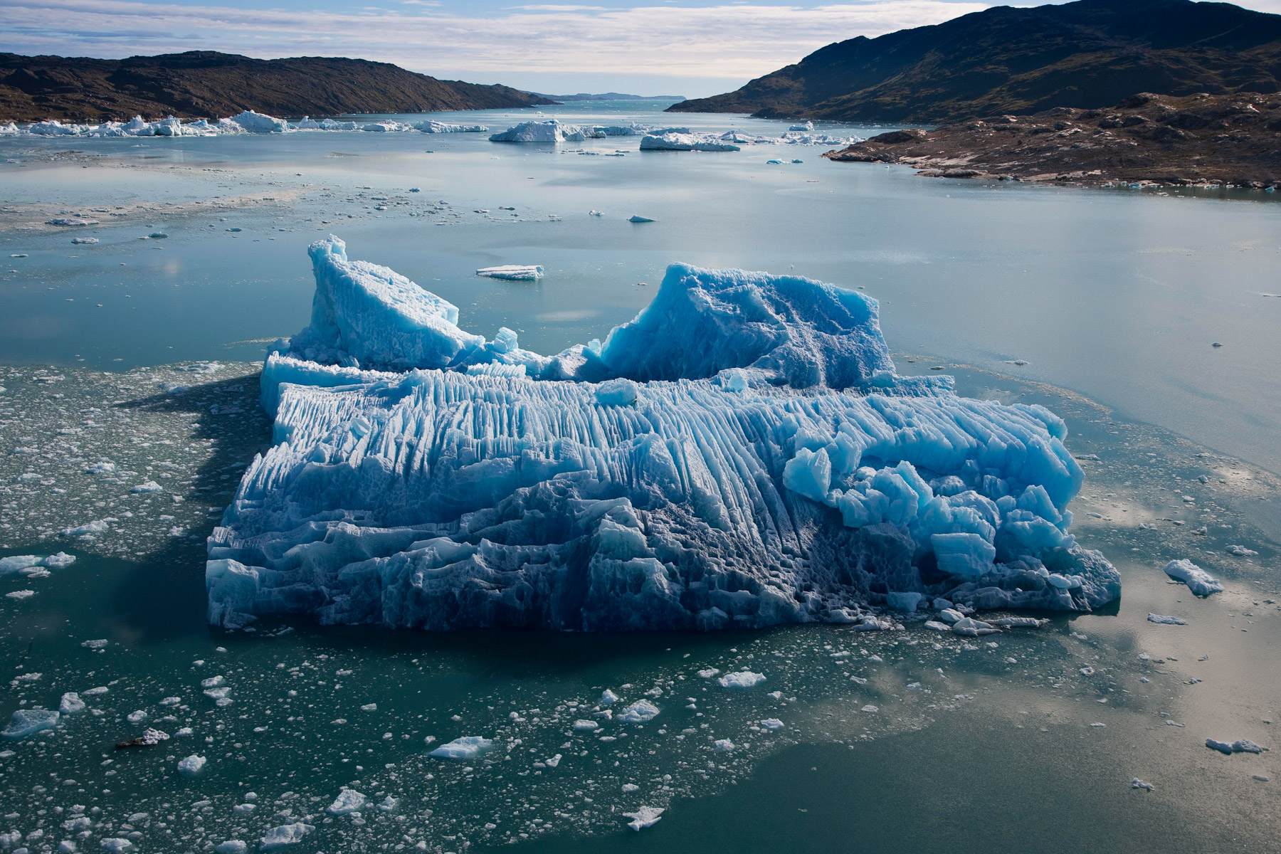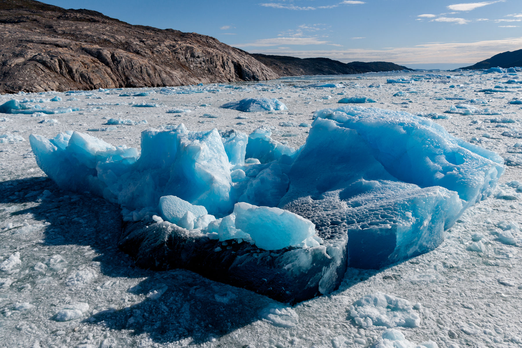 Iceberg érodé dans le fjord d'Unartoq, Groënland (60°28'N ¬ 45°19'O).