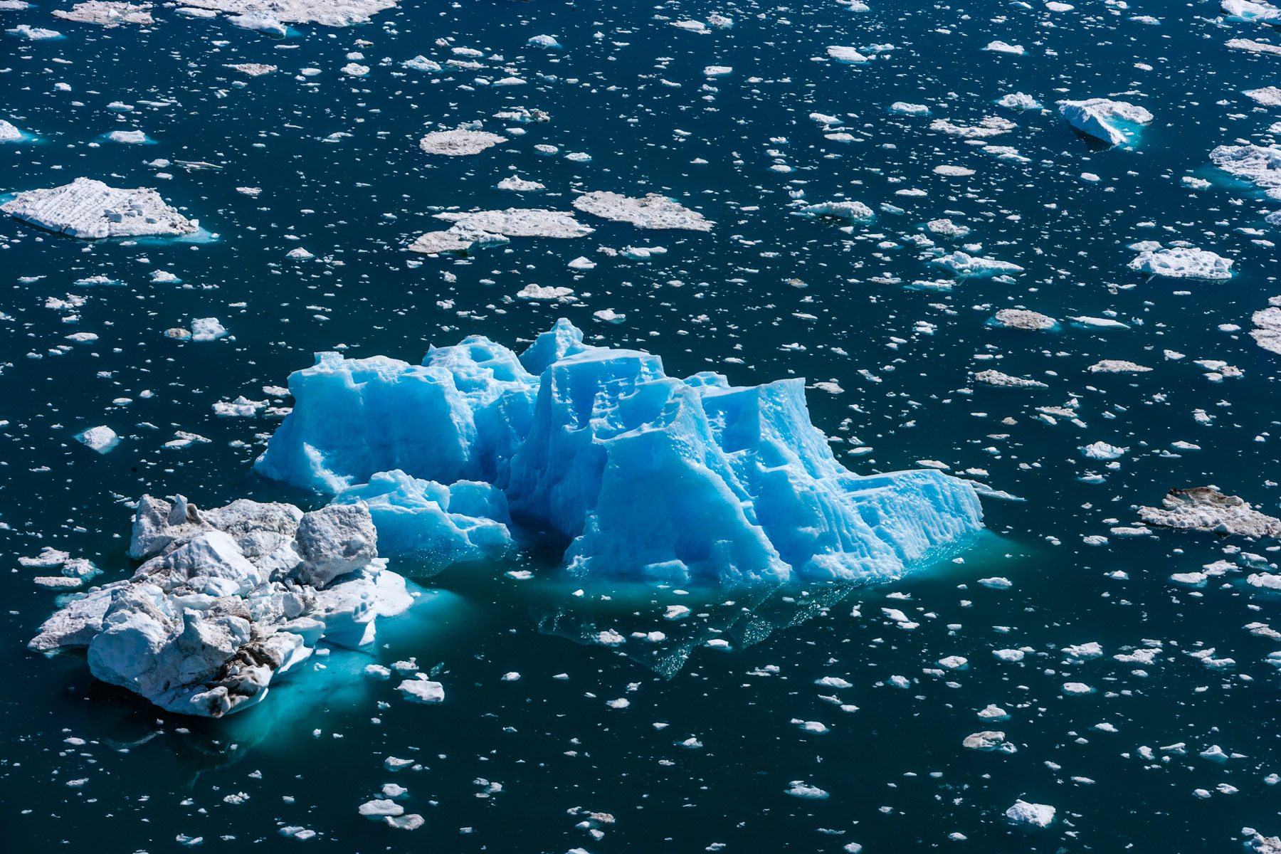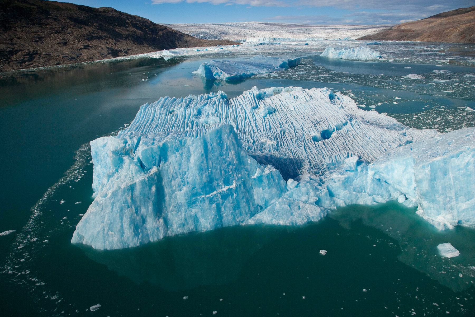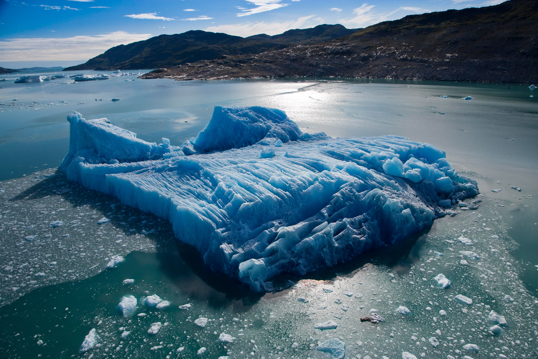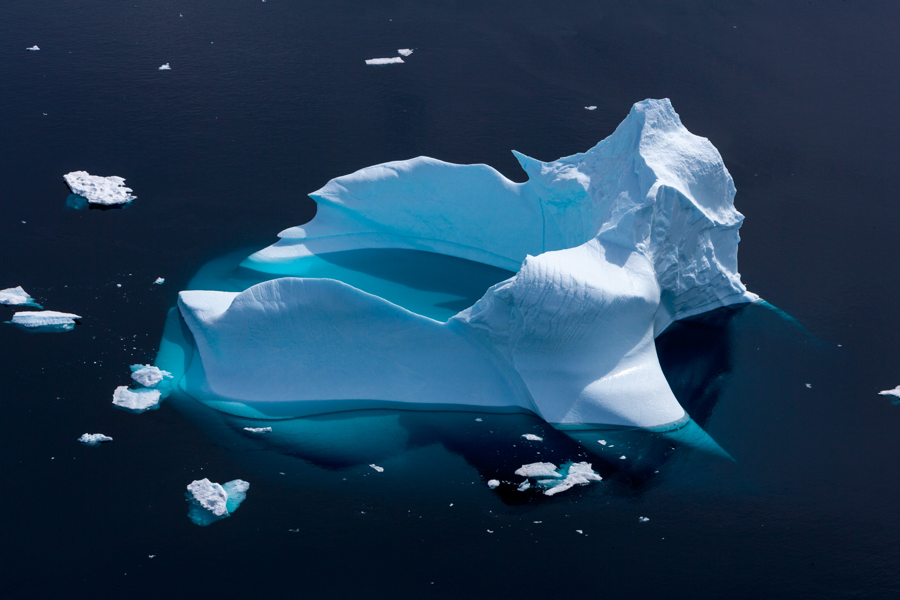 Iceberg érodé dans le fjord d'Unartoq, Groënland (60°28'N ¬ 45°19'O).