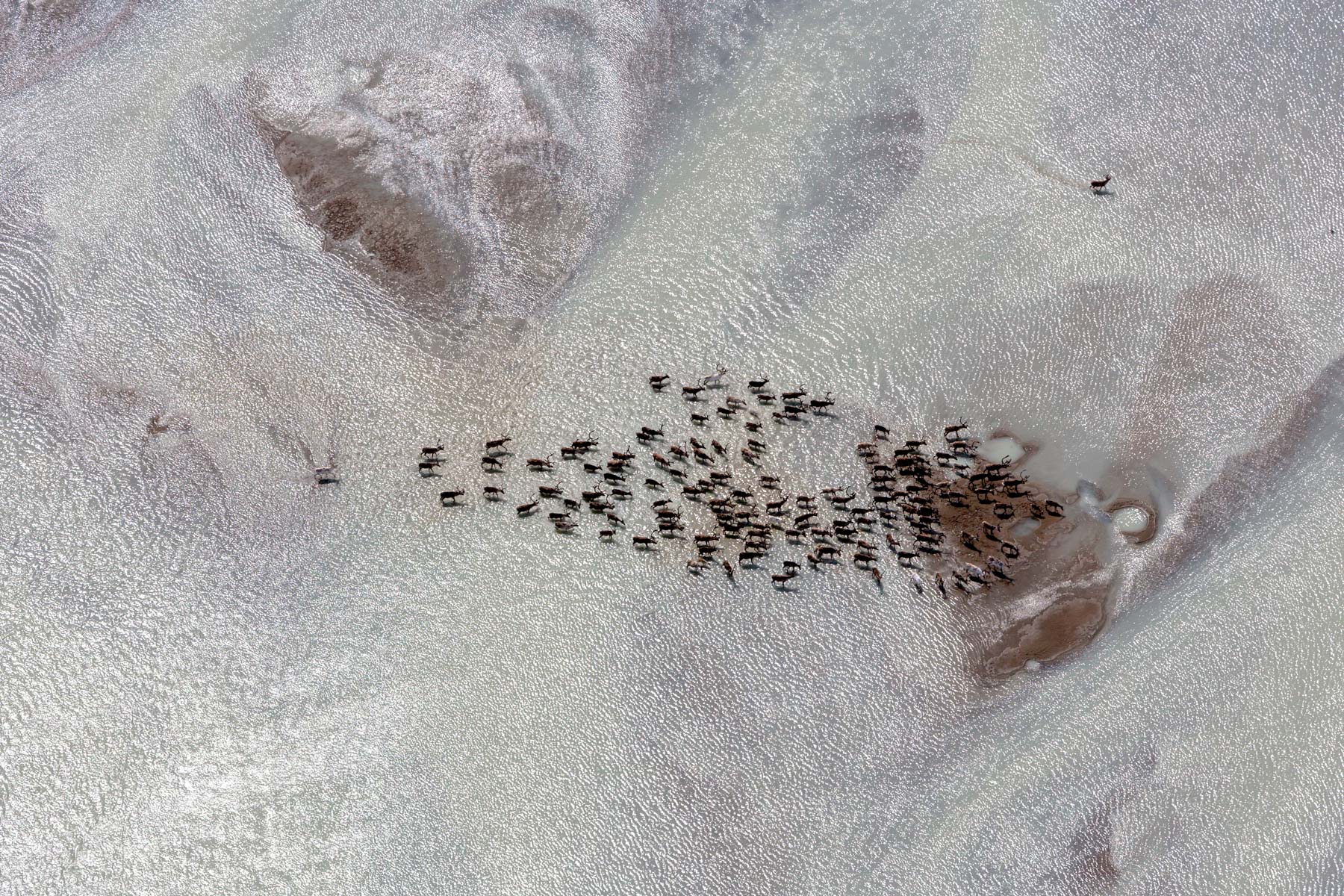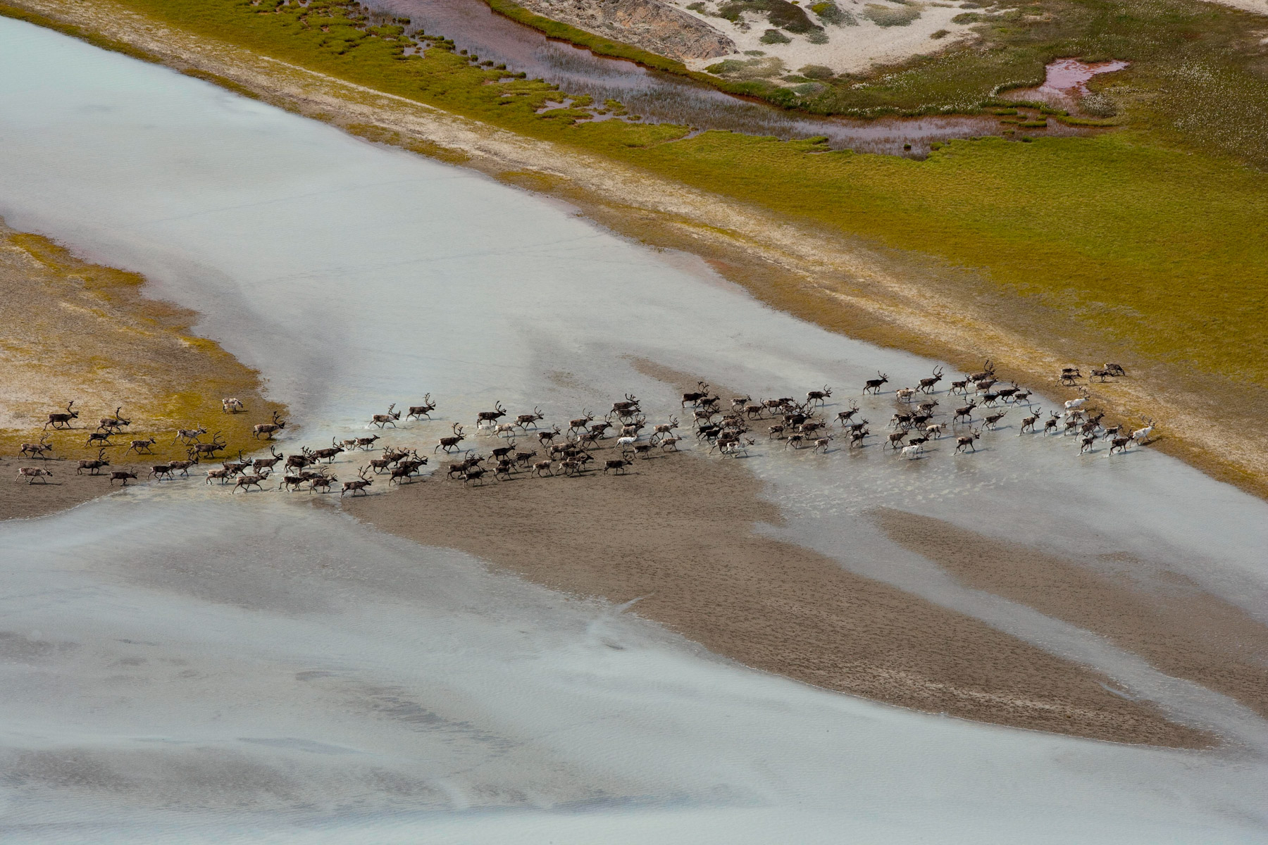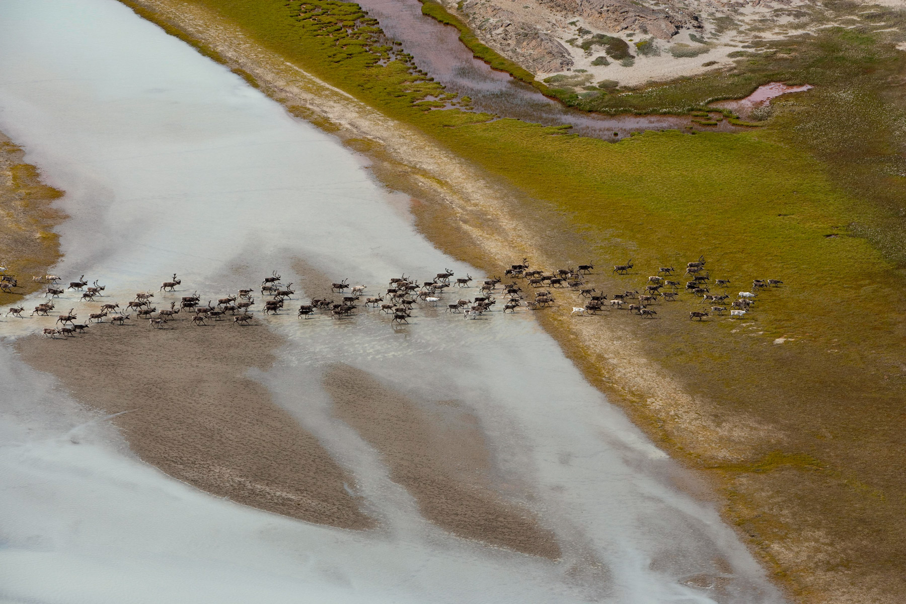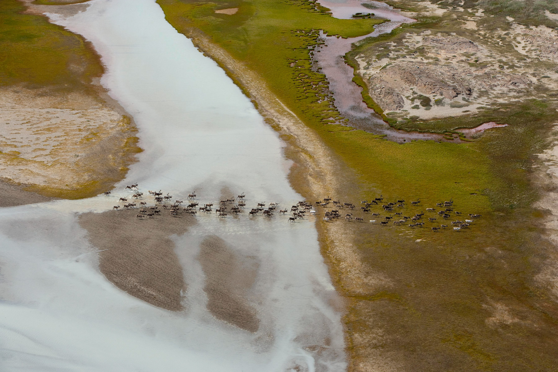 Troupeau de rennes aux marges de l’inlandsis au sud-est d’Ivittuut, Kitaa, Groenland, Danemark (61°05' N - 46°10' O).